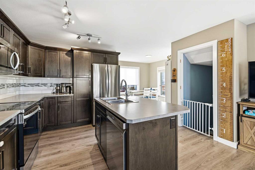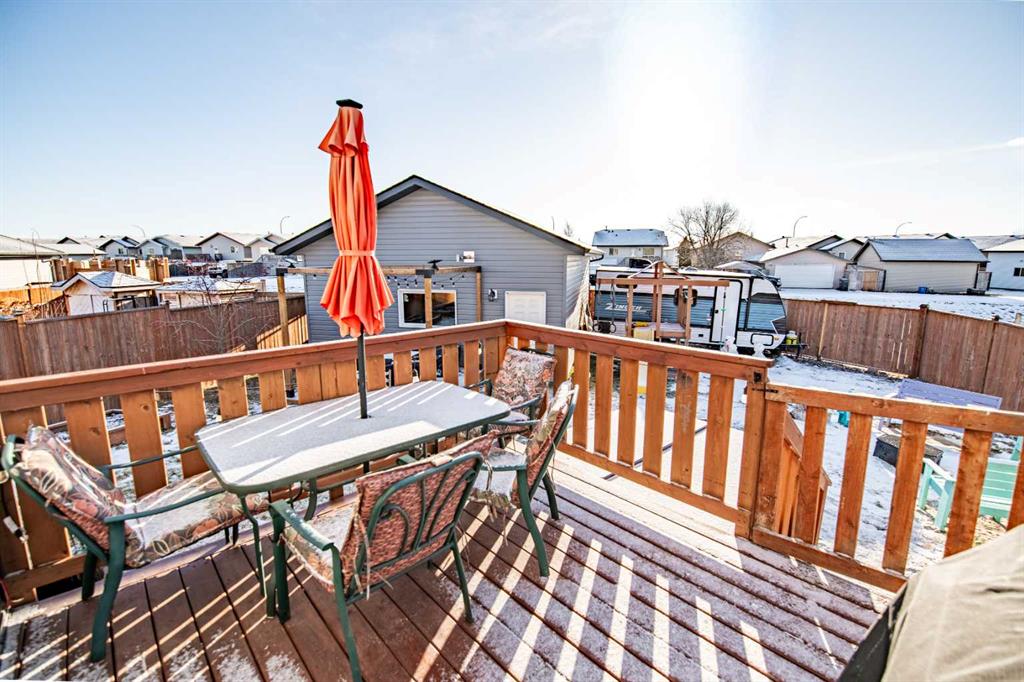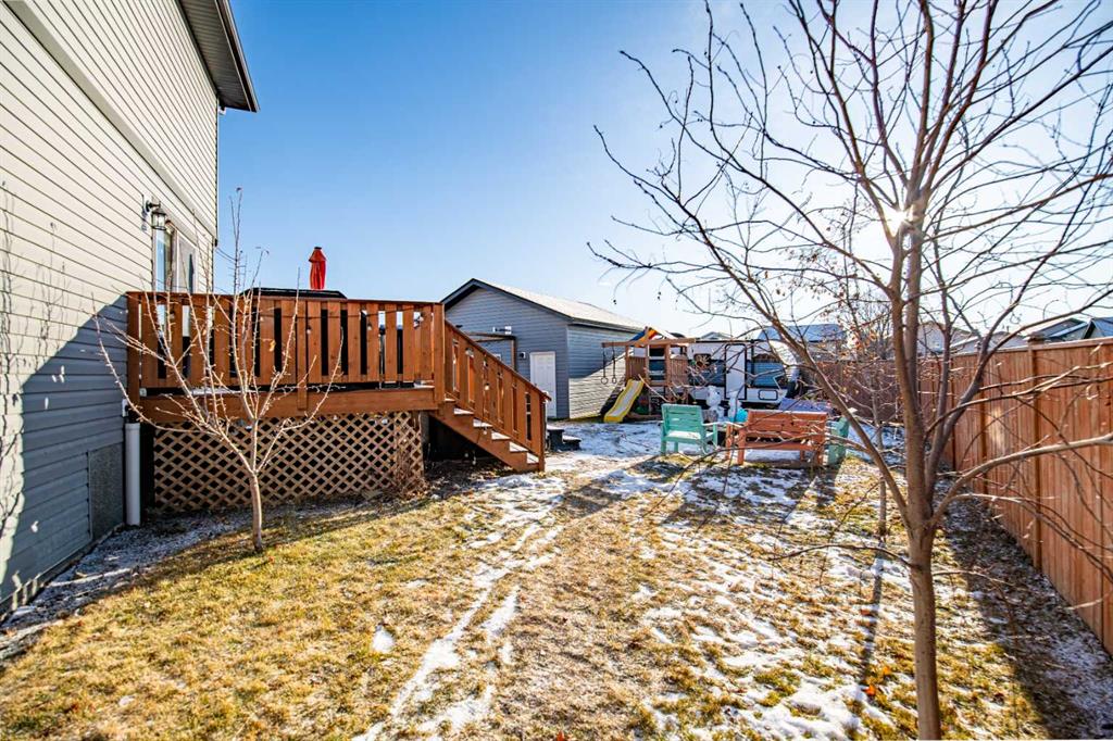 Welcome Home to Space, Comfort & Family Living—Just Minutes from the Lake! Tucked away on a quiet dead-end road in a friendly, family-oriented community, this fully finished home checks every box for growing families and those who love to entertain. With a school nearby and the lake just an easy 8-minute walk away, this is a place where kids can play, neighbors know each other, and weekends are meant to be enjoyed. The upper level features three generous bedrooms, including a relaxing primary retreat with private ensuite, plus a 4-piece main bath perfect for kids and guests. Large windows throughout the home fill the space with natural light, creating a bright and welcoming feel. The open main floor is designed for everyday life and family gatherings, offering a convenient half bath, and a charming built-in bench in the eating area with hidden storage—perfect for busy mornings, homework time, or extra seating when guests arrive. The kitchen is a true hub of the home, complete with stainless steel appliances, abundant cabinetry, and an eat-up island where everyone naturally gathers. Step through the deck doors to a large deck overlooking the 4828 sq/ft, fully fenced backyard—ideal for kids, pets, and summer BBQs. Downstairs, the professionally developed basement offers a spacious, open entertainment area with room to add a fourth bedroom by simply adding a wall. A stylish 4-piece bathroom, dedicated laundry, and plenty of storage make this lower level both functional and flexible for a growing family or guests. Additional features include central A/C, a 1-year-old water softener, and an impressive 22x24 detached garage, heated with natural gas, extra-tall, and loaded with storage space in the rafters—perfect for tools, toys, and seasonal items. The yard is ready for family fun with space for a hot tub (professionally wired), a kids’ play centre, and even room for a holiday trailer. This is more than a house—it’s a place to raise a family, build memories, and enjoy the lifestyle this community offers.