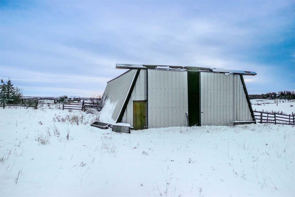 Rare opportunity in sought-after North Springbank! Nearly 4 acres perched on a picturesque knoll with 360° mountain, valley, and city views. This peaceful, private acreage offers gently rolling, fenced land—ideal for families, hobbyists, anyone seeking space, or the perfect lot to build your dream home—all just minutes from the upcoming Bingham Crossing Mall, new Costco, top schools, Springbank Airport, and Springbank Links Golf Course. This reversed walkout, lofted hillside bungalow features a bright open layout, a sunken living room with brick fireplace, formal dining room, spacious kitchen with island, large family room with second fireplace, and 3 bedrooms on the main level. A unique upper office loft accessed by a circular staircase adds extra versatility. Enjoy the massive partially covered west-facing deck plus an additional east deck and balcony. A 3-car heated attached garage with covered carports provides ample parking, along with room for RVs and equipment. The 40’x47’ metal Quonset, offers excellent workshop, storage, or hobby use. This is a prime Springbank location offering quiet country living with outstanding convenience and exceptional long-term potential.