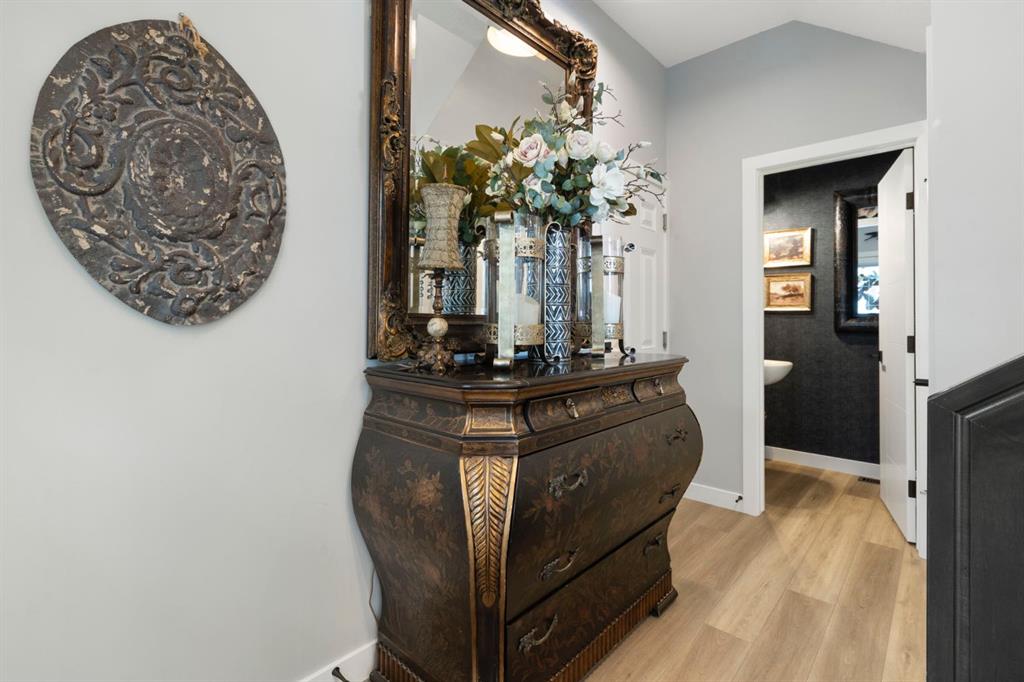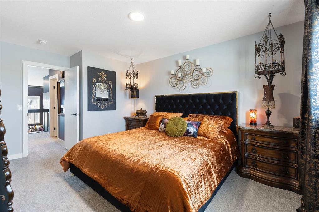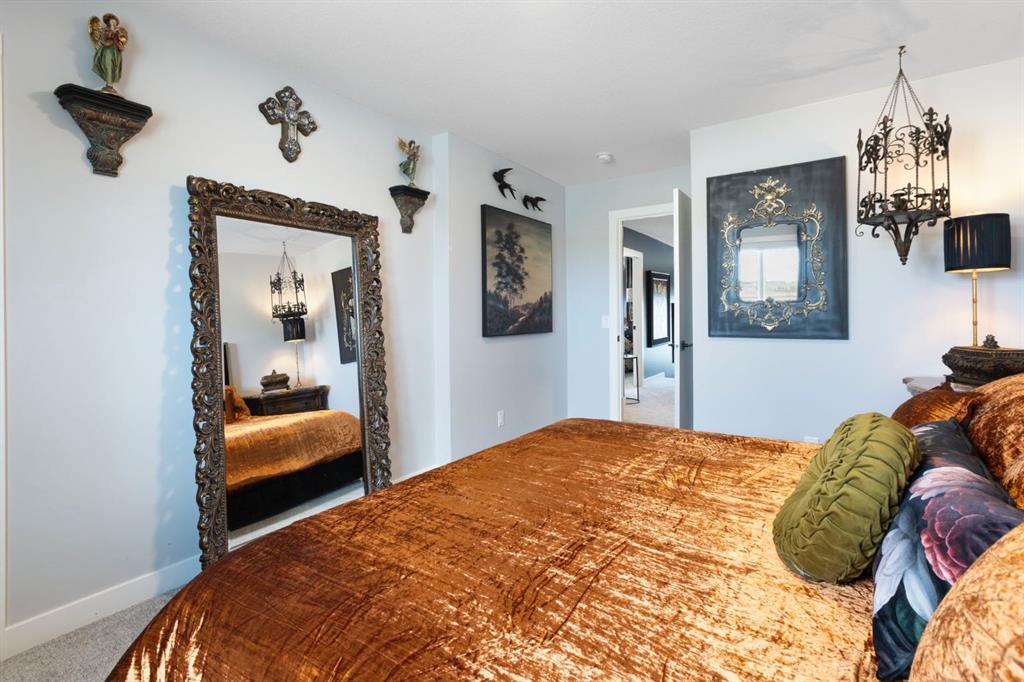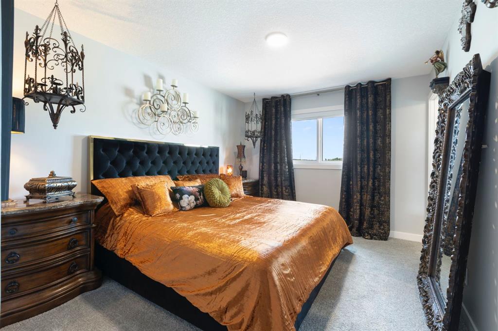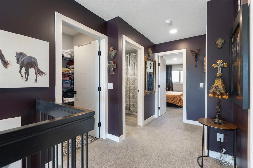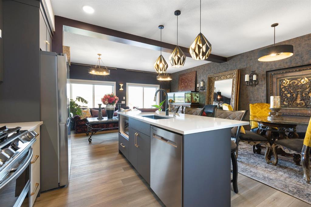 Welcome to this stunning semi-detached, 4-level split home located in the highly sought-after community of Heritage Hills in Cochrane. Offering 1,586 sq ft of developed living space, a walkout basement, and a double attached garage, this home blends dramatic architectural design with modern comfort — all framed by beautiful mountain views and unforgettable sunsets. From the moment you arrive, the impressive curb appeal sets the tone. Step inside to a spacious foyer with soaring ceilings that immediately create a sense of openness and light. The main level features an inviting open-concept layout anchored by a chef-inspired kitchen showcasing quartz countertops, high-end stainless steel appliances including a gas range, sleek modern cabinetry with elegant gold hardware, and designer Cartwright Lighting fixtures. The adjacent dining and living areas are equally impressive, highlighted by rich finishes, an electric fireplace, and oversized windows that flood the space with natural light. Patio doors lead to a 13-ft balcony complete with a gas line for your BBQ and a water hookup, making it the perfect spot to enjoy summer evenings and take in Cochrane’s stunning sunsets. Just a few steps up, the spacious bonus room provides an ideal space to relax, unwind, or enjoy family movie and game nights, with a gas line already in place for a future fireplace. The upper level is home to a generously sized primary retreat featuring a stylish 3-piece ensuite with quartz countertops and modern tile flooring. Two additional bedrooms, a full bathroom, and a convenient upper-level laundry room complete this level, offering both comfort and functionality for everyday living. The unfinished walkout basement presents a blank canvas ready for your ideas — whether a recreation room, home gym, or guest suite. The double attached garage offers secure parking and ample storage. Outside, the yard is beautifully landscaped with a 6-ft wrought iron fence, wide concrete walkways, a lower-level patio, and lush green lawn, designed for easy living, entertaining, and relaxing. Backing directly onto open land with no future neighbours behind, this home offers privacy and long-term value. Even better, the area directly behind is slated to become the future Horse Creek Sports Park, featuring a scenic lake, picnic areas, walking trails, sports fields, arenas, and a community gathering centre — an exceptional lifestyle amenity right at your doorstep. With its rare split-level design, refined finishes, and unbeatable location, this Heritage Hills home offers a truly unique opportunity. Ideally situated just minutes from the Bow River, Ghost Lake, under an hour to the mountains, and only 35 minutes to downtown Calgary, this is a location you simply won’t find anywhere else.