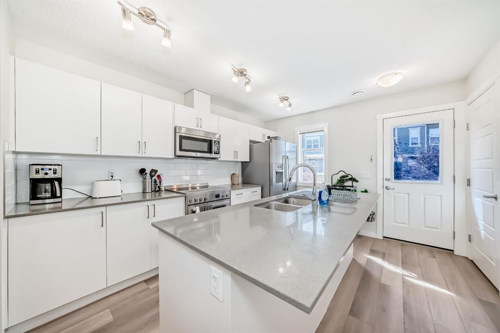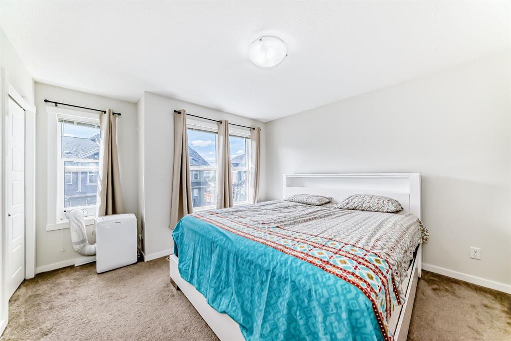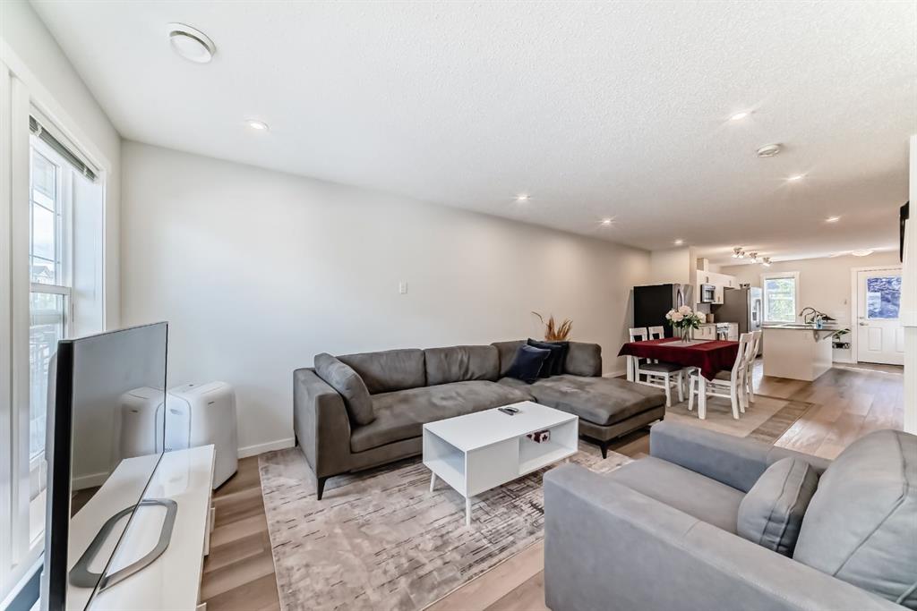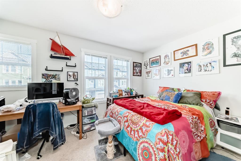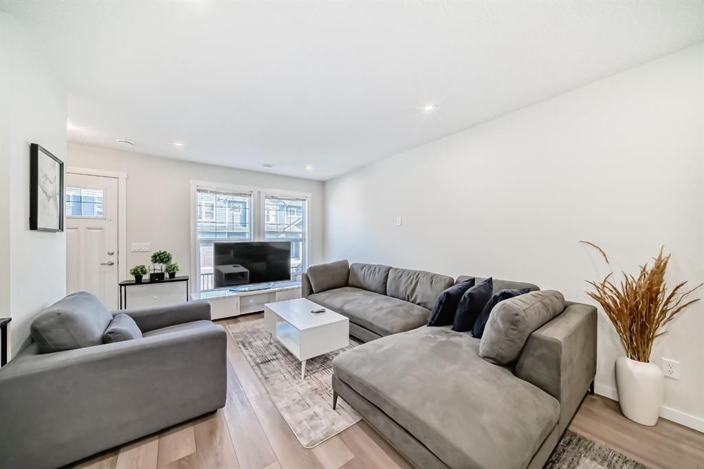 Welcome to this beautifully designed townhome in the desirable community of Cranston SE Calgary – offering modern finishes, thoughtful design, and incredible outdoor living spaces. The main floor features an inviting open-concept layout with a bright living room, spacious dining area, and a well-appointed kitchen with ample cabinetry and counter space. A convenient half bathroom completes the main level. Upstairs, you’ll find a large primary suite with its own private ensuite bathroom. The second bedroom is generously sized and served by a separate full bathroom, making it perfect for family, guests, or a home office. On the third level, discover a large flex space that can be used as a family room, entertainment area, or home office. From here, step out onto the impressive rooftop balcony – the ideal spot to relax, entertain, and enjoy Calgary’s summer evenings. Additional highlights include in-unit laundry, a private backyard for BBQs or gardening, and a dedicated parking stall conveniently located near the unit. All of this in the sought-after community of Cranston, with easy access to schools, parks, shopping, pathways, and major roadways like Deerfoot and Stoney Trail. This home combines style, comfort, and functionality – perfect for first-time buyers, downsizers, or investors. Book your showing today!