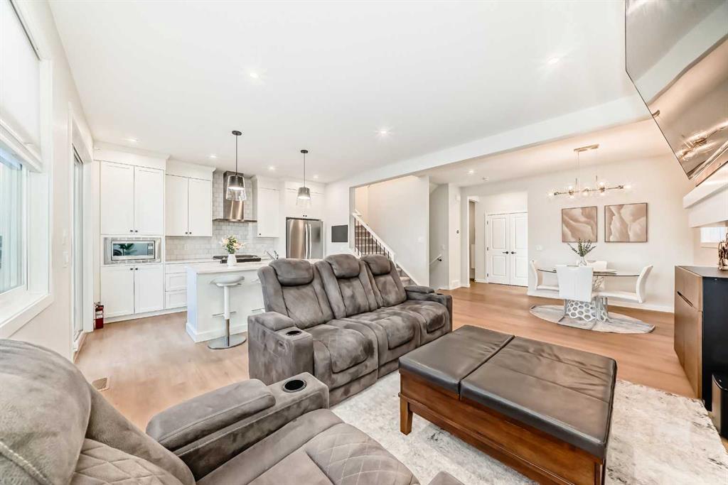Welcome to 26 Lavender Drive SE, where modern design, functionality, and warm character come together in perfect harmony. From the moment you arrive, this home makes a lasting impression with its charming modern farmhouse façade, featuring clean architectural lines, a contrasting two-tone exterior, and a double attached garage with carriage-style doors. The inviting covered entryway and curb appeal hint at the exceptional spaces that await inside, offering a total of 2,127.6 sq. ft. of thoughtfully designed living space. Step through the front door into a bright foyer that sets the tone for the home’s contemporary yet welcoming atmosphere. A mudroom offers easy access to the attached garage and a stylish 2-piece bath is conveniently located for guests, blending form and function with modern fixtures and finishes. Continue into the main living area, where natural light pours through large windows, illuminating the open-concept layout. The living room serves as the heart of the home, anchored by a sleek fireplace that creates a cozy focal point for gatherings and quiet evenings alike. Adjacent to this space is a dining area perfect for family dinners or entertaining friends and a modern kitchen equipped with high-end stainless steel appliances, contemporary cabinetry, and a large island with seating. Step outside and discover your own private outdoor retreat. The beautiful backyard offers the perfect blend of greenery and function, complete with a spacious lawn for play, custom wooden decking, and a pergola frame ready for your outdoor lighting or shade feature. You’ll also love the enclosed sunroom, featuring floor-to-ceiling glass walls and a transparent roof that lets in abundant light—an ideal spot for morning coffee or evening relaxation while enjoying the view of your yard year-round. Upstairs, the thoughtful design continues with a spacious primary bedroom complete with a 5-piece ensuite bath featuring dual sinks, and a walk-in closet designed for organization. Two additional bedrooms, each with their own walk-in closet, provide plenty of space for family or guests. A 4-piece main bath and a convenient upper-level laundry room add to the home’s comfort and practicality. The basement is nearly complete, offering even more living space. You’ll find a beautifully finished family room, an additional bedroom with a walk-in closet, and a modern 4-piece bath, with only one more flex space left for your personal touch—perfect for a gym, home office, or extra storage. Located in the family-friendly community of Rangeview, this home is surrounded by parks, walking paths, and nearby schools. Residents enjoy a true sense of community, with local shops, playgrounds, and easy access to major roads connecting you effortlessly to all of Calgary’s amenities. At 26 Lavender Drive SE, you’re not just buying a house—you’re finding your place in a vibrant, welcoming neighbourhood and a home that perfectly balances modern style with everyday comfort.