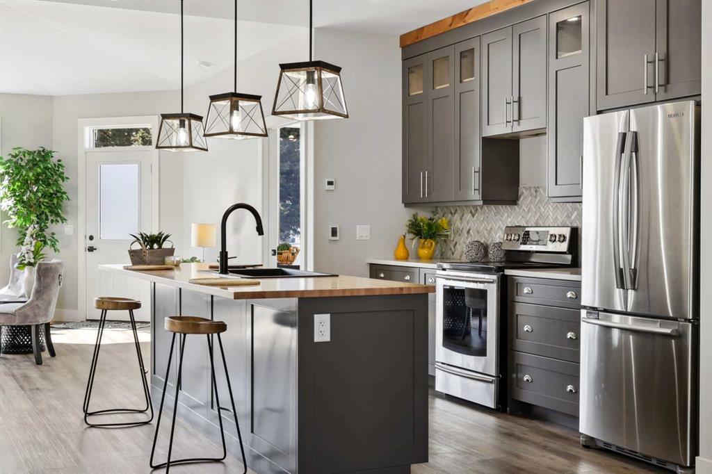 This Sundre villa offers a serene escape from urban life, surrounded by lush greenery and picturesque mountains. Situated in the heart of Sundre's vibrant community, Prairie Creek Crossing beckons with its promise of tranquil living for adults seeking a retreat or retirement haven. Step inside to discover a modern oasis designed for comfort and convenience. The open floor plan welcomes you with vaulted ceilings, creating an airy ambiance throughout. The kitchen is a chef's delight, with ample counter space, and a spacious pantry for all your culinary needs. Entertaining is effortless as the dining area seamlessly transitions into the inviting living room, providing the perfect setting for family gatherings and socializing. Retreat to the master bedroom, featuring a walk-through closet leading to a private 4-piece ensuite, offering a sanctuary of relaxation. The second bedroom can be used for visiting guest or the much needed office! Designed for ease of living, this single-floor layout eliminates the hassle of stairs, catering to adults looking to downsize without compromising on comfort. A double attached heated garage provides convenient parking for two vehicles, ensuring both practicality and security. Experience year-round comfort with in-floor heating throughout the home and garage, while exterior landscaping and snow removal are meticulously taken care of. Embrace the joys of pet ownership as Prairie Creek Crossing welcomes furry companions with board approval, allowing you to share your new home with your beloved pets. Beyond the doorstep, Sundre offers an array of recreational opportunities for outdoor enthusiasts, including hiking, fishing, camping, and trail riding amidst breathtaking natural landscapes. Indulge in quality golf courses or unwind at the local hospital, seniors club, or indoor recreational centre with an indoor pool and fitness facilities. Don't wait to embrace the retirement lifestyle you've dreamed of—seize the opportunity to live amidst Sundre's beauty and tranquility at Prairie Creek Crossing. More Pictures to follow, Just at finishing Stage! Please note we Have 5 units and you are welcome to view them all!
