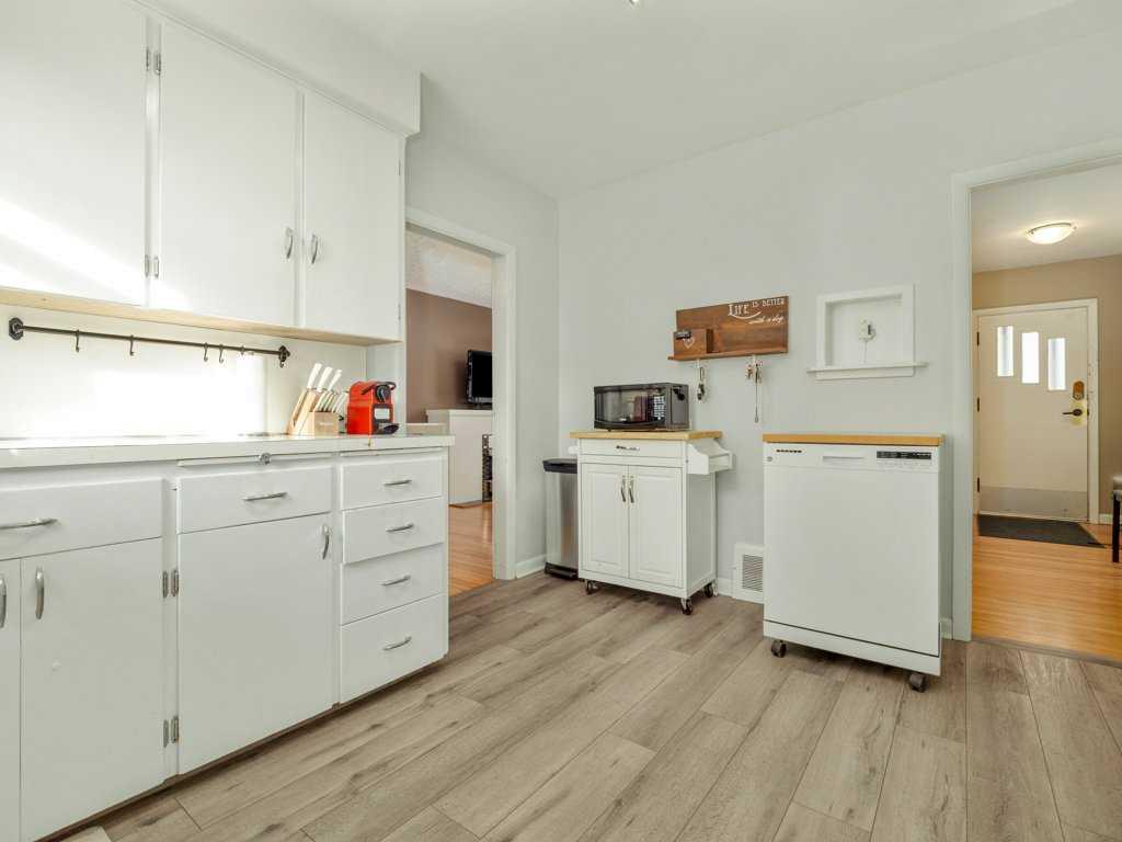 Great bungalow with original hardwood floors and a HUGE 122 x 50 lot! The sunny living room enjoys a large picture window and a trendy mock-fireplace. The separate dining room is perfect for hosting friends and family. 2 bedrooms on the main floor and 1 bedroom in the basement. Downstairs, you'll also find a spacious family room laundry room, and a beautifully renovated full bathroom with a tiled walk-in shower and in-floor heating! Outside, the yard boasts a 8x8’ wood shed, heated double garage, large concrete patio with natural gas hook-up. This home has updated air conditioning, electrical with a new panel box, a newer furnace and a waterproofing basement system to keep everything dry. Close to Henderson Lake - come see it today!