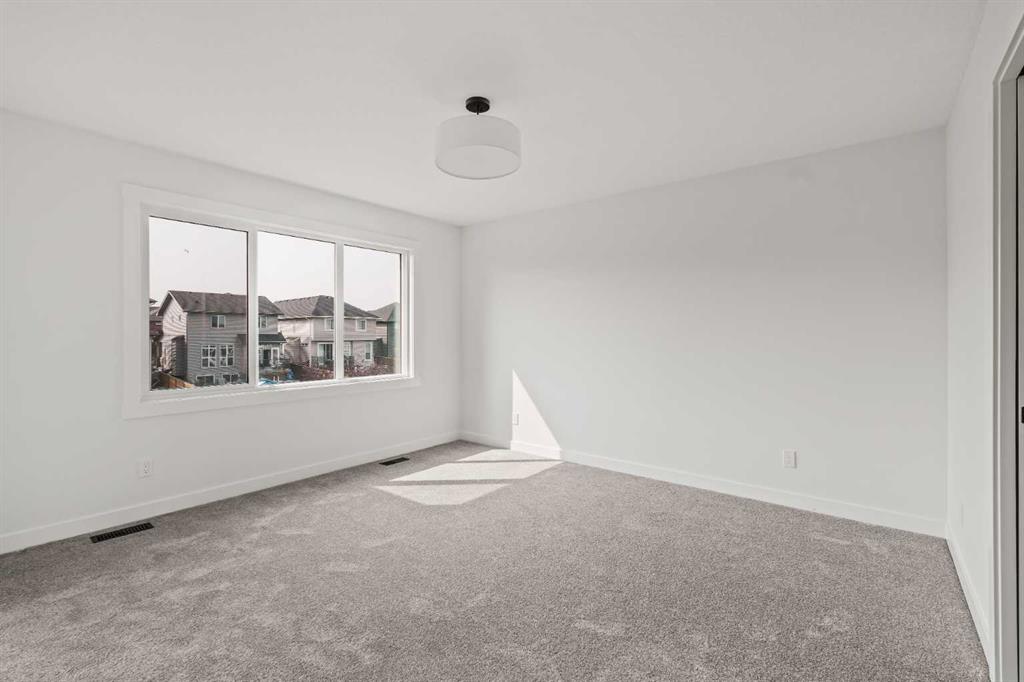 Move-In Ready - Immediate Possession Available! The stunning Columbia by Brookfield Residential offers nearly 2,500 square feet of beautifully designed living space, perfectly blending style, function, and comfort. Ideally situated backing onto green space with a south-facing backyard for optimal sunshine, this home has the perfect lot in Silver Spruce! Thoughtfully planned for modern living, this home features an open-concept main floor centered around an impressive gourmet kitchen with an oversized island, elegant two-tone cabinetry with natural wood upper cabinets and timeless white lower cabinets. The kitchen is complete with white quartz countertops, a sleek stacked subway tile backsplash, and a premium suite of built-in stainless-steel appliances including a gas cooktop, chimney hood fan, wall oven, and microwave. The main level provides generous space for entertaining with a bright, open living area and a central dining space that connects seamlessly to the kitchen. A central gas fireplace anchors the main living space with a wall of south-facing windows allowing natural light to pour through the space. A convenient rear office/flex room offers a quiet retreat overlooking the backyard -perfect for a children's play area or work-from-home space. Additional highlights include a walk-through pantry, a mudroom off the garage, a walk-in front closet, and a 2-piece powder room. Natural wood and iron spindle railings lead to the upper level with a thoughtful design that includes a central bonus room that provides separation and privacy between the primary suite and secondary bedrooms. The luxurious primary retreat features a massive walk-in closet and a spa-inspired 5-piece ensuite complete with dual sinks, a walk-in tiled shower, a deep soaker tub with south-facing windows, and a private water closet. Two additional bedrooms, including one with a vaulted ceiling, a spacious main bathroom, and a large laundry room with ample workspace complete the upper level. The lower level, with 9-foot foundation walls and rough-ins for a future bathroom, is ready for your personal touch - whether you envision a home gym and / or recreation area, there is plenty of space for a bedroom, bathroom and living area! Perfectly situated in the desirable new community of Silver Spruce, this home backs onto a tranquil green space and is just steps from scenic pathways and a playground, while remaining only minutes from major amenities. The south-facing lot will provide optimal natural light both inside and out all year long. Purchase with peace of mind - builder warranty + Alberta New Home Warranty are included with this brand new home.