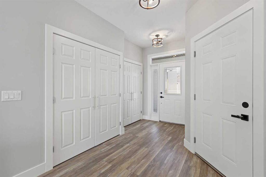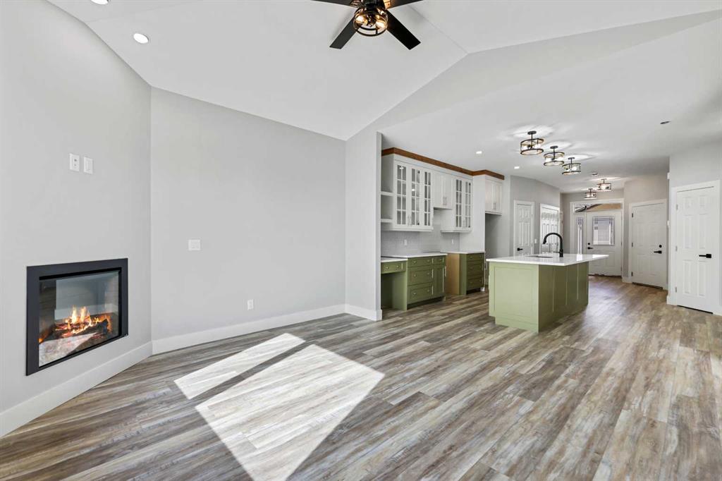 This Sundre villa offers a serene escape from urban life, surrounded by lush greenery and picturesque mountains. Situated in the heart of Sundre's vibrant community, Prairie Creek Crossing beckons with its promise of tranquil living for adults seeking a retreat or retirement haven. Step inside to discover a modern oasis designed for comfort and convenience. The open floor plan welcomes you with vaulted ceilings, creating an airy ambiance throughout. The kitchen is a chef's delight, with ample counter space, and a spacious pantry for all your culinary needs. Entertaining is effortless as the dining area seamlessly transitions into the inviting living room, providing the perfect setting for family gatherings and socializing. Retreat to the master bedroom, featuring a walk-through closet leading to a private 4-piece ensuite, offering a sanctuary of relaxation. Designed for ease of living, this single-floor layout eliminates the hassle of stairs, catering to adults looking to downsize without compromising on comfort. A over size single attached heated garage provides convenient parking for one vehicle, ensuring both practicality and security. Experience year-round comfort with in-floor heating throughout the home and garage, while exterior landscaping and snow removal are meticulously taken care of. Embrace the joys of pet ownership as Prairie Creek Crossing welcomes furry companions with board approval, allowing you to share your new home with your beloved pets. Beyond the doorstep, Sundre offers an array of recreational opportunities for outdoor enthusiasts, including hiking, fishing, camping, and trail riding amidst breathtaking natural landscapes. Indulge in quality golf courses or unwind at the local hospital, seniors club, or indoor recreational centre with an indoor pool and fitness facilities. Don't wait to embrace the retirement lifestyle you've dreamed of—seize the opportunity to live amidst Sundre's beauty and tranquility at Prairie Creek Crossing.