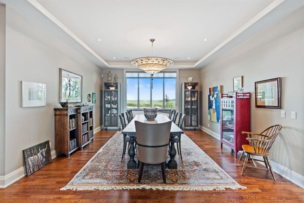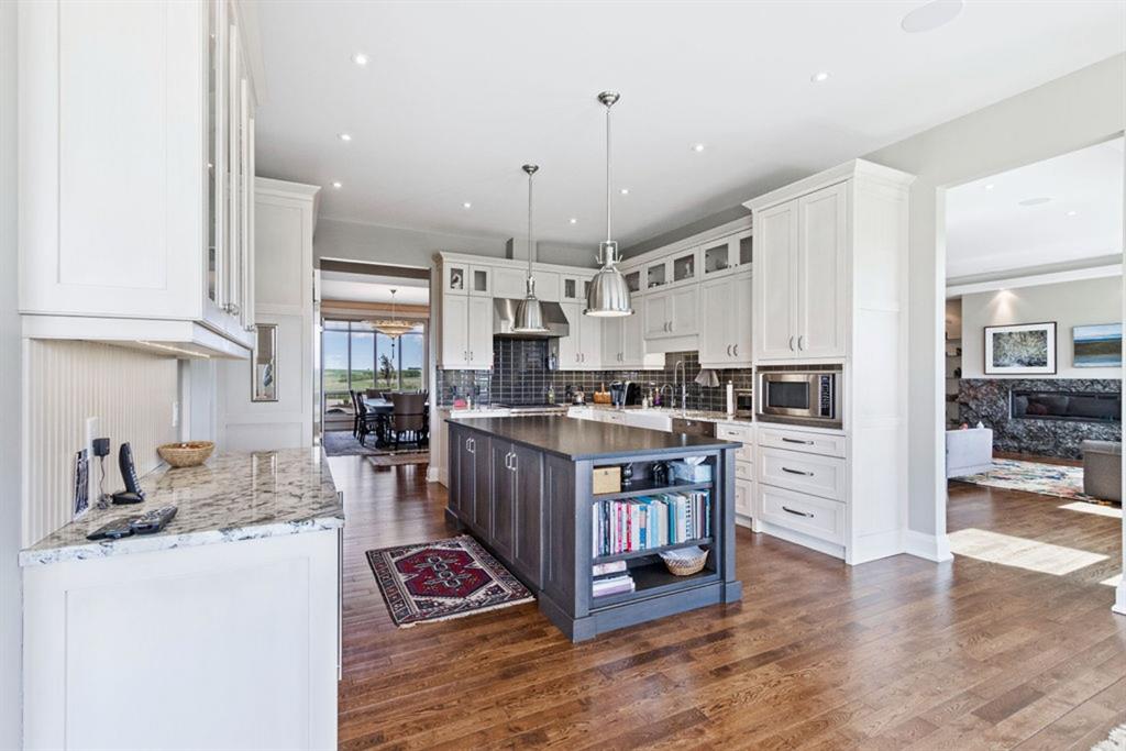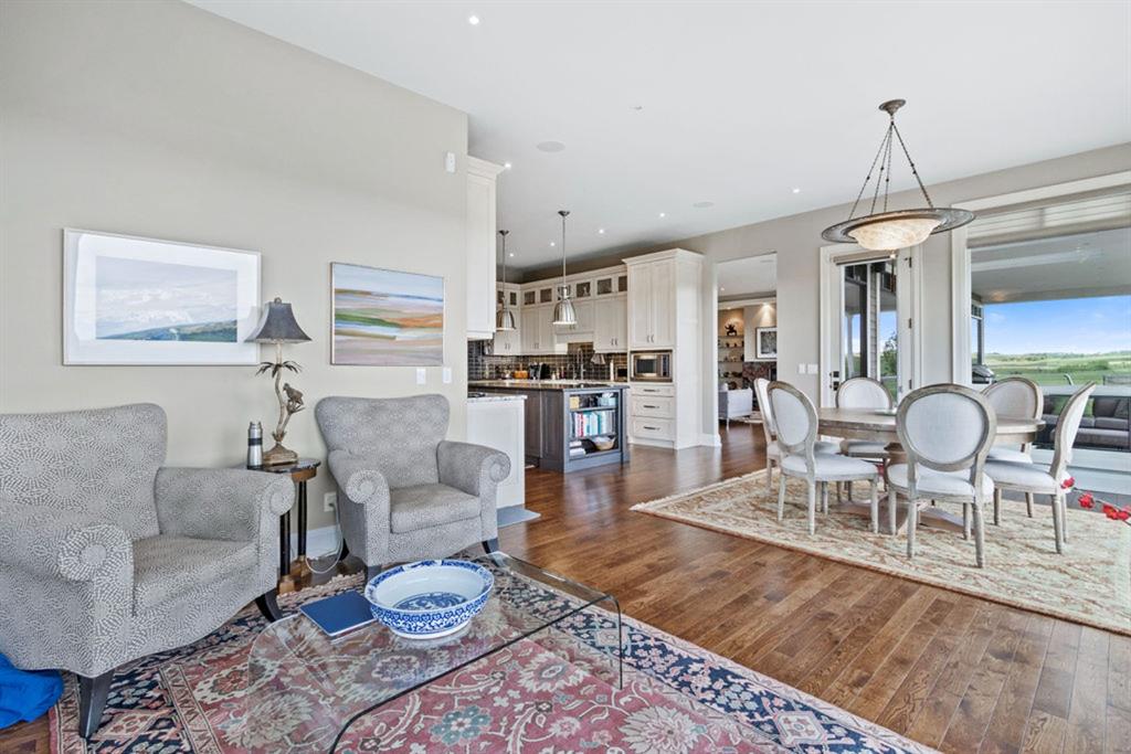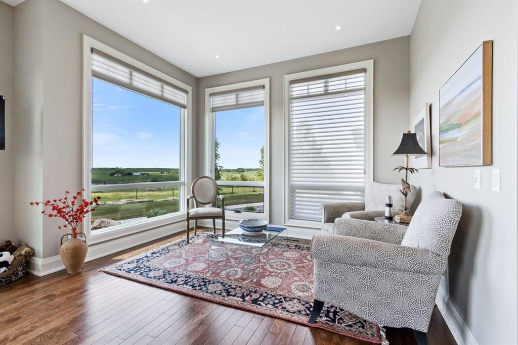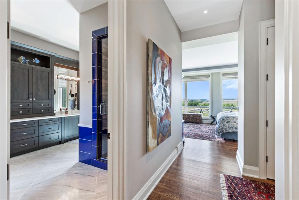 Stunning Custom Built Bungalow sitting atop the biggest hill on 122 acres with breathtaking views in all directions. Unobstructed mountain views to the west, golf course to the north, the friendly hamlet of madden east and south for miles! Enter from your gated private paved lane-way and find this architectural thing of beauty at the peak. This home is just shy of 4000 sq/ft on the main level and boasts another 2700sq/ft of developed space in the basement. The main floor has gleaming hardwood flooring throughout along with slate entry and heated tile flooring in all the bathrooms. Oversized low UV transmission windows with Hunter Douglas blinds throughout helps capture the most amazing landscapes. The executive chefs kitchen has stainless steel appliances including a Wolff gas stove, Sub Zero fridge, Dacor wall oven and microwave. All cabinetry milled by Legacy with soft close and upgraded shelving and storage. Huge center island with Cambrian Black satin granite is a classic focal point in this exquisite home. There are two dining areas for all sizes of gatherings and a huge living room with descending TV from the ceiling and natural gas fireplace. The large master bedroom comes with a 4 piece en-suite with modern tiled shower, his/her sinks in Bianco Rhino marble and a walk in California closet. Main floor is completed with two other bedrooms with California closets and Jack n Jill 4 piece bathrooms, an office, and den adjacent dining room. The second fireplace is found in the library or study for those that like to kick back with a glass of wine and enjoy a good book. Basement is finished with a huge family/ games room and tons of storage. The attached triple garage measures 38x22 it has a separate entry and big bright windows and upgraded wood doors. The west facing concrete patio is covered with skylights so you can enjoy it in all weather! The property is professionally landscaped with mature trees and raised garden boxes for the green thumb. Extra features include 2 independent furnaces and AC systems, in-floor heating, water softening system, instant hot water, in-wall Vacu flo, Sonos sound, Security system and more! Combination of pasture and grade A crop land with good perimeter fencing. Rare opportunity to own a beautiful parcel of land this size commutable to Calgary with an equally magnificent home to match!