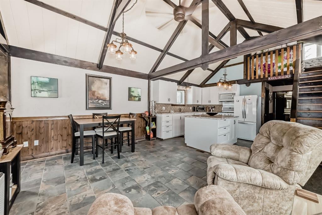 Welcome to your own private getaway in the Summer Village of White Sands! Tucked away on a quiet cul-de-sac, just a short walk to the beach, this cozy year-round home- complete with triple pane windows and wrapped in additional R7 enerfoil- is the perfect spot for lake living, offering comfort and convenience all year long. As you pull up, you’ll immediately notice the charm of this property. The yard, surrounded by mature trees, gives you plenty of privacy and space to relax. There’s plenty of parking, and extra storage sheds for all your beach gear and outdoor equipment. Inside, the main floor greets you with vaulted ceilings that make the space feel bright and open. You’ll find two cozy bedrooms and a 3-piece bathroom. The kitchen is well laid out and flows into the dining area, where you can enjoy views of the peaceful surroundings. Upstairs, is the spacious primary bedroom. It could easily be turned into a tranquil retreat, a home office, or a creative space. The choice is yours! The basement has 9-foot ceilings and offers even more space. There’s a fourth bedroom, a 2-piece bathroom, and a storage room. The large utility/laundry room gives you lots of room for everyday needs, and there’s space for family or guests to feel right at home. The oversized, heated double garage is a bonus—great for storing your vehicles, plus it has a bathroom, a storage room, and a workbench with cabinets for all your projects and hobbies. Step outside, and you’ll find a covered gazebo, perfect for relaxing or dining outdoors while staying sheltered from the weather. Whether you’re grilling with friends or curling up with a good book, this space is made for enjoying life. Life in White Sands feels like a vacation every day. With just a 20-minute drive to Stettler and only 2 hours from both Calgary and Edmonton, this home offers the best of both peace and convenience. Don’t miss out on this incredible opportunity—schedule your showing today!