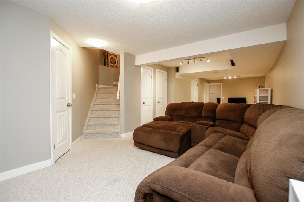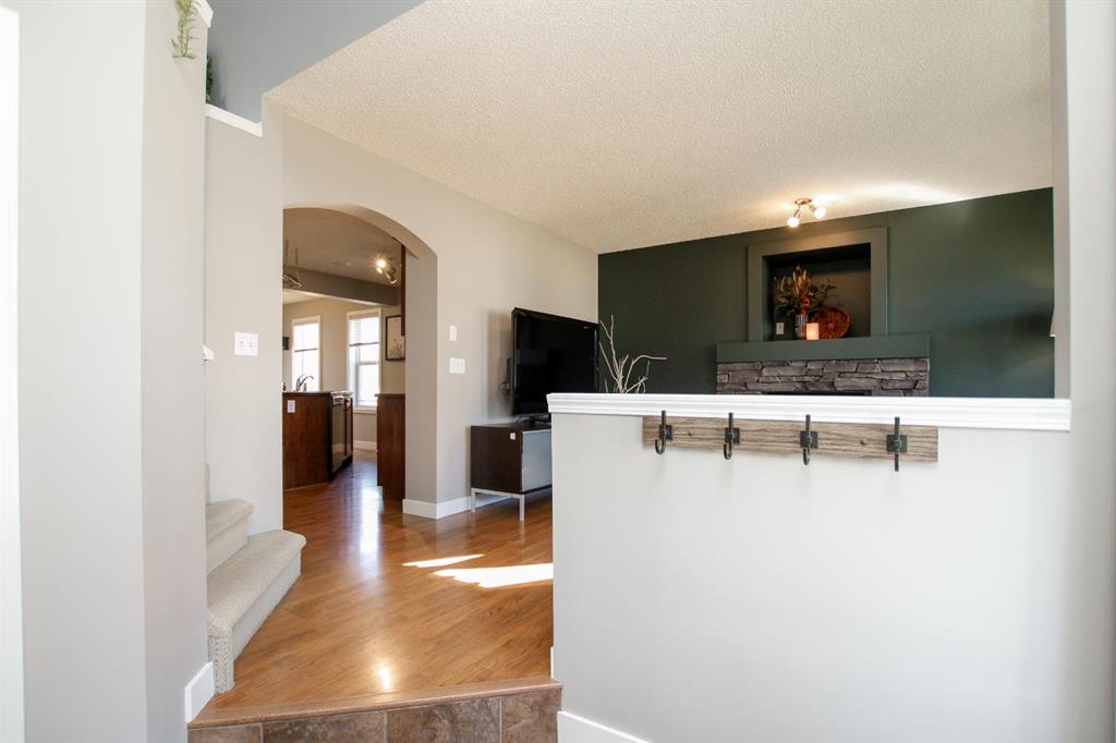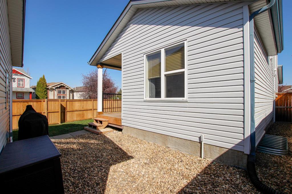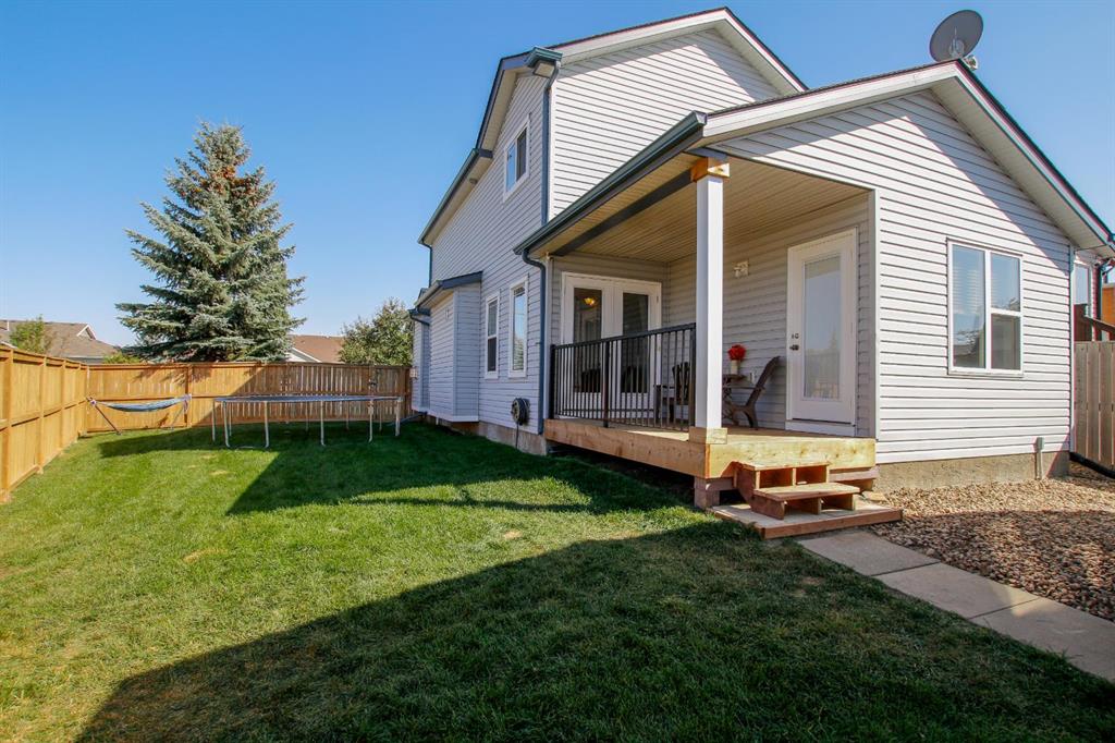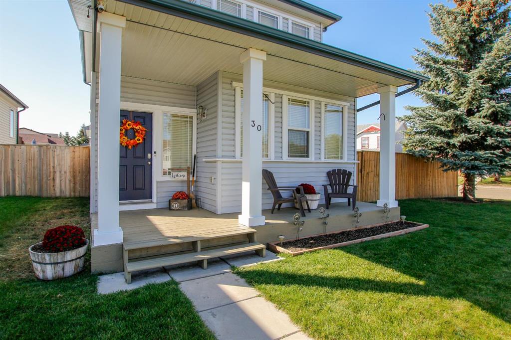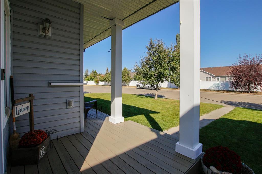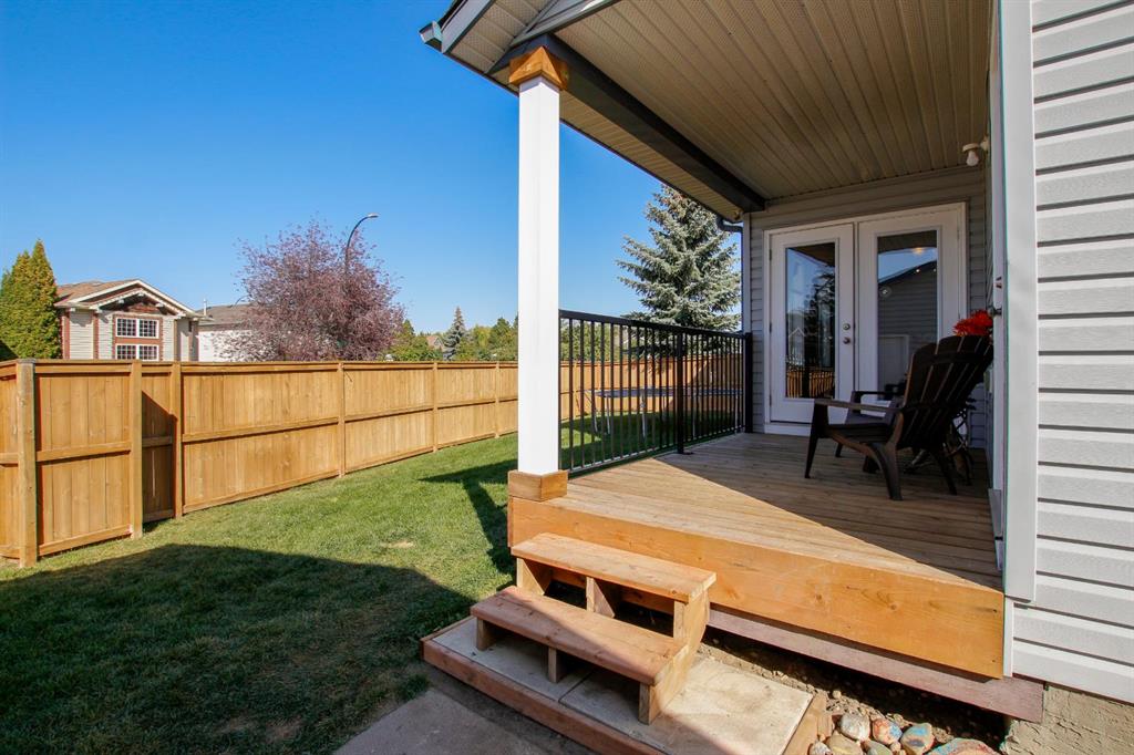 4 BEDROOM, 4 BATHROOM 2-STOREY WITH OVER 1540 SQ. FT. ABOVE GRADE ~ FULLY FINISHED BASEMENT ~ 24' X 22' DETACHED GARAGE ~ CORNER LOT WITH A WEST FACING BACKYARD ~ Covered front veranda that spans the front of the home welcomes you ~ The welcoming foyer has tile flooring and over 18' high ceilings that open to the upper level ~ The living room features large windows that fill the space with natural light and a cozy gas fireplace with stone details and a TV mount above ~ The kitchen offers a functional layout with plenty of dark stained cabinets, ample counter space including a massive island with an eating bar, full tile backsplash and a walk in corner pantry ~ 2 piece main floor bath ~ Easily entertain guests in the spacious dining room with an abundance of large windows and garden door access to the covered deck and backyard ~ The conveniently located main floor primary bedroom can easily accommodate a king size bed plus multiple pieces of furniture, has a second garden door to the covered deck, a walk in closet with built in organizers and a 4 piece ensuite bathroom ~ Open staircase with more large windows offering natural light leads to the upper level bonus room ~ 2 generous size bedrooms with ample closet space share a 4 piece bathroom with an oversized vanity and built in linen shelving ~ The fully finished basement has a huge family room, 4th bedroom, 4 piece bathroom, laundry with a sink and tons of storage throughout ~ Other great features include; Wired for sound with speakers throughout, central vacuum with kitchen kick pan ~ The sunny west facing backyard is landscaped, fully fenced and has access to the side street and back alley ~ 24' long x 22' wide double detached garage is insulated and finished with O.S.B. ~ Excellent location; steps to multiple parks, playgrounds and walking trails, walking distance to multiple schools, rec centres and tons of shopping, dining, and all other amenities ~ Move in ready!