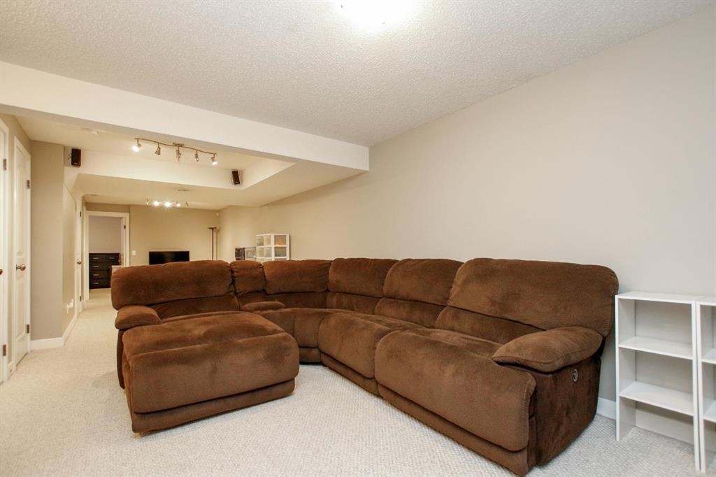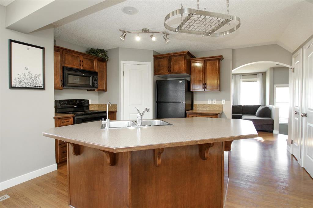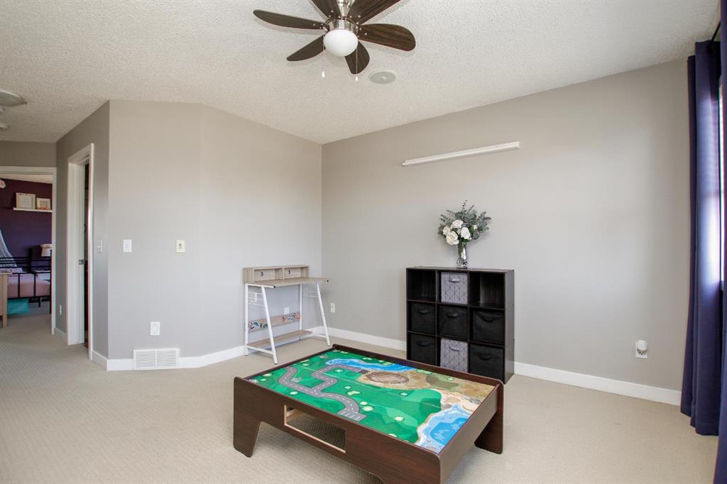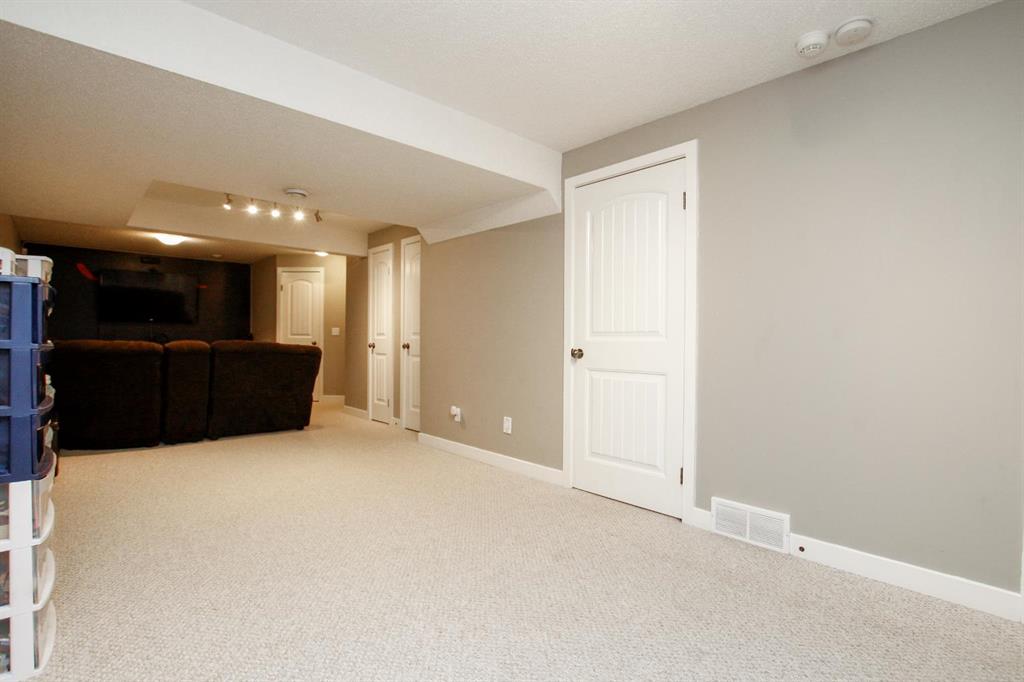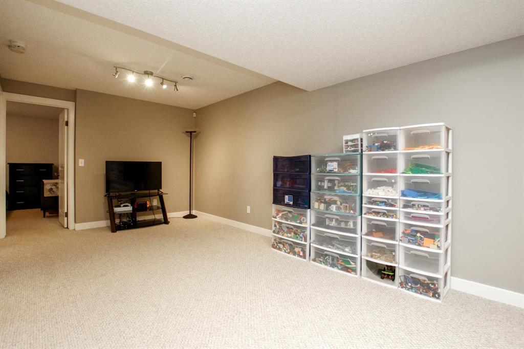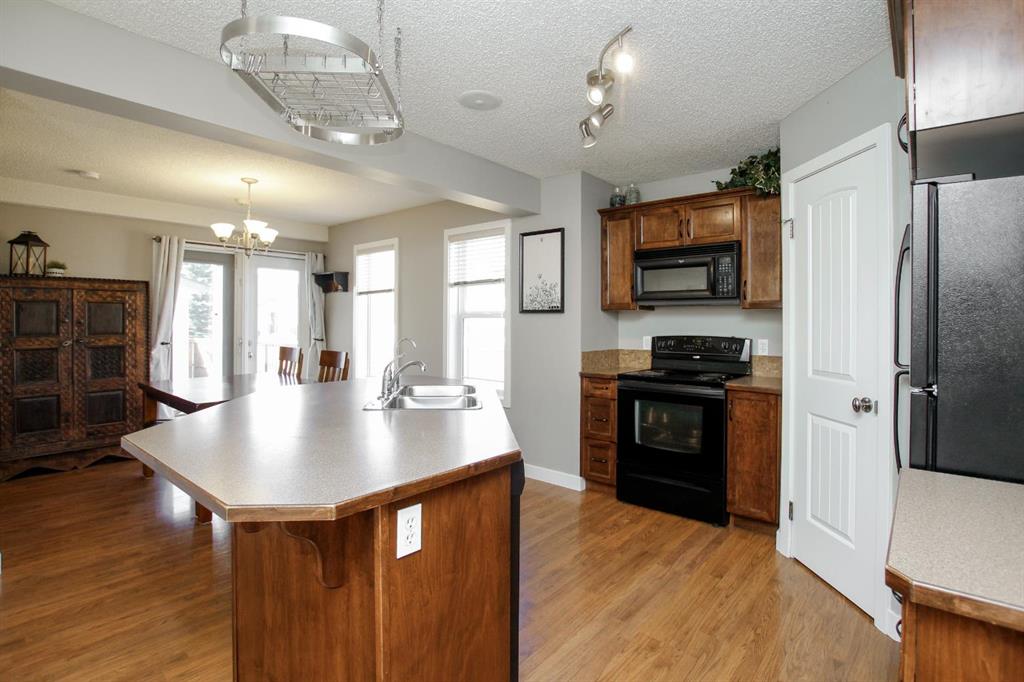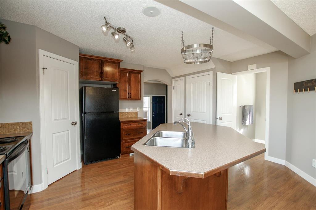 4 BEDROOM, 4 BATHROOM 2-STOREY WITH OVER 1540 SQ. FT. ABOVE GRADE ~ FULLY FINISHED BASEMENT ~ 24' X 22' DETACHED GARAGE ~ CORNER LOT WITH A WEST FACING BACKYARD ~ Covered front veranda that spans the front of the home welcomes you ~ The welcoming foyer has tile flooring and over 18' high ceilings that open to the upper level ~ The living room features large windows that fill the space with natural light and a cozy gas fireplace with stone details and a TV mount above ~ The kitchen offers a functional layout with plenty of dark stained cabinets, ample counter space including a massive island with an eating bar, full tile backsplash and a walk in corner pantry ~ 2 piece main floor bath ~ Easily entertain guests in the spacious dining room with an abundance of large windows and garden door access to the covered deck and backyard ~ The conveniently located main floor primary bedroom can easily accommodate a king size bed plus multiple pieces of furniture, has a second garden door to the covered deck, a walk in closet with built in organizers and a 4 piece ensuite bathroom ~ Open staircase with more large windows offering natural light leads to the upper level bonus room ~ 2 generous size bedrooms with ample closet space share a 4 piece bathroom with an oversized vanity and built in linen shelving ~ The fully finished basement has a huge family room, 4th bedroom, 4 piece bathroom, laundry with a sink and tons of storage throughout ~ Other great features include; Wired for sound with speakers throughout, central vacuum with kitchen kick pan ~ The sunny west facing backyard is landscaped, fully fenced and has access to the side street and back alley ~ 24' long x 22' wide double detached garage is insulated and finished with O.S.B. ~ Excellent location; steps to multiple parks, playgrounds and walking trails, walking distance to multiple schools, rec centres and tons of shopping, dining, and all other amenities ~ Move in ready!