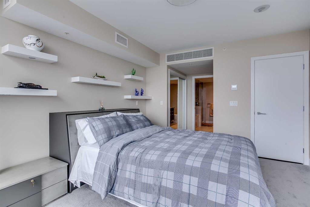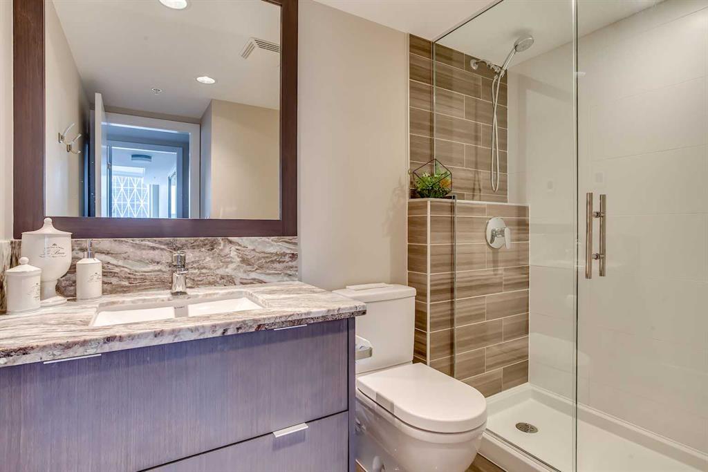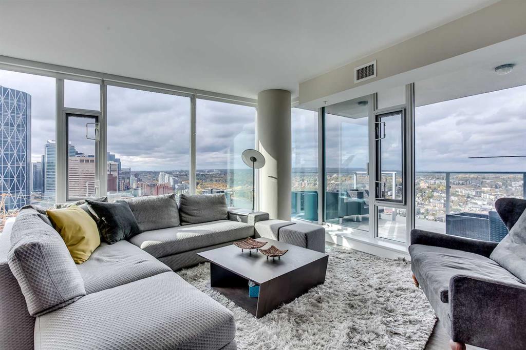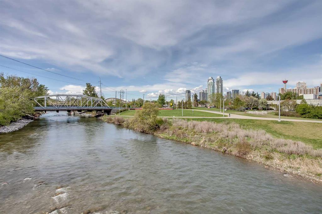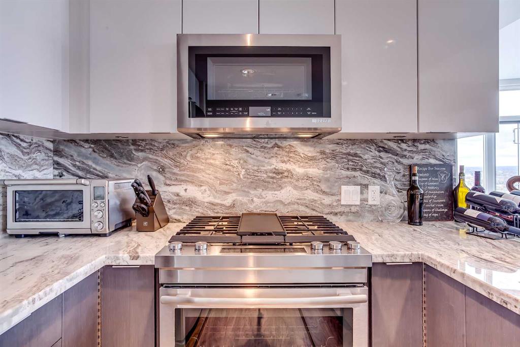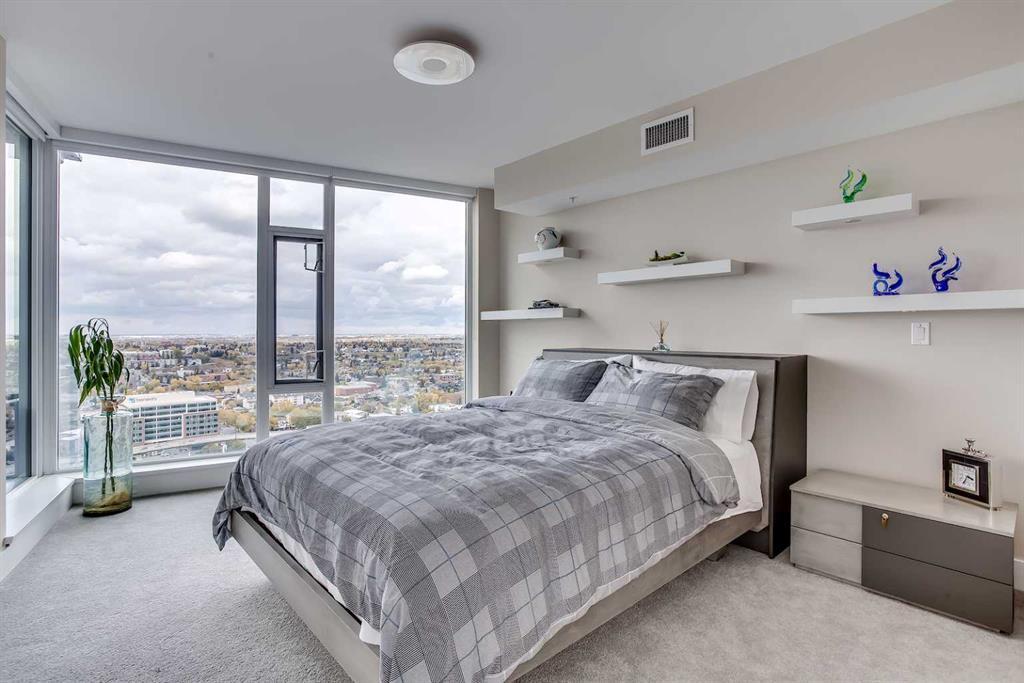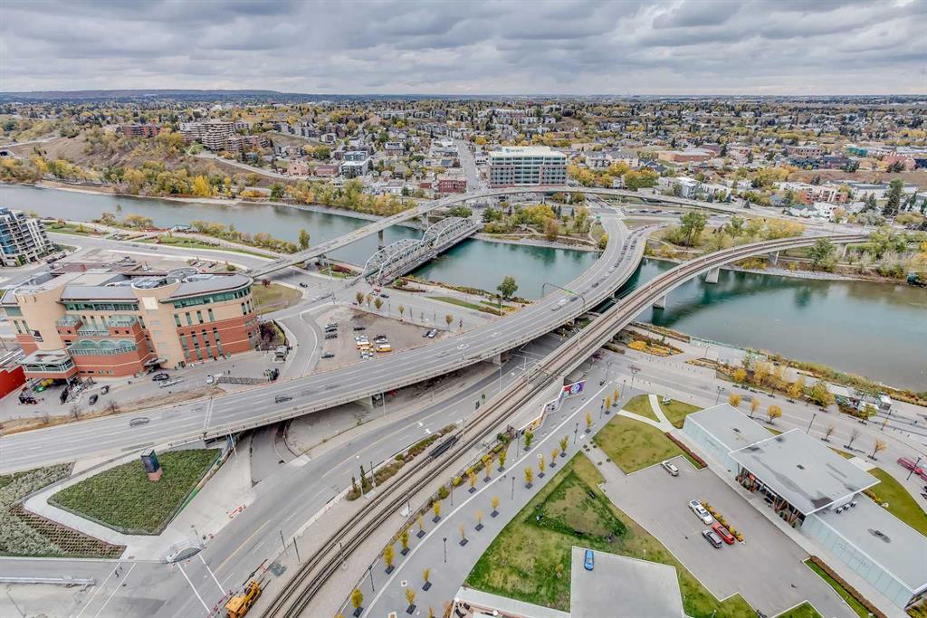 Wrap around incredible Views Upscale Urban Living in the Heart of East Village – Evolution Condo on the 30th floor for maximum Wow factor Experience sophisticated downtown living in this stunning 2-bedroom, 2-bathroom condo located in the sought-after Evolution complex in East Village. Designed with style and comfort in mind, this home offers an exceptional blend of high-end finishes, thoughtful layout, and unbeatable convenience. Floor-to-ceiling windows frame breathtaking views of the Bow River, the city skyline, and the mountains beyond, filling the space with natural light. The open-concept design connects the living room, dining area, and kitchen, creating an inviting atmosphere perfect for relaxing or hosting guests. The gourmet kitchen is equipped for serious cooking, featuring granite counters, a gas cooktop, stainless steel appliances, and an island with seating for casual meals. The primary bedroom serves as a peaceful retreat with a walk-through closet and a luxurious 5-piece ensuite complete with double sinks, a granite vanity, separate shower, and a deep soaking tub. The second bedroom is generously sized and sits next to a modern 3-piece bathroom—ideal for visitors, roommates, or a home office. Additional highlights include heated flooring in the bathrooms , in-suite laundry, a northwest-facing balcony with a gas hook-up for barbecuing, tandem underground parking for 2 cars, and a secure storage locker. Residents enjoy access to top-tier amenities, including a fully equipped fitness facility with sauna and steam room, a party room, rooftop terrace with BBQ areas, central air conditioning, and convenient concierge service. Everything you need is just steps away—shops, restaurants, entertainment options, transit, and the scenic Bow River Pathway for walking, cycling, or running. The newly opened “The Open” facility adds even more appeal, offering pickleball courts and public washrooms right in the neighbourhood. This exceptional condo offers more than a place to live—it provides a vibrant, elevated lifestyle with incredible views and unmatched convenience. A must-see opportunity.