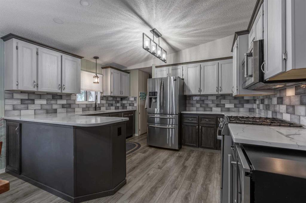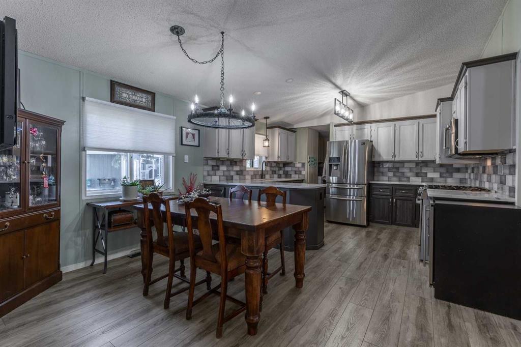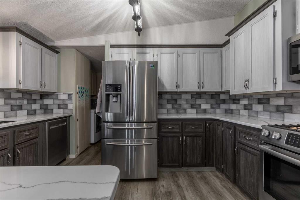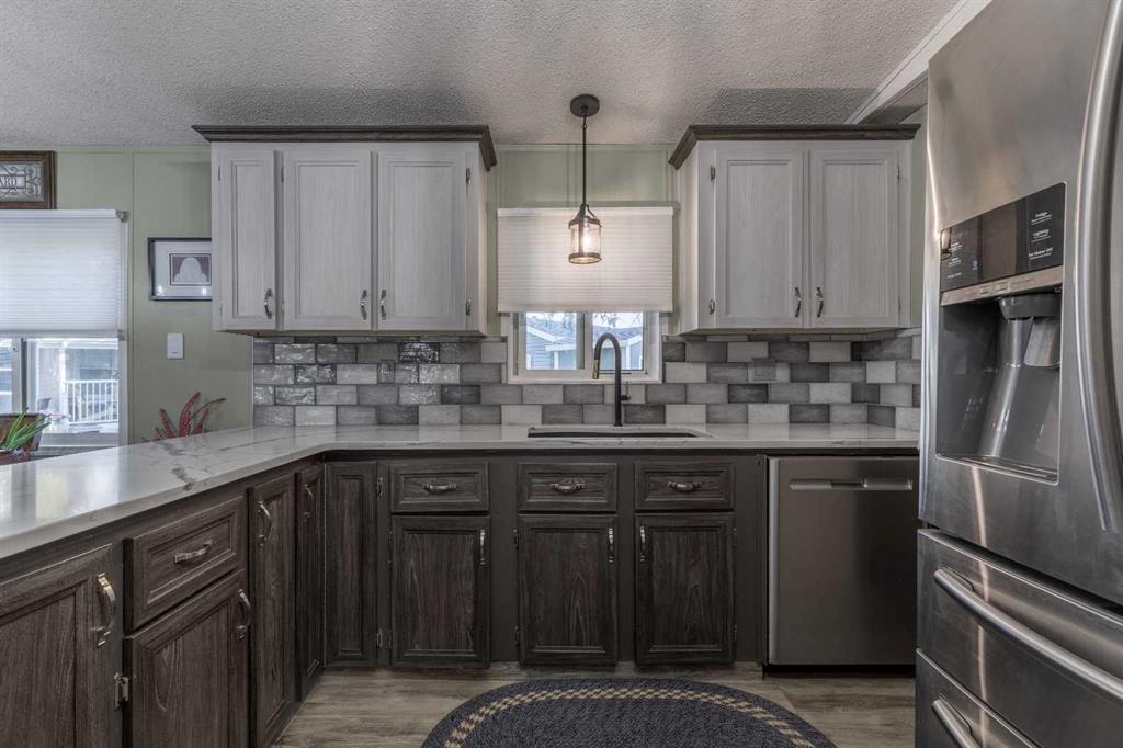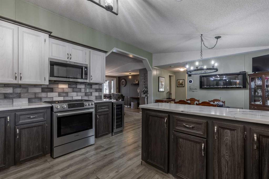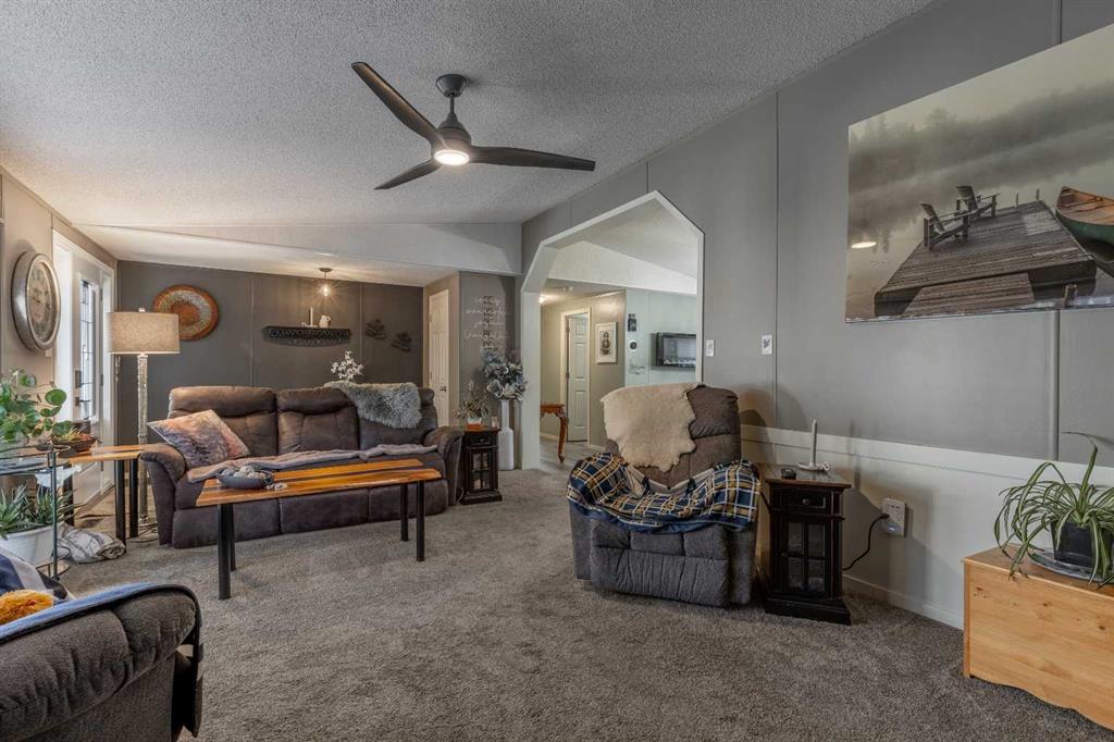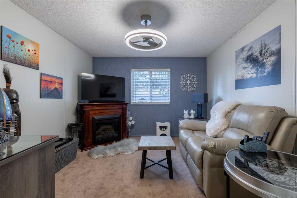 Welcome to 3004 29 Street S, a beautifully maintained manufactured home in a sought-after adult-oriented community. This inviting property offers a comfortable lifestyle with numerous upgrades and thoughtful touches throughout. Step inside to find an open and spacious layout with upgraded lighting, modern flooring, updated bathrooms, and a beautiful, large kitchen featuring stainless steel appliances and plenty of storage. The cozy electric fireplace adds warmth and character to the living space, while central A/C keeps the home comfortable year-round. Enjoy the outdoors on the expansive front porch or the low-maintenance composite deck, complete with a BBQ gas line for easy entertaining. Custom storage solutions have been added throughout the home for everyday convenience. The oversized 21' x 19' garage is insulated, wired with 220V, and includes built-in cabinetry—offering ample workspace while still leaving plenty of room for parking. This welcoming community allows one small pet, is just steps from shopping and amenities, and is known for its friendly atmosphere. Truly a move-in ready home with comfort and convenience at its core!