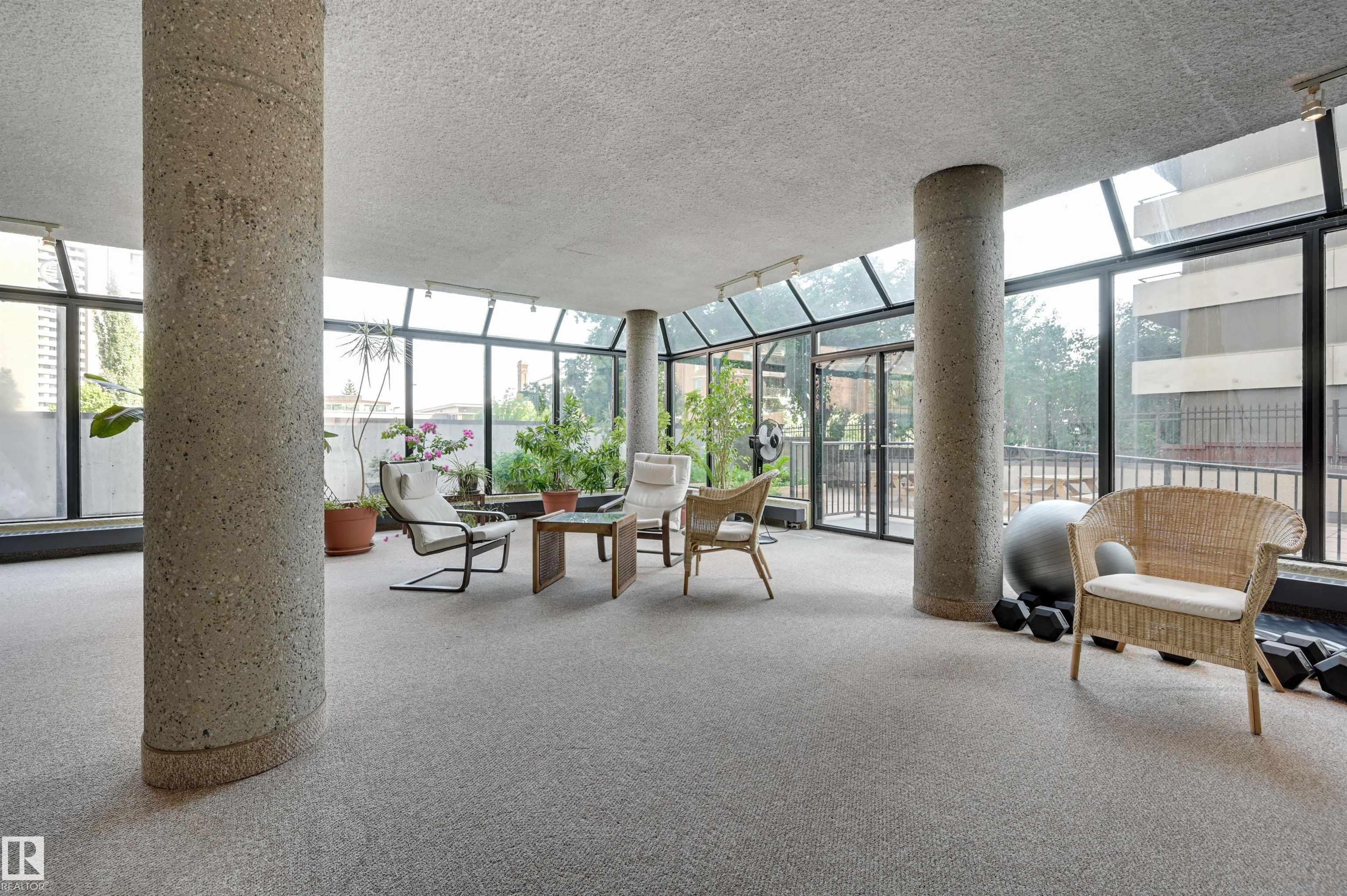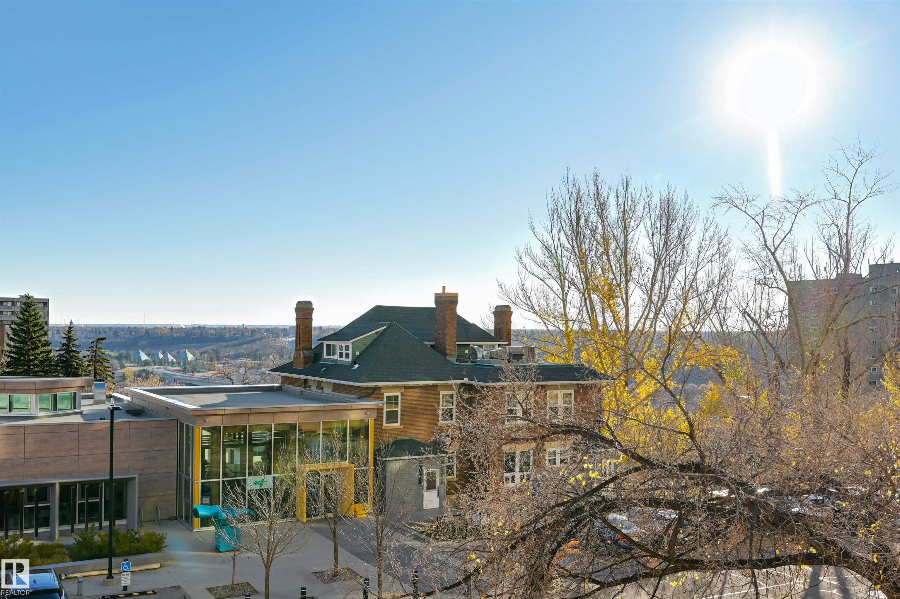 Spacious 2 bedroom, 2 bathroom condo (1,422 sq.ft.) in McDougall Place, ideally located near LRT, Ice District, restaurants, coffee shops, river valley trails, and with quick access to the U of A. Situated on the south side of 104 Street—close to the action yet on a quiet tree-lined street. Bright east and south exposures with a south-facing balcony offering partial river valley views. Features walnut hardwood and ceramic tile, a formal dining room plus kitchen eating area, and 2 large in-suite storage rooms. Includes 4-piece main bath and 3-piece ensuite. Appliances: stove, fridge, dishwasher, in-suite washer/dryer, and air conditioning. Titled underground parking stall (#120) included. Condo fees cover heat, water, power, building insurance, plus access to exercise room, social room, and visitor parking. A great value in an excellent location ready for immediate possession!