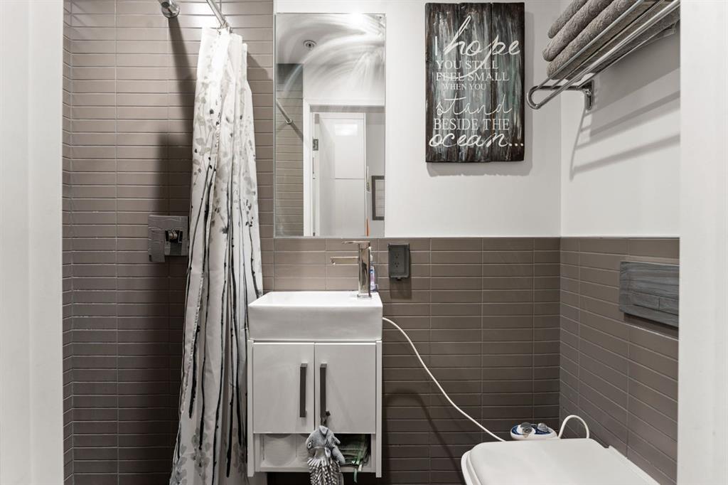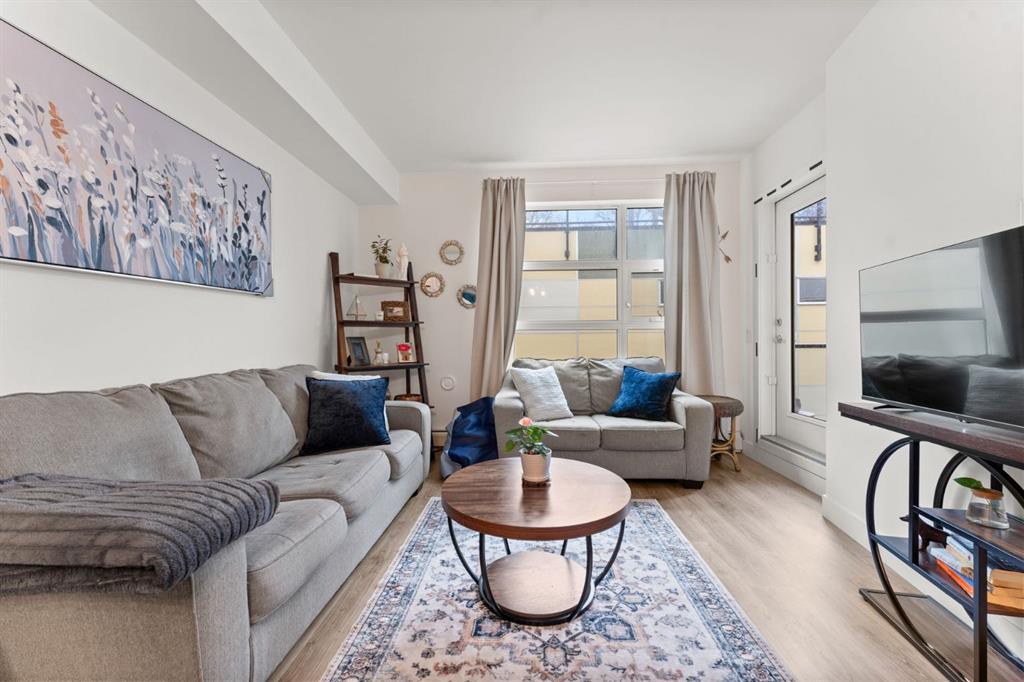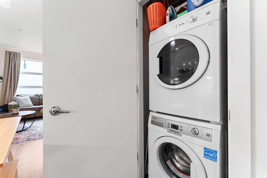 Welcome to Victory & Venture Bridgeland, offering exceptional urban living in one of Calgary’s most vibrant neighborhoods. This meticulously designed 2-bedroom, 2-bathroom condo features upscale finishes and modern conveniences. The gourmet kitchen boasts high-gloss, high-profile cabinets, quartz countertops with a stylish tile backsplash, and European integrated appliances, including a gas cooktop and built-in oven. Wide plank laminate flooring, 9’ ceilings, and modern lighting create a contemporary and spacious feel throughout. Say goodbye to bulky furniture with built-in, floor-to-ceiling wardrobes providing sleek and functional storage solutions. Enjoy the convenience of underground parking and personal storage, ensuring your belongings are secure and easily accessible. For entertaining, take advantage of two community rooftop patios featuring stunning downtown views and social amenities, perfect for hosting friends and family. Experience the perfect blend of style, comfort, and convenience in Bridgeland’s premier condo development. Don’t miss your chance to make this incredible property your new home! Contact us today to book a private viewing.