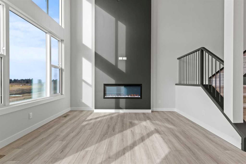 Welcome to 302 Kinniburgh Loop – A Stunning 6-Bedroom Walkout by Golden Homes in Kinniburgh South! Built by 5-star builder Golden Homes, this brand new home offers 3,088 SQFT of total developed living space across three levels — backing directly onto a walking and biking path and a tranquil pond, with unobstructed mountain views that make every day feel like a retreat. A rare opportunity in one of Chestermere's most sought-after communities. From the curb, this home stands out with its upgraded elevation featuring natural timber beams and sleek black windows, delivering bold, contemporary character. Inside, the open-concept main floor flows seamlessly through the family room that is open to below, dining area, and gourmet kitchen, complete with a large quartz island, full-height painted cabinetry, stainless steel appliances, and premium finishes throughout. A dedicated spice kitchen keeps your main kitchen show-ready for everyday cooking and entertaining. The main floor is completed with true 9' ceilings, 8' doors, a mudroom, and an office/optional bedroom. Upstairs, the primary bedroom features a luxurious 5-piece ensuite with a freestanding tub, fully tiled shower with glass doors, double vanity, and private enclosed toilet — connecting directly to a spacious walk-in closet with built-in MDF shelving and the upper-level laundry room. Two additional bedrooms share a well-appointed Jack & Jill bathroom, while a generous bonus room — perfectly positioned to capture those mountain views — completes the upper level. The fully finished walkout basement is flooded with natural light through oversized triple-pane windows and a sliding glass door that opens to your backyard. Step onto the concrete patio and take in the pond, pathway, and mountains stretching across the horizon. The basement also offers two additional bedrooms, a 3-piece bathroom, a large wet bar, and a spacious recreation room — ideal for extended family or entertaining. The upper deck provides the perfect elevated vantage point to enjoy the same stunning scenery. As with every Golden Homes build, this home includes the signature Golden Standard features: true 9' ceilings on the main floor and basement, 8' interior doors on the main floor, triple-pane oversized windows, quartz countertops throughout, upgraded MDF shelving, full-height kitchen cabinets, tankless hot water heater, HRV system, gas line to the deck, solar panel rough-in, enclosed mechanical room, upgraded carpet underlay, smart home features, and premium landscaping with sod and a tree in the front yard. With its unbeatable location backing onto the pond and pathway, breathtaking mountain views, finished walkout basement, spice kitchen, and striking upgraded exterior, 302 Kinniburgh Loop is one of the finest offerings in Kinniburgh South. Photos are of the same model and may not reflect exact finishes. Specifications are subject to change without notice.