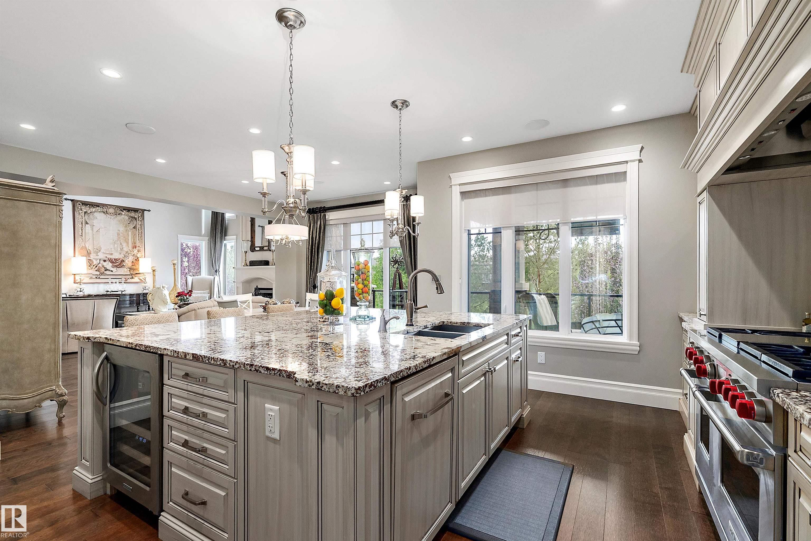 Welcome to this stunning luxury home in Windermere Estates! With nearly 6,900 sq. ft. of exquisite living space, this estate offers a lifestyle of comfort, elegance, and sophistication. Featuring 5 bedrooms, 5.1 bathrooms (including 3 ensuites), every detail is thoughtfully designed. Enjoy movie nights in the private theatre, relax in the swim spa, or entertain on the heated deck. High-end finishes include a built-in Sub-Zero fridge, premium appliances, a Wolfe 6-burner gas stove with grill, a Butler’s kitchen, and an enjoyable wet bar. Stay fit in your private gym, work from home in the spacious office, or unwind in the tranquil library. Additional features like in-floor heating, a walk-out basement, an elevator, and a triple garage add to the comfort. Overlooking a serene pond, this home blends luxury, privacy, and a refined lifestyle—your dream home awaits!