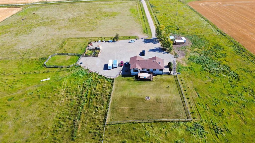 14 acres of flat, cross fenced land with endless opportunity & a move-in ready fully finished updated bungalow that offers mountain, pasture & city views! This tranquil location delivers gorgeous sunrises & stunning sunsets. The perfect land setup for horses, chickens, a dirt bike track, future riding arena, skating rink or whatever your family can dream up! It even provides a fenced-in "yard space" with a large deck out back to enjoy your mountain views & plush-manicured grass beneath your bare feet! The possibilities are endless & you're just far enough to officially feel like you're in the country but close enough to all the conveniences when you need to cruise the blacktop to town! Approximately 25minutes to Okotoks Costco, Seton Superstore, Bob Snodgrass Recreation Centre in High River, YMCA Seton, Heritage Pointe Restaurants, fuel, spa, medical clinic & liquor store AND even Big Sky BBQ Pit for some of the best BBQ in Alberta! This BRIGHT, updated & FUNCTIONAL home has been meticulously maintained & cared for and is shown throughout. Character is shown with archways, vaulted ceiling, nooks, NEW PREMIUM FLOORING & warm accents! The lower level is laid out in such a way that it lends itself to an open-concept yet separated recreation space, family room & flex space! It is soo functional & BRIGHT with its NEW WINDOWS, NEW CARPET and includes two additional bedrooms & an updated 3 piece bathroom! Additional mentions include an electric gate, over 150 trees planted with drip line, new sliding door to back deck, all poly B piping replaced, hot tub hook ups on west side, 3 year old wire fence around perimeter w/new corner posts - top wire electric. Feel the freedom & serenity of being in the country with quick, easy "no traffic to worry about" conveniences within 25 minutes!! Schedule your showing before it's scooped up & appreciated by someone else!