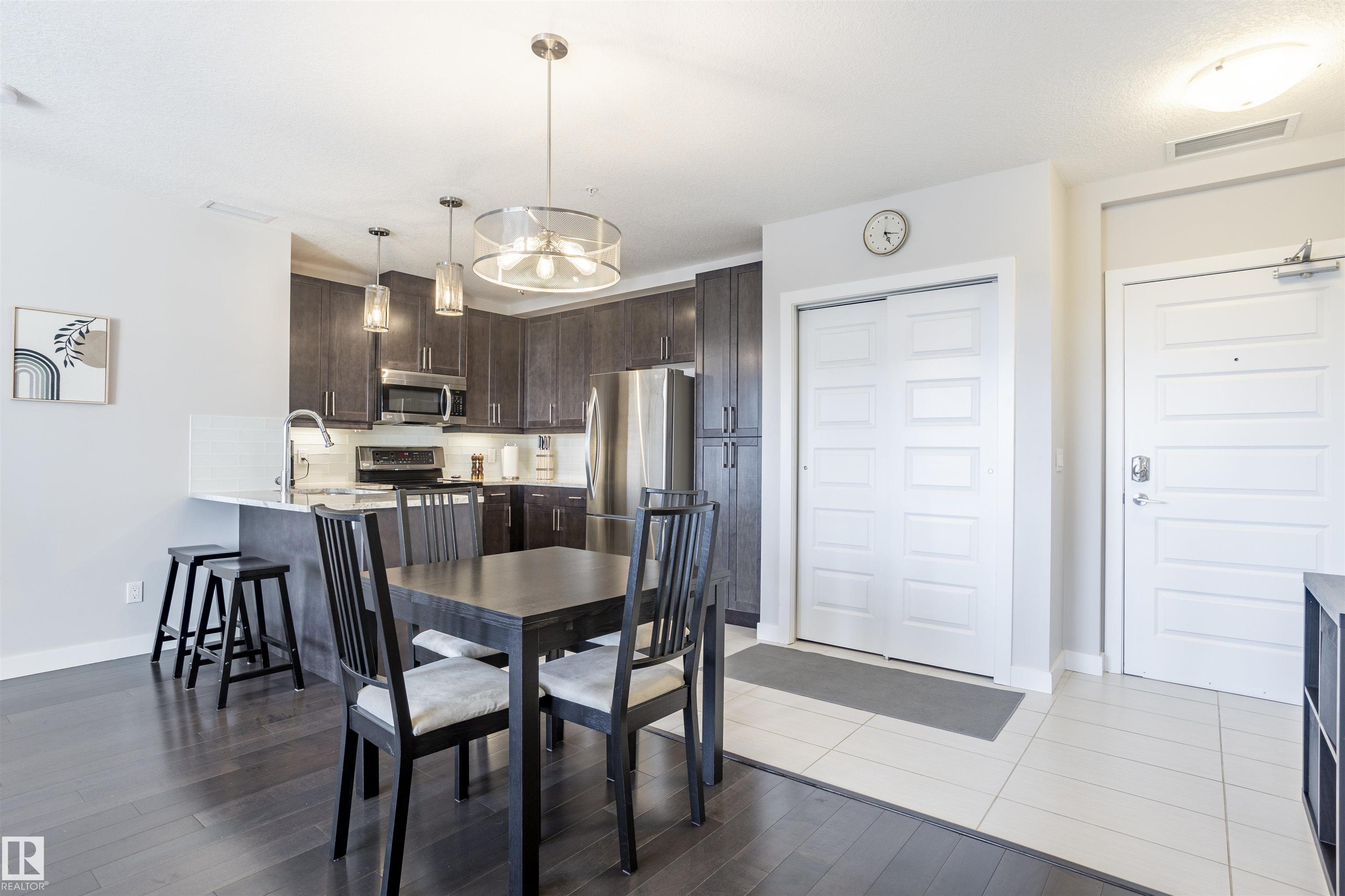 Extremely well-kept condo in the concrete high-rise Signature at Ambleside in Windermere That comes fully furnished. Ideally located just blocks from the Anthony Henday and across from the Currents of Windermere, this 2 bedroom, 2 bathroom home is sure to impress. Step onto the balcony to enjoy the view, or inside to a fully upgraded unit highlighted by a stunning kitchen, in-suite laundry, and plenty of storage. Titled underground parking is included, along with access to premium amenities: a fitness center with beautiful views, an outdoor patio with BBQ, and a stylish lounge with kitchen, fireplace, and billiards table, perfect for entertaining. A full-time concierge service adds convenience, greeting your guests and accepting deliveries. Outside your door are restaurants, a theatre, pubs, shopping, and nearby medical and dental services. A true turnkey lifestyle property in one of Edmonton’s most desirable communities.