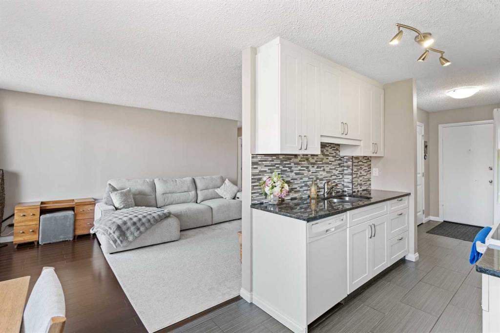 This well-kept third-floor corner unit offers 839 sq. ft. of thoughtfully designed living space, featuring two spacious bedrooms, a modern 4-piece bathroom, private balcony and an inviting, open layout that feels bright, airy, and comfortable. Upgraded finishes include granite countertops, tile backsplashes, and sleek white cabinetry in both the kitchen and bathroom. The bathroom is also complete with a tile-surround tub to complete the space. Flooring includes tile in the entryway, kitchen, and bathroom, with durable laminate flowing through the dining area, living room, and bedrooms. Additional conveniences include low condo fees that cover everything except electricity. You will find a versatile storage room at the entrance that can be used as a pantry, extra closet, or even converted into a laundry room, with plumbing nearby. This well-maintained building adds exceptional long-term value with major upgrades already completed. Vinyl windows and doors (2016–17), a new roof (2021), and a new boiler installed in August 2024 remove uncertainty about major future costs. The property is overseen by a proactive and well-managed condo board that prioritizes upkeep and financial sustainability for its owners. For your vehicle we have an assigned parking stall under a covered carport or if you don’t feel like driving, the location is unbeatable. Just steps from Chinook Mall and the Chinook LRT Station, you’ll enjoy fast access to downtown with a 13-minute train ride, running every 10 minutes. You're also minutes from a wide variety of shopping, restaurants, and services along MacLeod Trail, making this condo the perfect combination of comfort, convenience, and value. Whether you're a first-time buyer, investor, or looking to downsize, this move-in-ready condo offers the perfect balance of comfort, modern upgrades, prime location, and long-term value in a highly sought-after location.