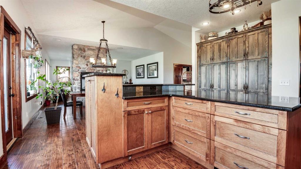 OPPORTUNITY KNOCKS - 3 ACRE PROPERTY WITHIN THE STRATHMORE WEST ASP. Created in 2006 this lovely 3 acre parcel features a FULLY DEVELOPED BUNGALOW offering over 3100 SQ FT of developed living space, an OVERSIZED HEATED TRIPLE GARAGE plus a LARGE SHOP equipped with water and power. Designed with Modern Country sheek details that highlight rustic charm and country living the OPEN FLOOR PLAN is flooded with natural light throughout the day and enjoys A/C on warmer days. A stunning kitchen boasts top of the line appliances and features a massive eat up island with additional seating. The open ended dining area is nestled next to a floor to ceiling rock faced fireplace and overlooks the pristine landscaped rear yard. A FAMILY SIZED GREAT ROOM offers up a restful retreat steps from the kitchen and dining area. The main floor primary bedroom is complete with a 3 pc en-suite bath and walk in closet. Easy access off the triple garage leads into the mudroom, two piece main bath and main floor laundry. HEATED FLOORS and large windows set the stage in the lower level for cozy evenings where you will find a large recreation area plus 3 more bedrooms and a five piece bath. A much desired large storage area completes the lower level. The 4500 sq ft shop with a developed main floor and mezzanine including a 2 pc bath is ready to develop further for long term family. The open area of the shop has an asphalt floor and the walls are insulated and boarded. The two large rear facing doors have the height you need to store your RV. The immaculate grounds feature inground sprinklers and a natural pond that attracts wildlife and birds. The Strathmore West ASP includes this 3 acre parcel. A potential rezoning in a few years might make this 3 acre parcel a worthy commercial consideration? There is a large concrete pad already poured on the North side of the property which would make an ideal base to bring in a modular or mobile home. Permits and applications must go through the Town of Strathmore as this property is annexed in to the Town. Now is the time to think about a long term investment - live here for 10 years while the town builds out towards you and enjoy the potential revenue generation or create a family set up that delivers a dream come true for many. For more information on the Strathmore West ASP please access the uploaded documents.