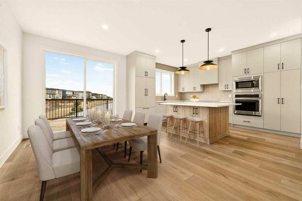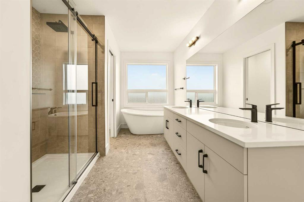 Built by Stranville Living Master Builder, the Brechin model is a striking new home located in the desirable community of Southbrook, perfectly positioned backing onto a pond with uninterrupted views. This brand new home comes with a 10 year new home warranty and GST is included in the sale price. A full-length deck spans the entire back of the home, creating an ideal vantage point to enjoy the water and open skies while extending your living space outdoors in a way that feels both intentional and serene. Adding to the home’s functionality is an extended garage measuring 26 x 22, offering excellent space for larger vehicles, additional storage, or a workshop setup. Inside, the wide-open main floor is designed for modern living, offering a seamless flow that feels spacious the moment you step in. The kitchen is the heart of the home and it delivers on both form and function, anchored by a massive square island with additional cabinetry below for extra storage. The sink is thoughtfully placed beneath a window overlooking the pond, turning everyday tasks into something a little more enjoyable. High-end, fully paneled appliances elevate the space, including a Fisher & Paykel refrigerator, a paneled dishwasher, a built-in oven and microwave, and a sleek matte induction cooktop that ties the whole design together. The living room is warm and inviting, centered around an electric fireplace with a custom mantel that adds character without overwhelming the clean, modern aesthetic. The second level features three spacious bedrooms along with a bonus room that works perfectly as a family lounge, media space, or home office. The primary bedroom enjoys peaceful pond views and flows into an ensuite that truly has it all, including dual vanities, a walk-in shower, a standalone soaker tub, and a private water closet. From the ensuite, you’re led into a generous walk-in closet that continues directly into a full-size laundry room, adding a level of convenience that’s both practical and thoughtfully designed. This Southbrook home offers a refined layout, premium finishes, and a setting that makes everyday living feel just a little more elevated.