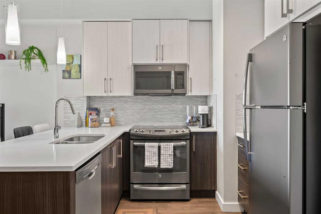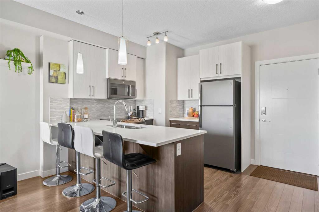 Welcome to this beautifully maintained top-floor condo in the desirable community of Sage Hill. Thoughtfully designed and impeccably cared for, this move-in ready home offers comfort, style, and convenience, complete with a titled UNDERGROUND parking stall. Inside, you'll love the open-concept layout with vinyl plank flooring flowing throughout the main living spaces, creating a modern and cohesive feel. The stylish U-shaped kitchen features two-toned cabinetry, stainless steel appliances, and seating for four at the breakfast bar, perfect for casual dining or entertaining. The kitchen opens seamlessly into a well-sized dining area that easily fits a table for four, and the living room offers a large window and easy access to your private balcony. A thoughtful half bath and a generous front closet provide additional functionality and storage. The spacious primary bedroom is a true retreat, offering a charming nook that’s perfect for a home office or reading corner. The primary also comes with it's own 4-piece ensuite featuring quartz countertops, and also offers the convenience of a walk-through closet that leads directly to the in-suite laundry area with a stacked washer and dryer. To top it all off, the building exterior has been recently upgraded with new siding and roofing, offering long-term peace of mind. Located in Sage Hill you'll enjoy scenic walking paths, beautiful ravines, and a family-friendly atmosphere. Minutes to all the major shopping plazas in the community including Creek Side Shopping Centre (Shoppers, Co-Op, Good Life Fitness, Gas Stations , Banks, Restaurants, Medical Clinics and so much more). The complex is also conveniently located next to Symons Valley Road meaning you'll have easy access to major roads. Whether you're a first-time buyer, downsizer, or investor, this is a home and location that truly checks all the boxes.