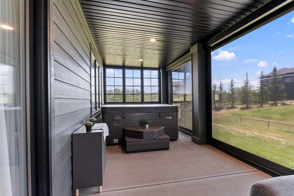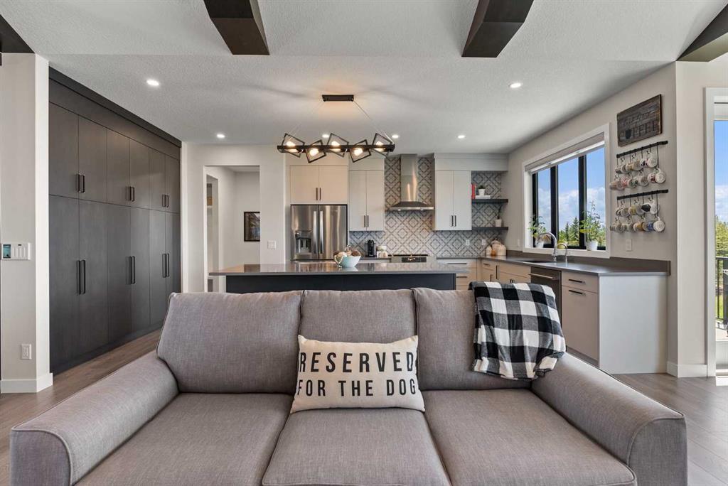 Discover this beautiful home just outside of Cochrane in Monterra. Offering nearly 3,400 sq ft of thoughtfully developed living space on a generous 0.45-acre lot, it delivers the top-tier essentials buyers crave. The main floor impresses with an open, airy design featuring vaulted ceilings that create a bright, inviting atmosphere. The spacious kitchen boasts a large island and soft-close cabinets, flowing seamlessly into the dining and living areas—ideal for hosting family and friends. The primary suite is a private sanctuary, with an elegant ensuite that includes a soaker tub, shower, and dual sinks, complemented by a large walk-in closet with built-in organizers. Convenience is key with a well-appointed laundry room located along the corridor to the heated, insulated triple garage. Step outside onto expansive decks—12x28 feet on both levels—that are perfect for outdoor entertaining. The lower deck features a hot tub, offering a relaxing retreat with stunning mountain views. Throughout the home, you’ll find custom built-ins, including a dedicated office with custom cabinetry and a built-in pantry for ample storage. The finished basement provides additional living space with two bedrooms, a spacious rec room that opens to a large patio, and a versatile three-season room equipped with retractable screens to enjoy the outdoors in comfort. This property combines luxurious finishes, practical design, and breathtaking natural scenery—making it an exceptional place to live and entertain.