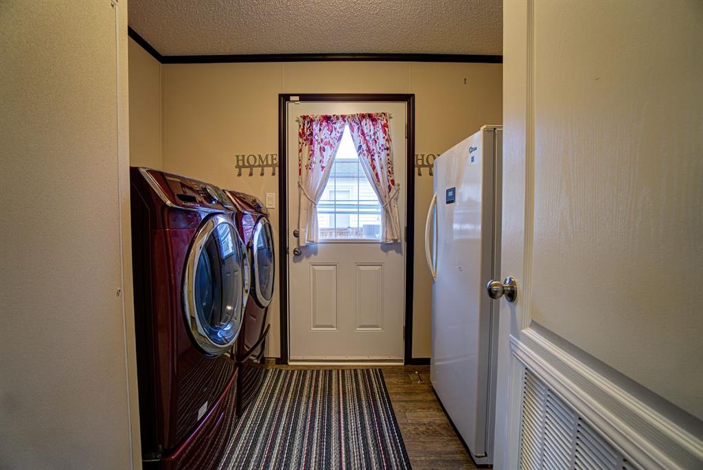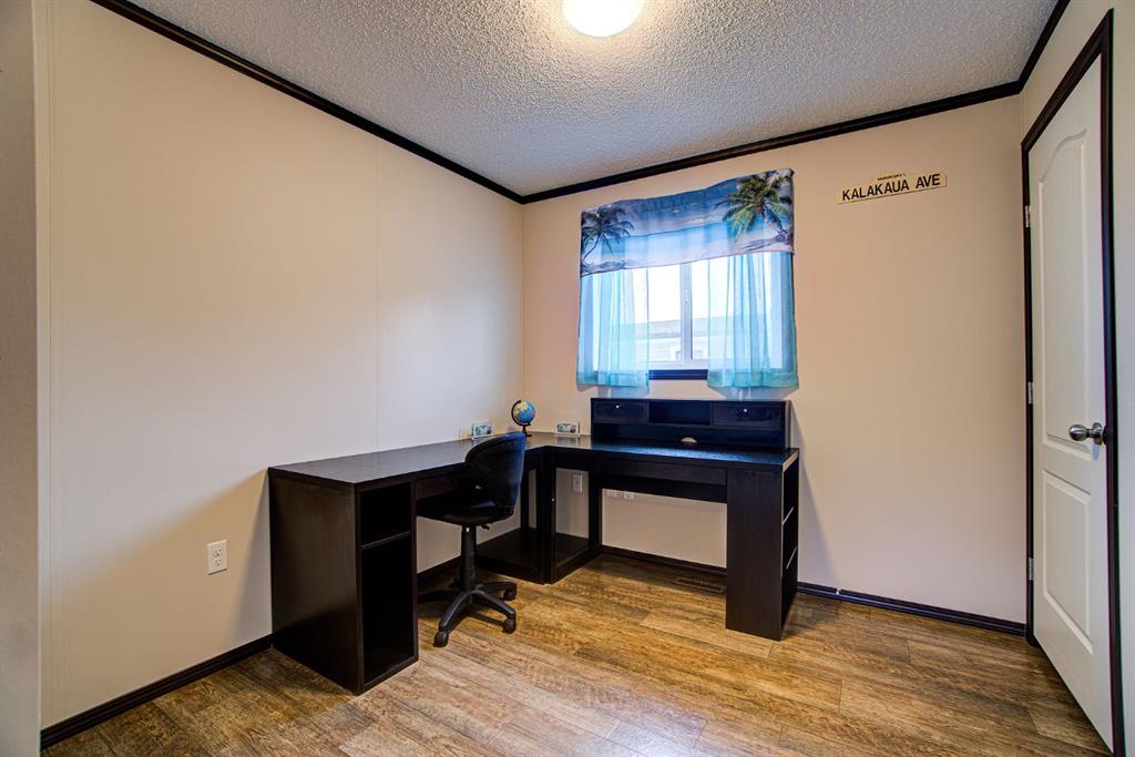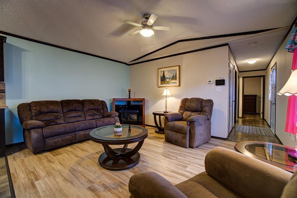 Looking to downsize or simplify your lifestyle? Welcome to easy, low-maintenance living in this well-cared-for modular home, perfectly situated on its own lot just blocks from the 18-hole golf course, the Kin Trail walking path, and Frog Creek’s scenic trails. Step inside to find an inviting open-concept layout with a spacious living room, bright kitchen, and dining area that make everyday living and entertaining effortless. The kitchen offers a central island, corner pantry, and plenty of cabinetry for storage. Just off the kitchen, the primary bedroom features a walk-in closet and a 4-piece ensuite. The convenient laundry room includes a second entrance and space for a freezer. At the opposite end of the home, you’ll find two additional bedrooms and a full 4-piece main bathroom — ideal for guests or a home office. Outside, the fully fenced yard is designed for easy upkeep with a ground-level concrete patio, handy storage shed, and back alley access. A paved front driveway adds to the convenience. Move-in ready and available for quick possession — don’t miss this fantastic opportunity for simple living close to all the outdoor amenities you love.