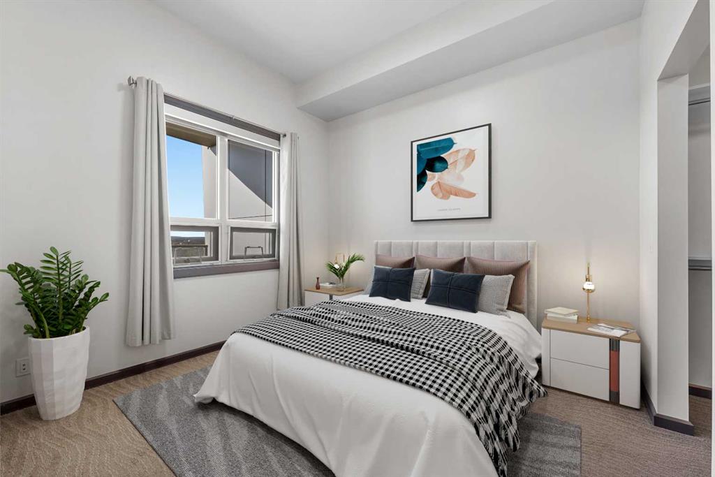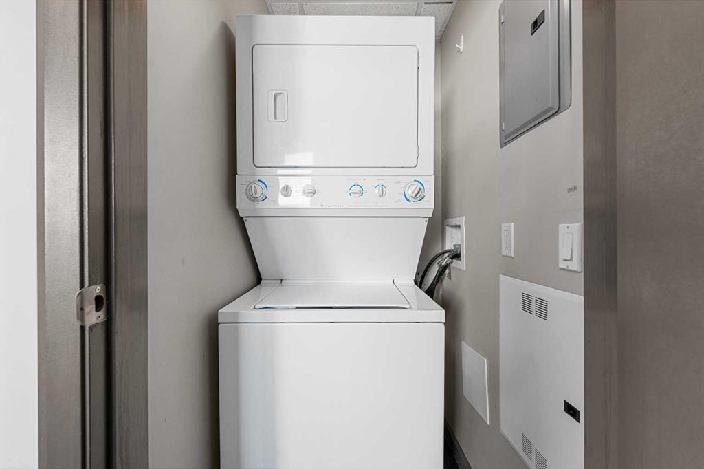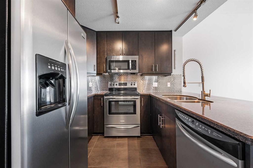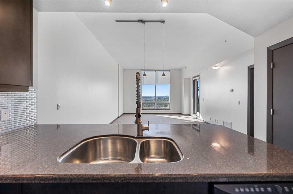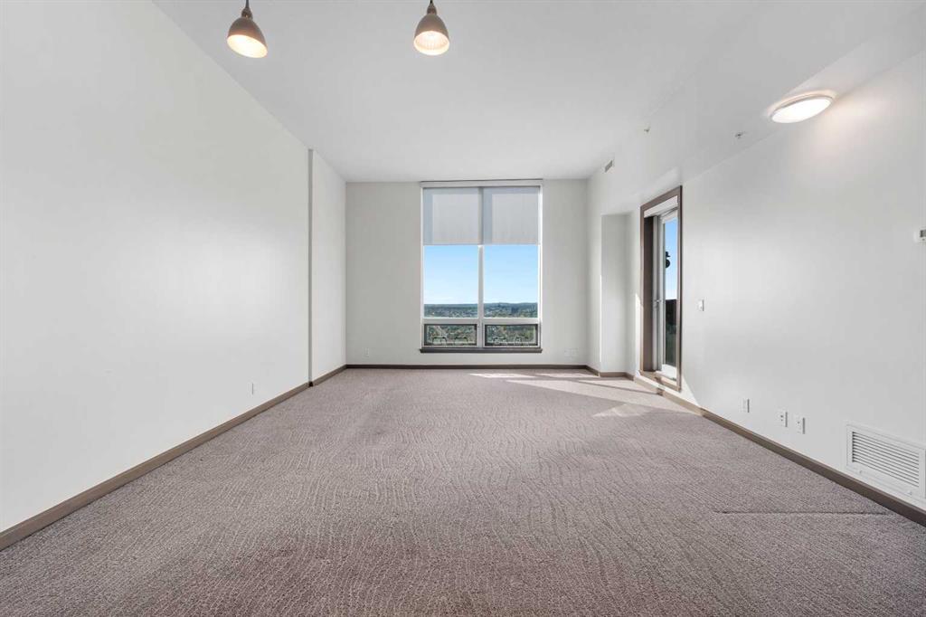 Perched high on the 32nd floor, this stunning south-facing unit offers breathtaking panoramic views of the Rocky Mountains and Stampede Grounds through floor-to-ceiling windows. With soaring 10 ft ceilings, the space feels bright, open, and luxurious. The kitchen boasts granite countertops, stainless steel appliances, and a stylish backsplash; a perfect place for creating delicious meals for yourself and guests. A massive living room makes the most of the incredible views with floor to ceiling south facing windows giving you a magnificent space to curl up with a good book and gaze at our wonderful city. The spacious bedroom features a walk-through closet leading into the bathroom; a great place to rest your soul after a day of fun and adventure. To further support your carefree lifestyle this home also includes air conditioning, titled underground parking and a storage locker for your convenience. The building offers resort-style amenities including concierge service, a large fitness center, hot tub, steam room, theater, and party room. This condo is the idyllic home for you with stunning views, luxurious space and amazing amenities all within your own building.