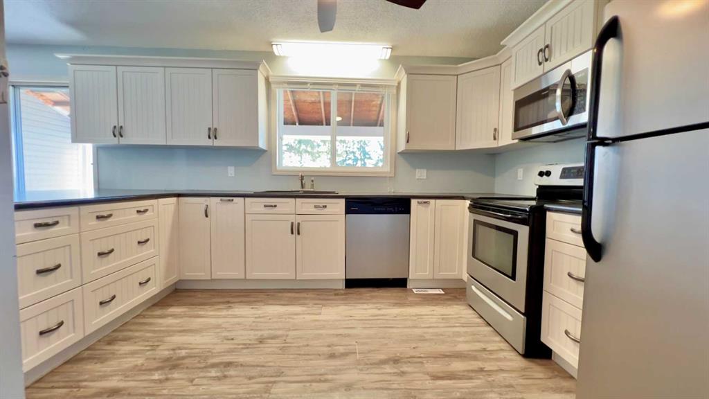 Welcome to 3219 Olson Street in Donalda, AB — a spacious two-storey family home set on a 0.32-acre lot, perfectly positioned with no neighbors to the west and open views of rolling farmland. With its generous square footage, oversized yard, and community-minded location, this home was designed with family living in mind. Step inside and you’ll find a layout that balances both function and comfort. At the heart of the home is the updated kitchen — fully redone approx 10yrs ago and complemented by stainless steel applainces, 2 pantry's and more recent fixture updates. This inviting space includes a peninsula with bar seating and a bright eat-in dining area that provides access directly to the semi wrap-around covered deck, making it a natural gathering place for meals, homework, and everyday hang-outs. On the opposite end, a more formal dining room flows seamlessly into the oversized living room, where a bay window fills the space with natural light — perfect for both family nights and entertaining. Upstairs, all four bedrooms are thoughtfully situated on one level, including a spacious primary suite with a 3-piece ensuite. The oversized laundry room adds convenience and could be relocated downstairs to create a fifth bedroom if needed. New carpet on the stairs and hallway adds a refreshed touch. The main floor also features a bonus room tucked off the garage, offering privacy and flexibility as a man cave, kid's playroom, home gym or future theatre room. The unfinished basement provides abundant storage and is also home to the mechanical area. Outdoor living is just as inviting, with a fully fenced yard, gated RV parking, and an expansive covered deck that wraps almost two sides of the home — a perfect extension of your living space. Beyond your own backyard, the community of Donalda adds to the appeal. Families enjoy a local K–9 school, scenic hiking trails, and a welcoming small-town pace where kids play and ride bikes in the streets. This is a property that offers room to live, grow, and with a little fresh paint throughout, you can easily make it your own.