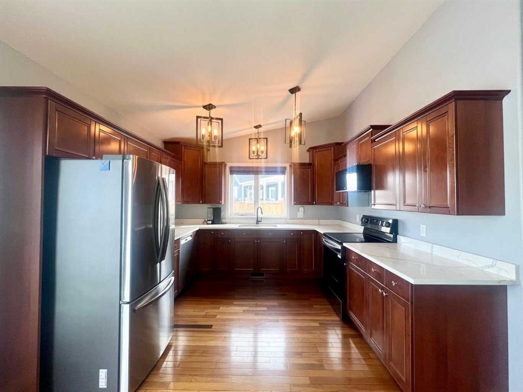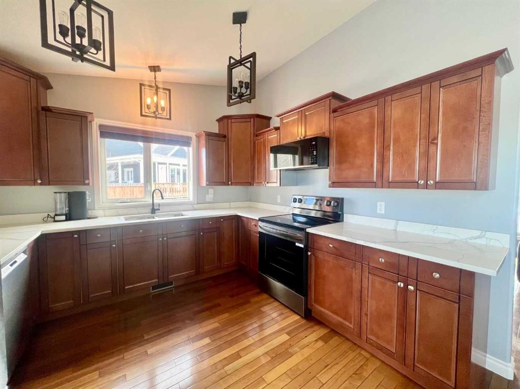 Welcome to quiet cul-de-sac living in the heart of Linden, where wide open field views out back give you that peaceful country lifestyle. Built on an ICF foundation with in-floor heat, this home is designed to handle Alberta winters with ease. A new furnace in 2025 adds extra peace of mind for years to come. Step inside to beautiful hardwood floors that run throughout the main level, bringing warmth and timeless character to the space. The kitchen has been thoughtfully updated with quartz countertops, an undermount sink, and newer smart appliances making for the perfect mix of modern function and everyday comfort. The main floor laundry room with storage closet adds convenience to your daily routine. The main level features a spacious primary bedroom complete with a full ensuite. Downstairs, you’ll find a second primary suite with its own spacious walk-in closet and stand-up shower which could be ideal for extended family, guests, or anyone who appreciates a little extra privacy. The lower level also includes a wet bar, creating a great space for entertaining or relaxed evenings at home. An oversized double detached garage offers plenty of room for vehicles, tools, and all the extras that come with country living. Enjoy your morning coffee on the welcoming front porch or unwind on the back deck while taking in the views. This is small-town Alberta living at its finest! Quiet, comfortable, and ready to welcome you home.