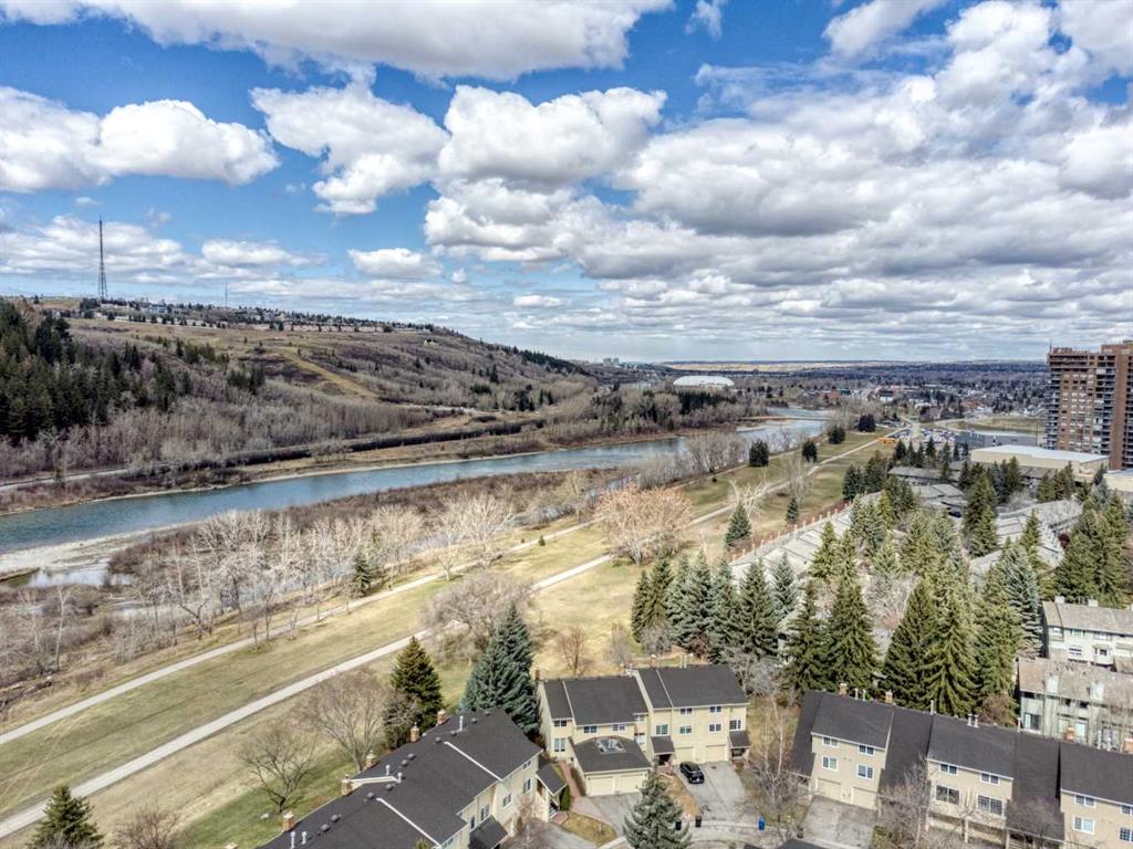 Wanna walk to the River and back onto green space? You must see this lovely 4-level Split-style Townhouse in the desirable Point McKay area. Just a stone’s throw away from the River, it’s perfect for peaceful morning or evening walks. This charming home backs directly onto the Park and connects seamlessly to the scenic Bow River Pathway. | Brand New Kitchen with New Quartz Countertop, New Cabinets, and Brand New Appliances | Brand New Carpet throughout the Upper Level | Brand New Quartz Countertops in all Bathrooms | Newer Shingles (replaced in 2023 by the board for the entire unit), Windows (replaced in 2012) Step into the sunny East-facing Living Room with soaring nearly 12-foot ceilings, a cozy wood-burning fireplace, and two nearly floor-to-ceiling picture windows that enhance the open, airy feel. Hardwood floors stretch through the Living Room and up to the Formal Dining Room. The Formal Dining Room and spacious Kitchen with Breakfast Nook provide excellent space for family gatherings. A half bath completes this level. On the upper level, you’ll find 3 bedrooms, including a generously sized Primary Bedroom with an upgraded full bath ensuite and his/her closets. Two additional good-sized bedrooms and a full bath complete this level. The basement is developed with a Rec Room and a laundry room. An insulated single attached garage and a beautifully landscaped backyard with a brick paving stone patio complete this home. Enjoy relaxing in your private backyard with a serene park setting and no neighbor behind! Living in Point McKay means you're not just close to the river—you’re immersed in it. Enjoy easy access to walking and biking trails, tennis courts, and the nearby Riverside Club. You're only minutes to Downtown, Foothills and Children's Hospitals, the University of Calgary, Market Mall, and beloved local spots like LICS Ice Cream and Lazy Loaf & Kettle. From daily commutes to weekend escapes in the Rockies, and everything in between — this location truly has it all. Condo fees covered Water and sewer for the unit.