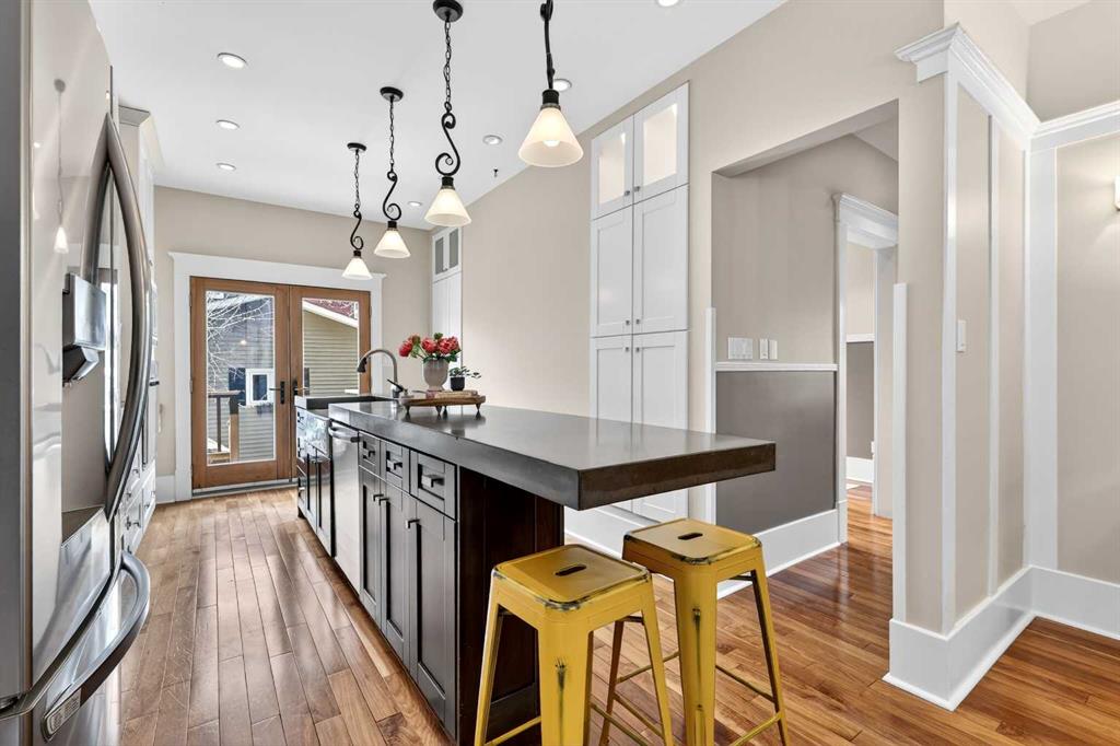 Welcome to 3235 6th St SW — a beautiful, character-filled home in the center of highly sought-after Elbow Park. With 4 bedrooms on upper floor, this residence offers 2,659 sq ft of livable space including a fully finished basement on a tree-lined, picturesque street. Bright and welcoming, the east-facing front porch is perfect for morning coffee while sunlight filters through custom wood shutters into an inviting living room. The main floor features modern hardwood, fresh paint, and a bright kitchen with an island, concrete countertops, a high-end Dacor oven with gas range and a Bosch dishwasher — ideal for everyday living or entertaining. An inviting office/den with a gas fireplace and sunlit shutters provides a cozy workspace or quiet retreat, and doors from the kitchen open to a back deck overlooking a west-facing backyard that soaks up the afternoon sun. Upstairs, hardwood flows through the four bedrooms, providing you with lots of space for your family, or even a home office. The bathroom features heated tile, a double vanity, large shower, and plenty of natural light. A cozy second-floor balcony captures sunsets with views of the nearby park. The fully finished lower level is a true bonus: you'll love the extra space and storage in the recreation area, with its abundant storage. The laundry room is a dream, with built-in cabinetry, a sink, lots of countertop space, and incredible storage. The fitness/multi-purpose area and the high-end bathroom (with an elegant soaker tub and heated tile) round out the basement. Mechanical upgrades provide peace of mind with a new furnace, a new tankless hot water heater, and a high-end flood protection system (Doug Lacey Basement Systems / Groundworks) featuring a backup valve, sump pump, two batteries and an alarm. Outside, the oversized double garage fits two cars plus storage, and professionally maintained landscaping enhances curb appeal. Located just a block from Christ Church Park and playground — home to the Elbow Park tennis courts, basketball courts, winter outdoor rinks and the infamous toboggan hill — and only blocks from the Glencoe Club, Elbow Park School, Rideau Park School, William Reid School and the Elbow River pathway system. This home is about a 10-minute walk to Mission, and easily walkable into downtown Calgary. Elbow Park offers a welcoming neighbourhood with frequent block parties, lots of school aged kids, and friendly neighbours. Don't miss the opportunity to live on one of its most sought-after streets.