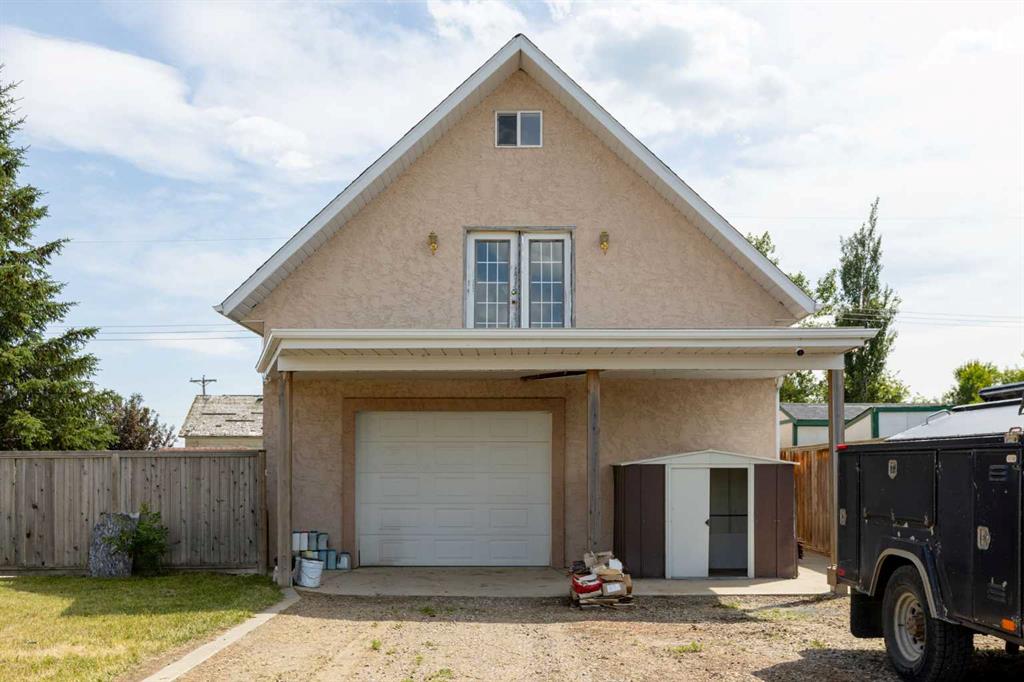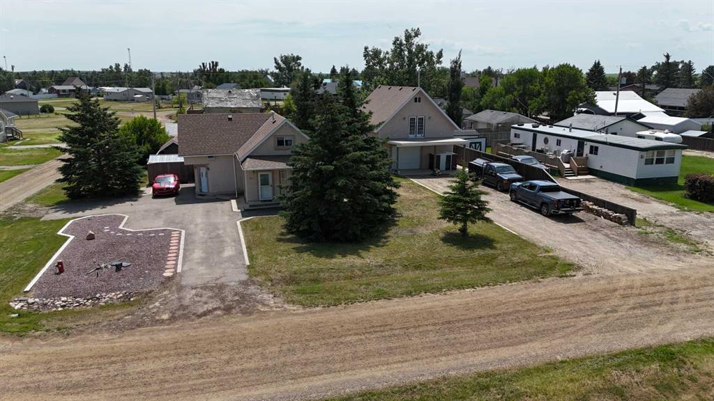 Charming 2-Storey Home with Massive Heated Garage on a Huge Corner Lot. Welcome to the Village of Champion, where this updated and move-in-ready two-storey home sits proudly on a generous 100' x 120' corner lot. With numerous recent upgrades and a warm, inviting feel throughout, this home is a true pleasure to view. The main level offers a cozy and functional layout featuring a welcoming living and dining area, a bright kitchen with ample cabinetry and included appliances, and two bedrooms that could also function as offices, games room, playroom. One of the bedrooms has a two piece ensuite, dual closets and the convenience of front and back entrances. This level also has a second 4-piece bathroom and a laundry room. Upstairs, you’ll find three comfortable bedrooms, including the primary bedroom with its own 3-piece ensuite and large walk-in closet. The lower level adds even more living space with a large additional bedroom, a relaxed family room ideal for movie nights or entertaining, and a utility room for extra storage and function. The home is kept comfortable year-round with central air conditioning. Flooring includes upgraded carpet and laminate, while double-pane windows and insulated interior walls offer both energy efficiency and soundproofing. One of the standout features is the incredible 26' x 40' heated detached garage, offering three full levels of flexible space. The main floor serves as a spacious workshop or hobby area with drive through capabilities with garage doors both front and back plus loads of built in cabinets and work benches, the second floor is a bright and airy games or studio room plus a workshop, and the third level provides ample storage—perfect for tools, seasonal items, or creative use. The yard is landscaped and fenced with two sheds and there is plenty of extra parking for vehicles or RV. Located just 20 kms south of Vulcan, Champion is a quiet rural community within easy reach of both Calgary, just one hour to the north, and Lethbridge, only one hour south. Nearby recreation includes Little Bow Provincial Park, Lake McGregor—well-known for fishing and water sports—and Twin Valley Reservoir. Offering space, versatility, and incredible value, this property is a unique opportunity to enjoy peaceful rural living with room to grow. A must-see! A new hot water tank has recently been installed.