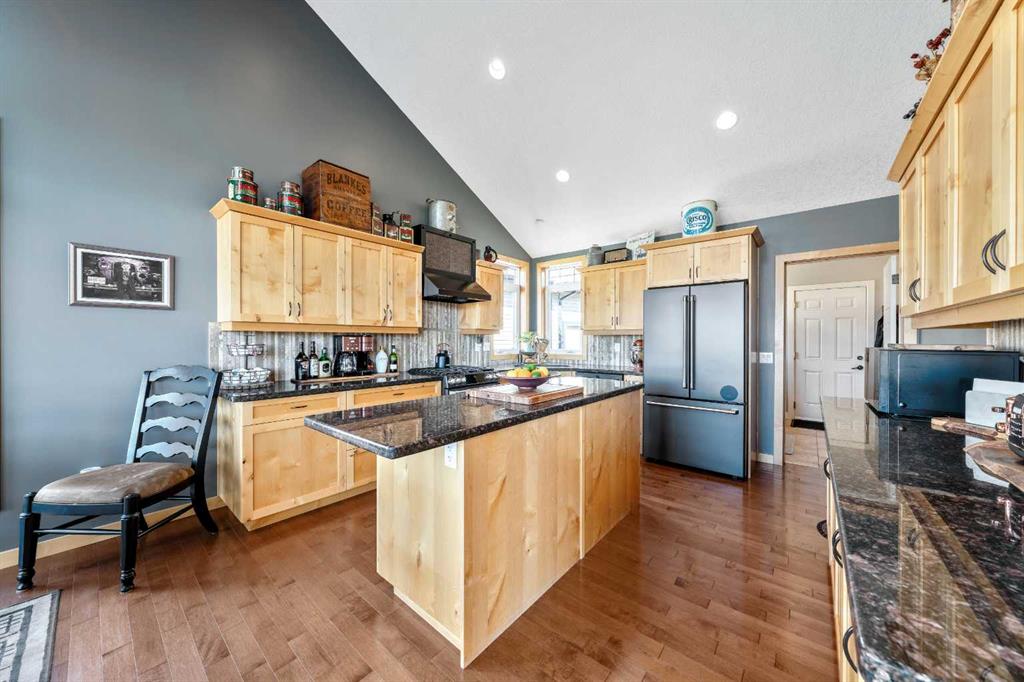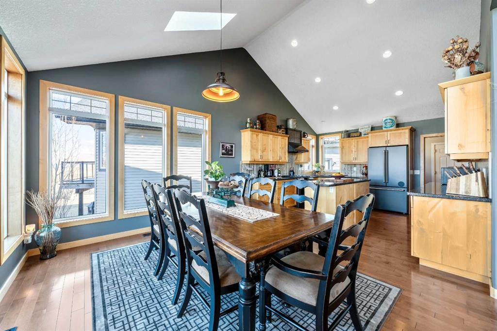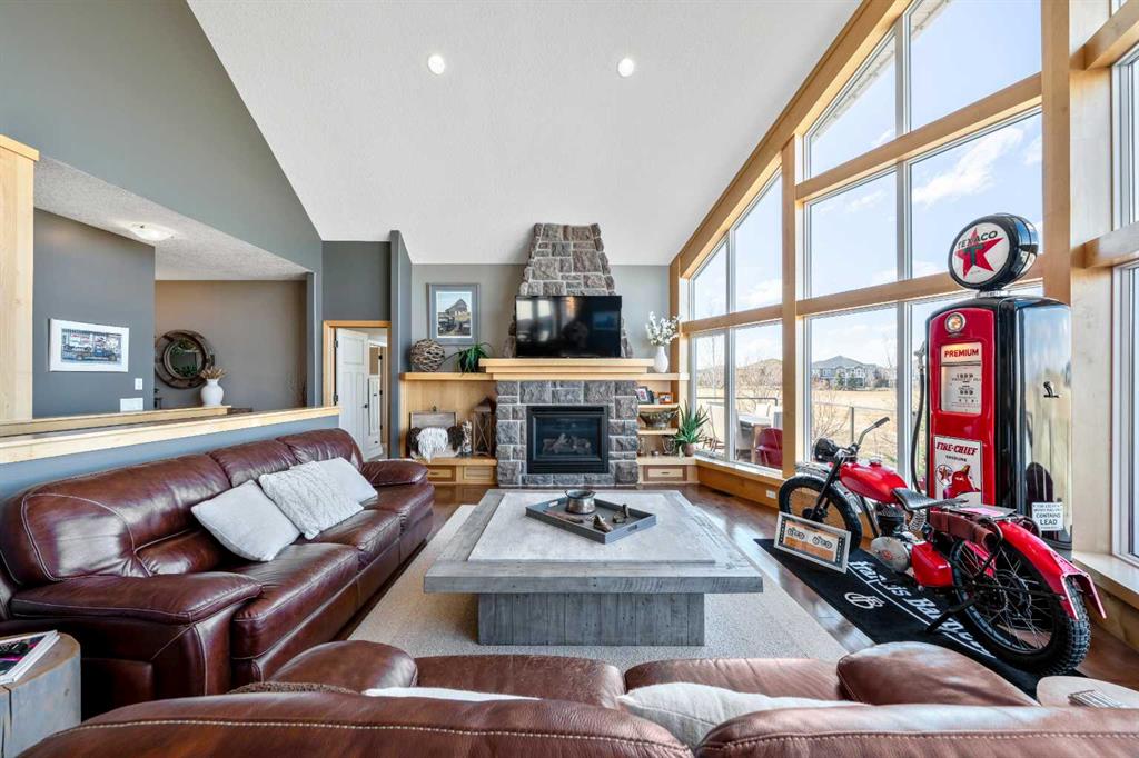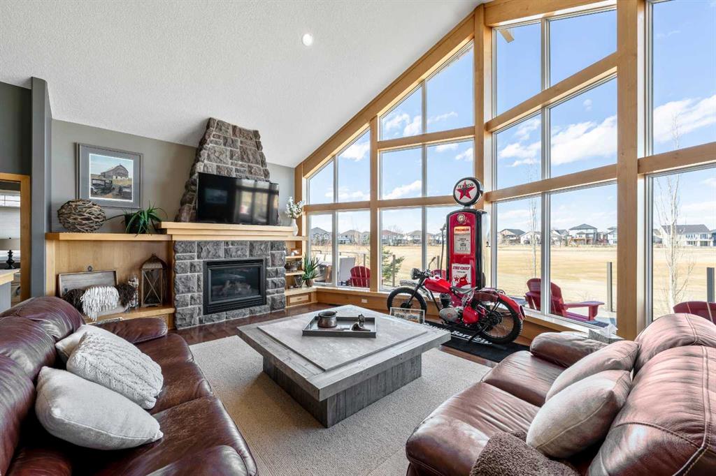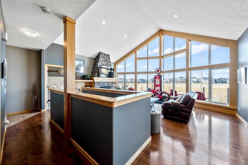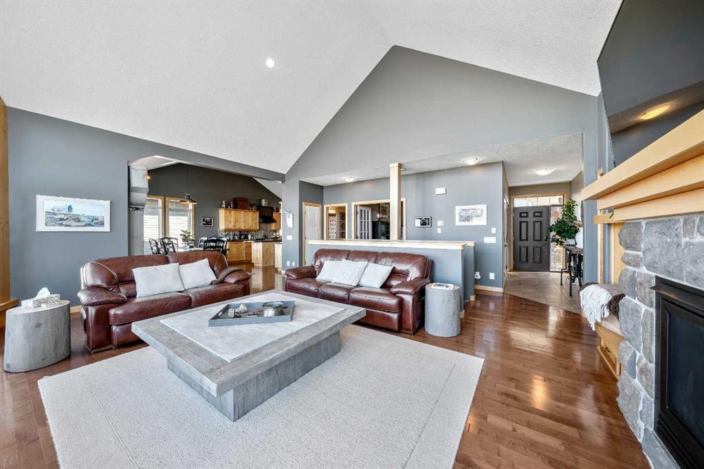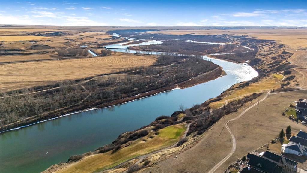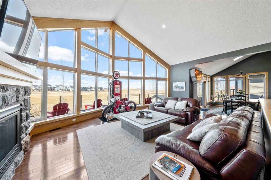 33 Wyndham Park Way Speargrass Golf Course Living! Backing the 10th fairway of the Speargrass Golf Course and just steps from the Bow River, this beautifully upgraded bungalow offers peaceful views, stunning sunsets, and over $200,000 in thoughtful upgrades... Welcome to this beautifully maintained bungalow located along the 10th fairway of the Speargrass Golf Course, offering peaceful views, stunning sunsets, and a relaxed lifestyle in one of Wheatland County’s most charming communities. Just steps from the Bow River, this home combines scenic surroundings with a bright and spacious interior designed for comfortable living. The main floor features an open-concept layout with soaring vaulted ceilings, skylights, and expansive windows that fill the home with natural light while capturing the surrounding golf course views. The impressive stone fireplace anchors the great room, creating a warm and inviting space for gathering. The kitchen is well appointed with granite countertops, a large island, and generous cabinetry, flowing seamlessly into the dining area with patio doors that open onto the upper deck—perfect for morning coffee or evening sunsets overlooking the fairway. The primary suite offers a private retreat with direct deck access and a spa-inspired 5-piece ensuite, while the main floor also includes a dedicated office with French doors, convenient laundry area, and mudroom access from the attached garage. The fully finished lower level walkout provides a spacious family and recreation room, two additional bedrooms, and a full bathroom—ideal for guests, family, or entertaining. Over the past several years, the sellers have invested over $200,000 in thoughtful upgrades enhancing both comfort and efficiency. Improvements include central air conditioning, a high-efficiency Napoleon furnace, HRV system, Culligan water softener upgrade, and a full CAFÉ appliance package. Additional highlights include Gemstone architectural exterior lighting, professionally finished garage with epoxy flooring and custom cabinetry, a Master Spa Twilight hot tub, stamped concrete patio, custom deck upgrade, irrigation system, new landscaping and sod, interior painting, bathroom updates, new carpeting, and a brand s hingles will be completed in June. The landscaped yard provides beautiful curb appeal and multiple outdoor spaces to relax and enjoy the peaceful golf course setting. Speargrass offers a quiet community atmosphere with golf, river access, walking paths, and RV parking, all within an easy commute to Calgary, Strathmore, and Okotoks. This is a rare opportunity to enjoy golf course living with river access in a beautifully upgraded home.