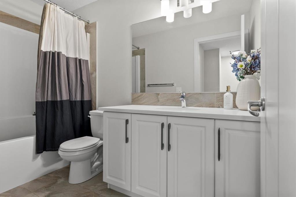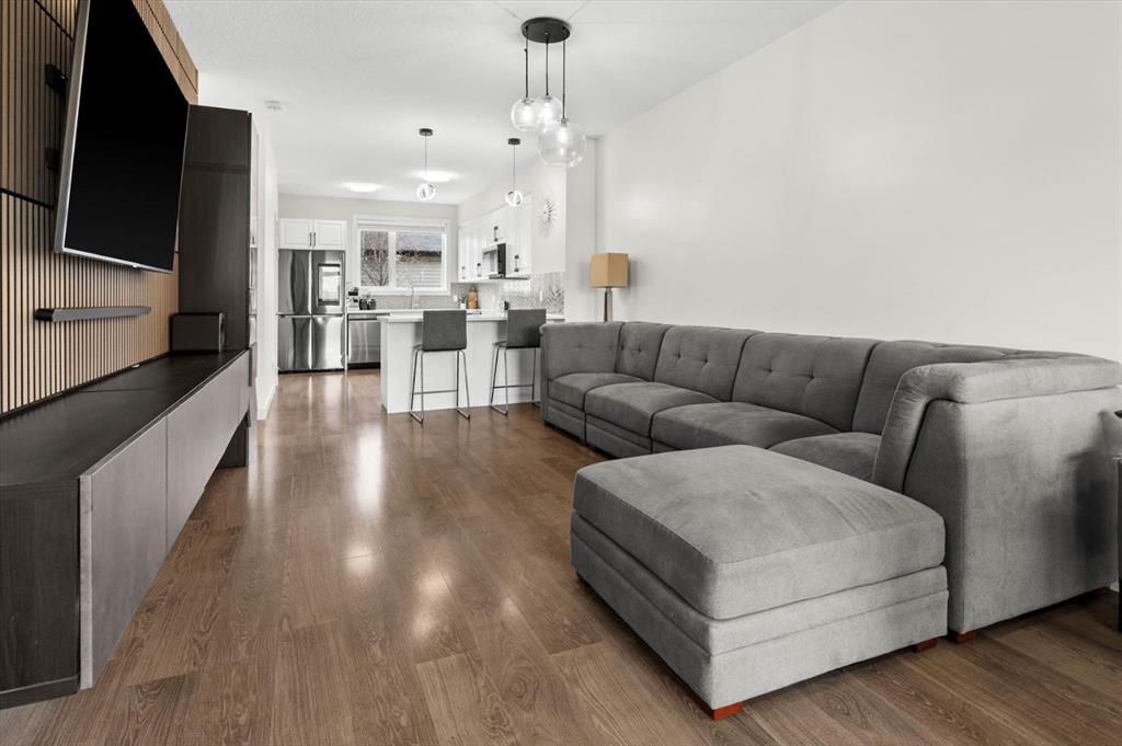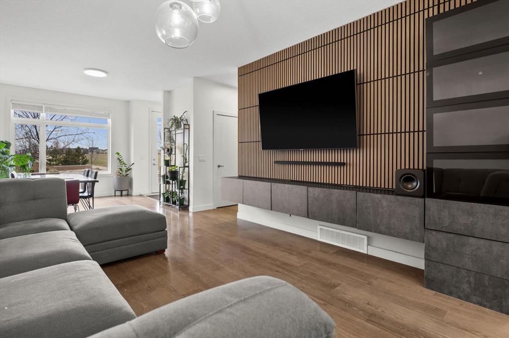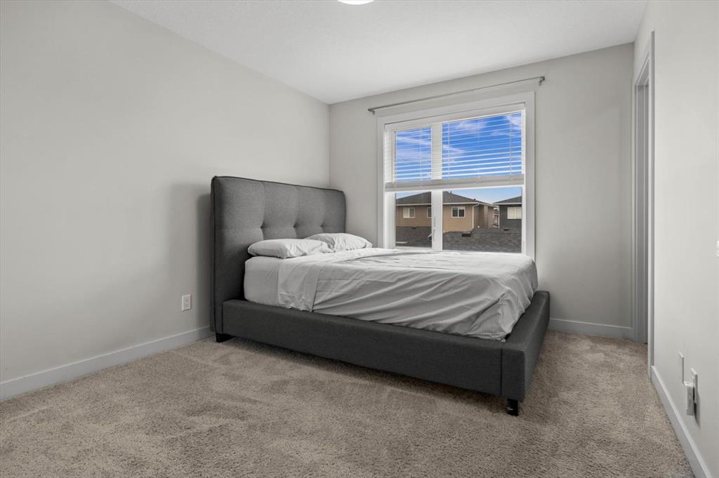 Are you looking to get into the market but shudder at being part of a condo corporation? What about into a newer townhome with air conditioning, a fenced yard and detached garage? Set across from a current green space that will eventually be a K-6 school, this is a wonderful home for a young family or if you plan on that in your future. Built by Streetside Developments and walkable to grab dinner at Cal City Pizza or Punjabi Chulha, this location is transit friendly and has easy access to both Stoney Trail and Metis Trail. Stepping inside the home to a tiled foyer with closet, this feels more like an inner-city infill instead of a townhome, thanks to 9’ ceilings, the large footprint and the kitchen being set back overlooking the yard. The front dining room is where you’ll share many laughs and memories, and the bright windows face west – allowing your plants to flourish. The center living room can fit an impressive sized sectional and is set across from a built-in media center, complete with storage cabinets and drawers, plus a statement panelled wall. The bright kitchen offers white quartz counters, grey chevron backsplash and a new upgraded smart appliance package with display fridge! The sink overlooks the back yard and is set across from the pantry and rear mudroom. This level completes with a powder room and access to the fenced yard and detached garage. Upstairs, plenty of room including an owner’s suite with walk in closet and a 4-piece ensuite! You will also find a large center bonus room, laundry and a second bedroom with a 4 piece bathroom set right next to it – so it feels like a dual primary. The lower level has high ceilings and awaits your development ideas. This home also provides new window coverings, replaced roof and siding – all while being at an affordable price. Contact your trusted agent to book a showing before She Gon’!