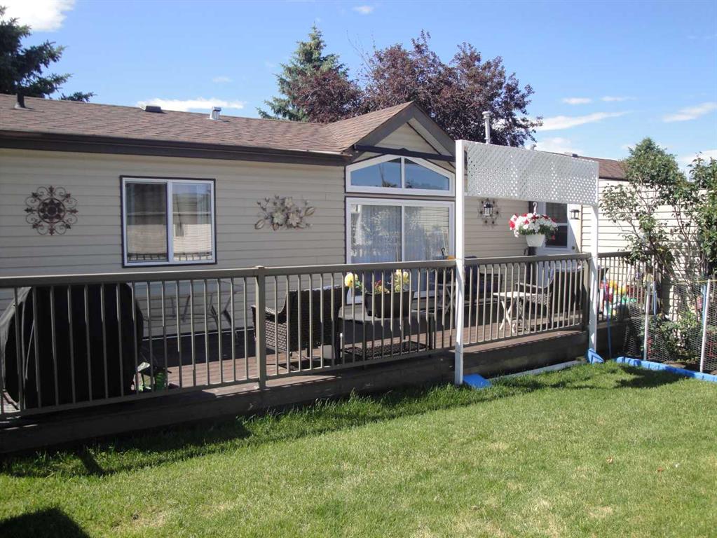 Welcome to this beautifully maintained 1216 sq ft mobile home, nestled in a vibrant 55+ community. Designed for comfort and ease, this home features three generously sized bedrooms and two full bathrooms, including a serene 4-piece ensuite. The open-concept layout with stylish laminate flooring offers a fresh, modern feel, while central air conditioning keeps things comfortable year-round. The kitchen is equipped with a newer stove and dishwasher, making meal prep and cleanup a breeze. A spacious enclosed carport with extra storage and an oversized deck provides the perfect space for enjoying sunny afternoons or hosting gatherings. Additional highlights include abundant natural light throughout and a handy storage shed. Located just minutes from shopping and essential amenities, this low-maintenance home is a wonderful opportunity to downsize without compromise. Buyer must be approved by Parkbridge Estates management.