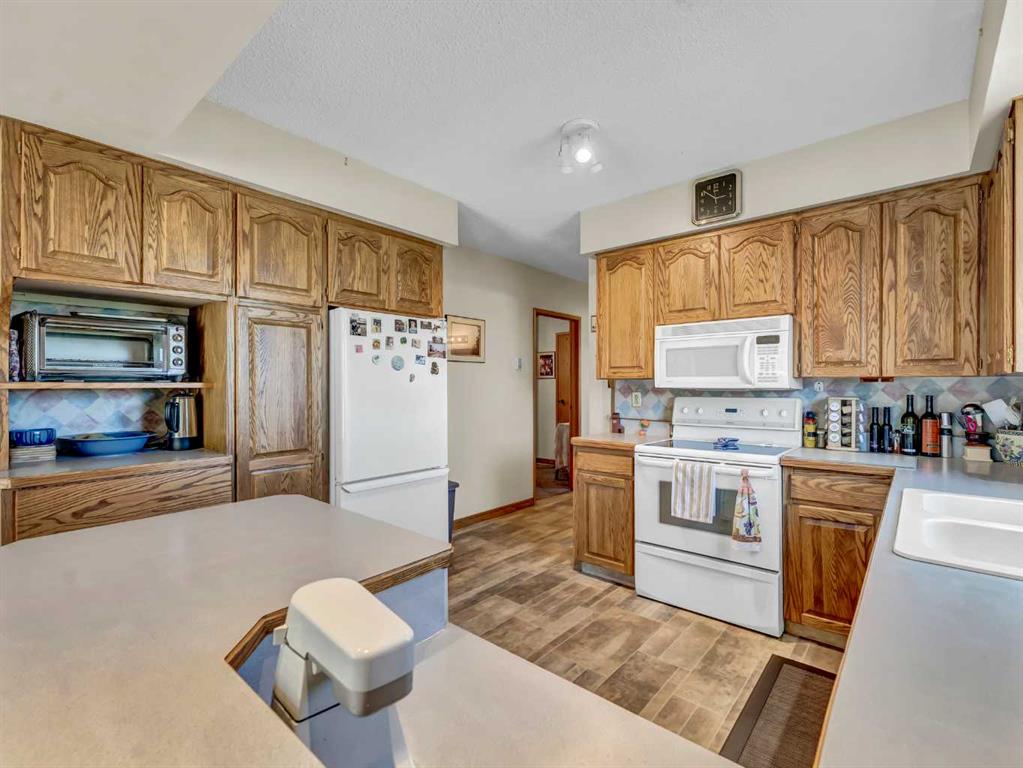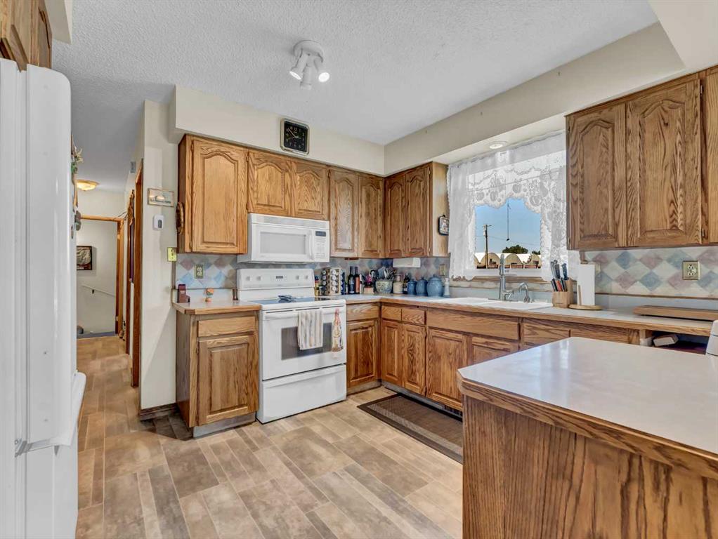 Welcome to this fantastic 1,097 sq ft bungalow that combines comfort, space, and functionality in a well-maintained package. Bright and inviting throughout, the heart of the home is the beautiful kitchen featuring warm oak cabinetry and ample counter space. The open dining area leads directly to the back deck through patio doors—perfect for entertaining or enjoying your morning coffee. The living room is filled with natural light. A large primary bedroom offers a walk-in closet and a 3-piece ensuite. A second bedroom or home office provides flexibility for guests or remote work. Convenient main floor laundry adds to the everyday ease. The partially finished basement expands your living space with two additional bedrooms, a family room, and a dedicated hobby area. A generous mudroom connects the home to the attached single garage for added functionality. But that’s not all—this property also includes a massive 23' x 26' attached shop/garage with tall ceilings, ideal for storage, hobbies, or your dream workshop. Don’t miss your chance to own this unique and versatile home—book your showing today!