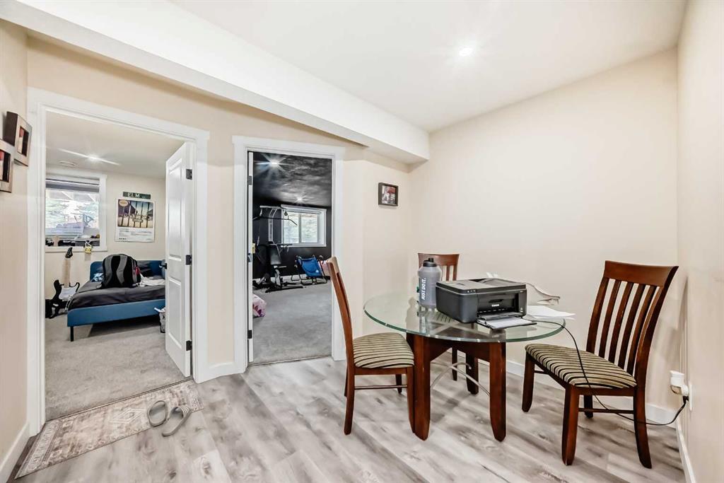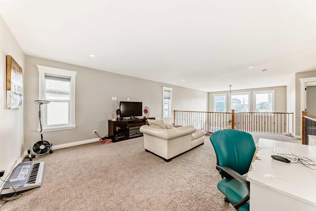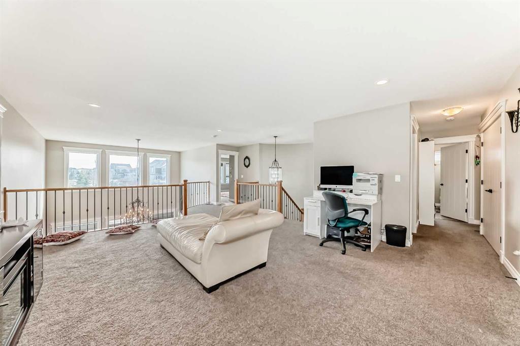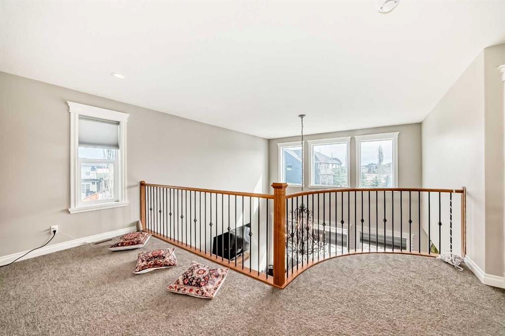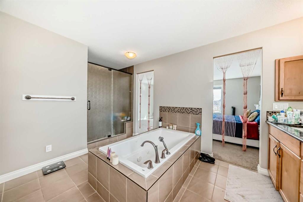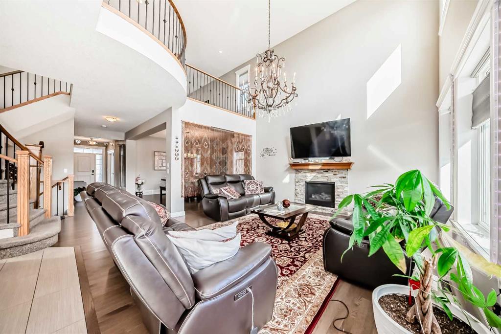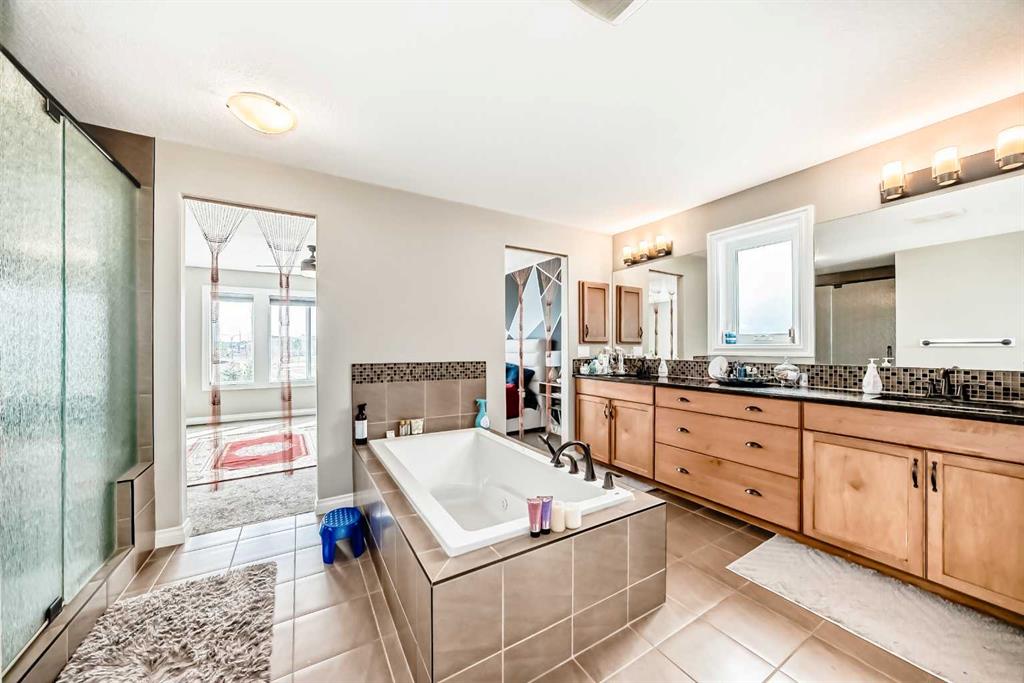 Welcome to the desirable community of Mahogany. The Lake community of Mahogany offers its residents lake access, a beach club, sprinkler park, playgrounds, schools and shopping all within the community boundary. Ideal for families looking to enjoy every day, there are activities year-round to keep everyone engaged. This beautiful estate home features 7 Bedroom 5.5 Bathrooms with an open floor plan and high ceilings with large windows, fenced yard, double-attached garage and a walk-up basement on Cul de sac lot. The main floor is having Bedroom with an attached Bathroom and is full of natural light from expansive south-facing windows. The open-concept main floor seamlessly connects the dining room, living room, and kitchen—perfect for entertaining or keeping an eye on the family. The spacious dining area comfortably seats eight people and flows into the impressive two-story living room, highlighted by a statement chandelier and cozy gas fireplace. The bright, modern kitchen features elegant white granite countertops, a large island with bar seating, an undermount sink, and a full stainless-steel appliance package—including a gas cooktop, hood fan, built-in oven, microwave, and oversized refrigerator. Full-height cabinetry and a corner pantry provide ample storage for all your culinary needs. Up the stunning semi-spiral staircase, a generous bonus room overlooks the main living space below, offering the perfect retreat for relaxation or entertainment. The thoughtfully designed split floor plan ensures privacy in the primary suite, which overlooks the rear pathway and includes a walk-in closet and a luxurious 5-piece ensuite complete with a jetted tub, standalone shower, dual vanity, and private water closet. Three additional bright bedrooms—each with its own walk-in closet—share a well-appointed 5-piece bathroom with dual vanities and a wall-mounted mirror. The upper-level laundry room and large linen closet add everyday convenience. The basement is (illegal development) with a 2 Bedroom living room, Kitchen and theatre room. The attached double garage is insulated and drywalled, plumbed for a gas heater, and includes a man door for easy side access—offering both comfort and functionality year-round.