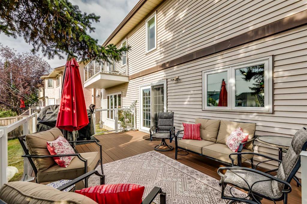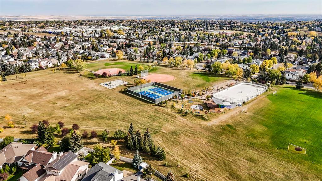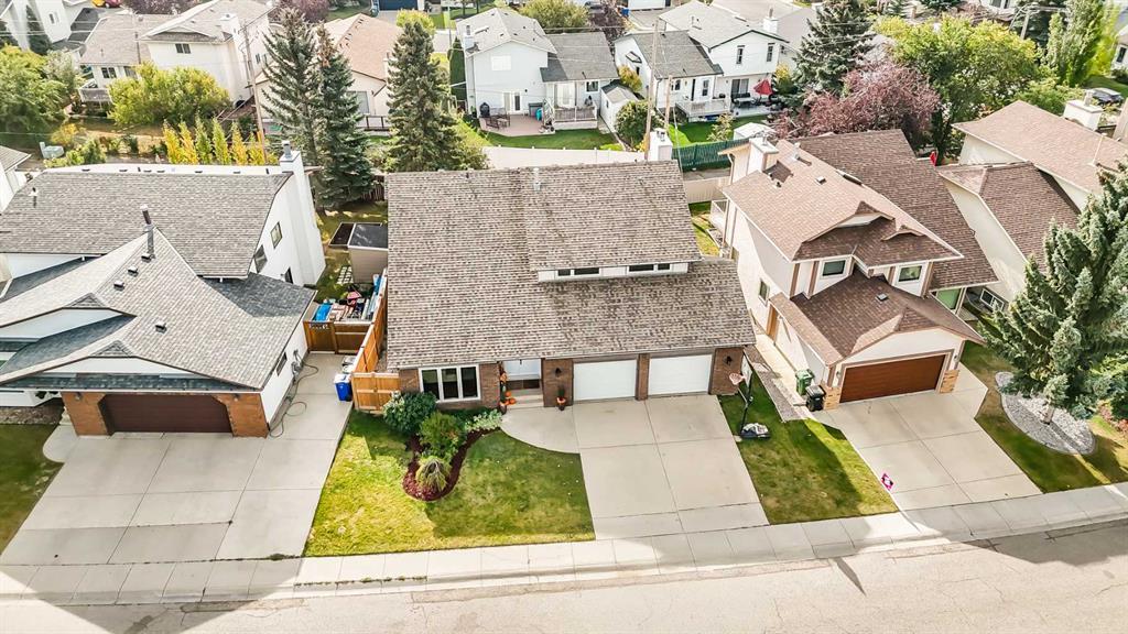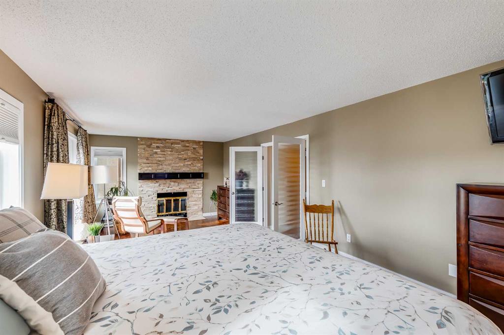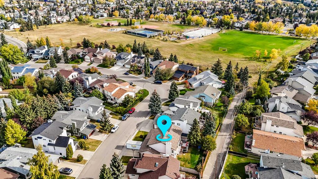 Nestled in the desirable community of Hawkwood, this elegant two-storey home offers over 3,600 square feet of developed living space designed for both family living and entertaining. With four bedrooms, three and a half bathrooms, an oversized double attached heated garage, and a fully finished basement, it combines thoughtful design with everyday comfort. A grand double-door entryway leads into the main floor, where rich hardwood flooring and a striking vaulted ceiling set the tone. The living room is filled with natural light and flows seamlessly into a formal dining area, perfect for hosting gatherings. The open-concept kitchen, dining, and family room form the heart of the home. The kitchen is a timeless space with cream cabinetry, granite countertops, stainless steel appliances including a gas range, abundant counter and cupboard space, and a coffee bar with a bar fridge. A casual dining nook with sliding doors extends out to the patio, while the family room is anchored by a cozy wood burning fireplace and custom built-ins. Completing the main level are a convenient powder room, a mudroom off the garage, and a laundry room with sink. Upstairs, double doors open to an expansive primary retreat. This private space offers a wood burning fireplace and sitting area, a balcony with glass panels, and a luxurious five-piece ensuite featuring dual sinks, a soaker tub, and a glass-enclosed steam shower for two with bench seating, rain showerhead, Bluetooth speakers, and Wi-Fi. In-floor heating and a custom walk-in closet with cabinetry, including a watch and jewelry drawer, add to the sense of refinement. Two additional bedrooms, a four-piece bathroom, and a versatile loft bonus area complete the upper floor. The basement offers 10-foot ceilings and impressive flexibility. A massive recreation room provides ample space for a home theatre, gym, or games area. An additional bedroom and three-piece bathroom make it ideal for guests, while generous storage areas keep everything organized. Step outside to a backyard designed for both relaxation and play. A large composite deck with a gas line for BBQs overlooks a spacious lawn, while two storage sheds, a fenced-in dog run, a newly built back fence, and a paved pathway behind the property, providing direct access to Hawkwood field and extra space from the rear neighbours, add convenience. This home is equipped with air conditioning to keep summer nights comfortable and has seen thoughtful updates over the years, including replacement of the roof and windows. Living in Hawkwood means enjoying community amenities just steps away, including a playground, outdoor rink, tennis & pickleball courts, soccer fields & baseball diamonds. Families will appreciate proximity to Hawkwood and St. Maria Goretti Schools. Everyday essentials are within minutes including Crowfoot Crossing, the Melcor YMCA, and the public library. Quick access to John Laurie Blvd, Sarcee Trail, and downtown in just 15 minutes, with transit options nearby.
