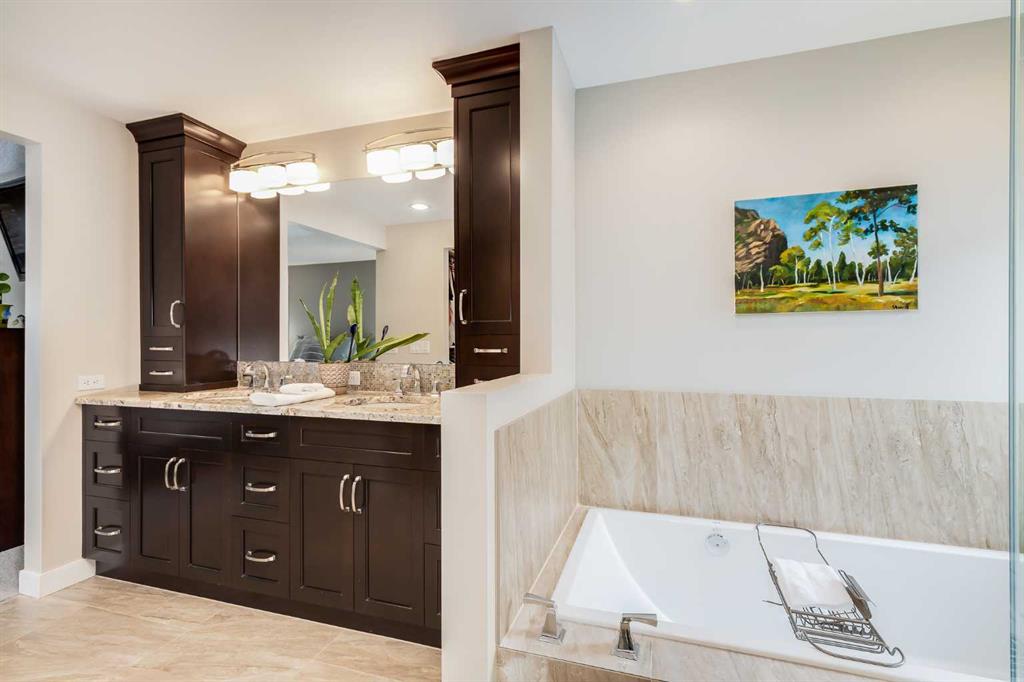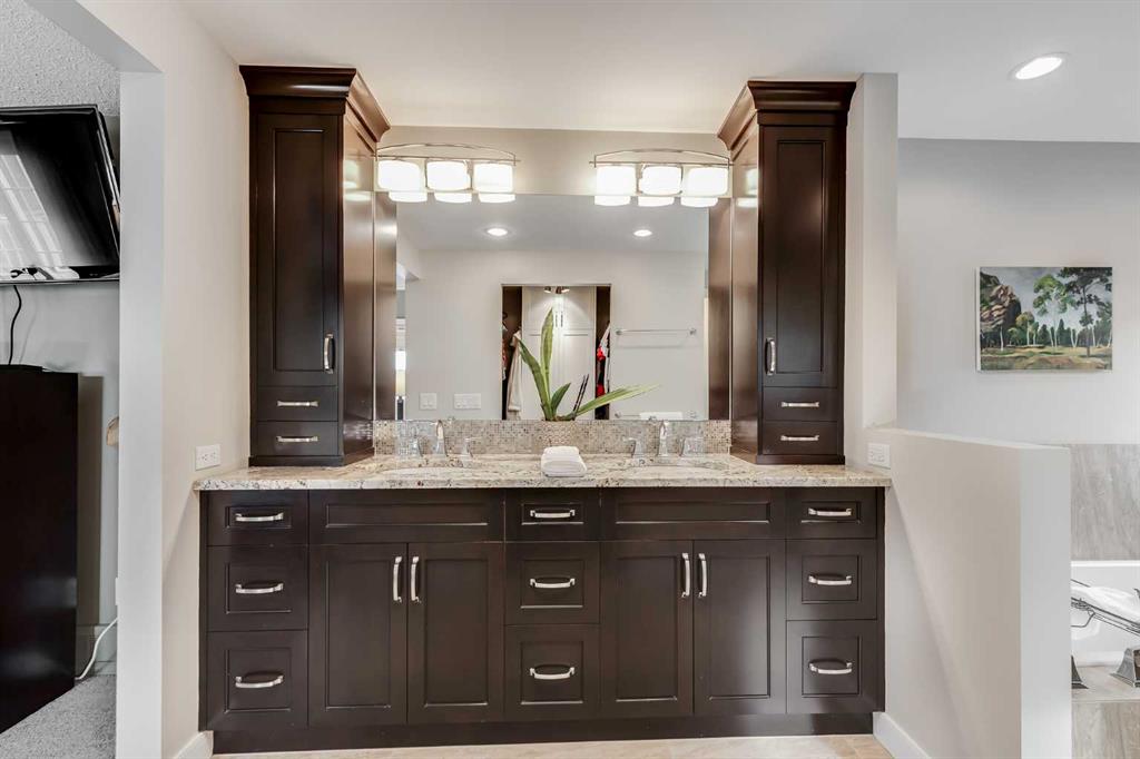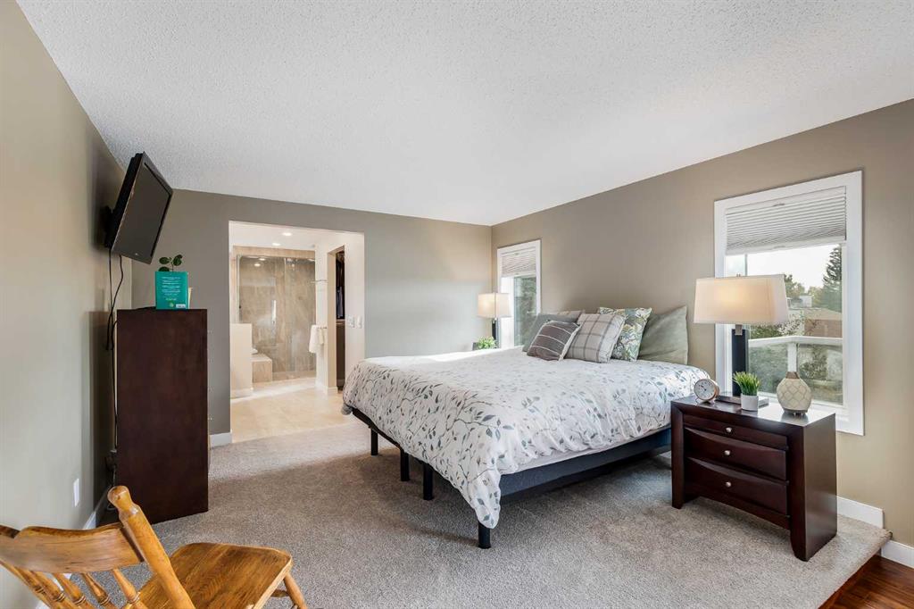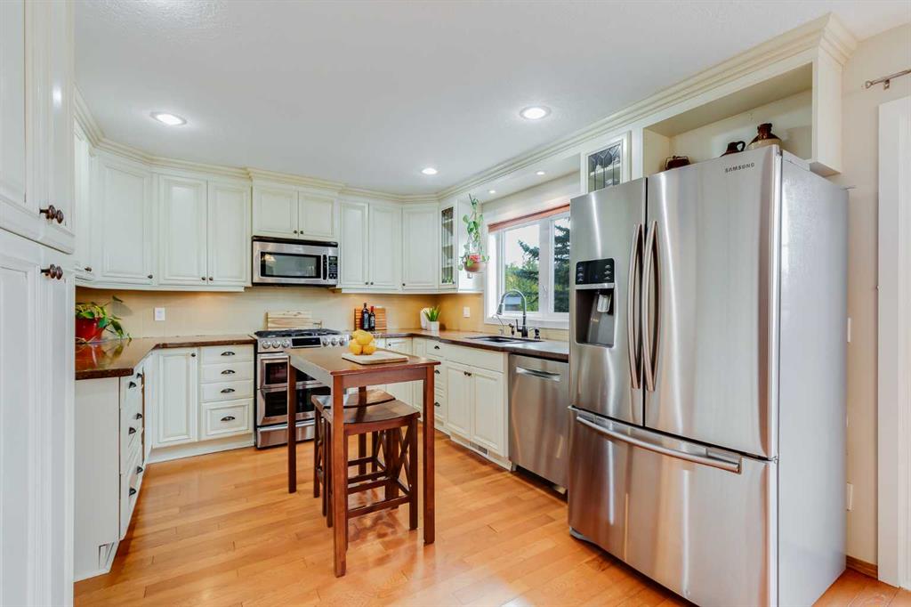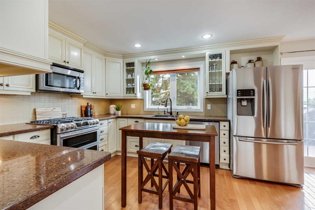 Nestled in the desirable community of Hawkwood, this elegant two-storey home offers over 3,600 square feet of developed living space designed for both family living and entertaining. With four bedrooms, three and a half bathrooms, an oversized double attached heated garage, and a fully finished basement, it combines thoughtful design with everyday comfort. A grand double-door entryway leads into the main floor, where rich hardwood flooring and a striking vaulted ceiling set the tone. The living room is filled with natural light and flows seamlessly into a formal dining area, perfect for hosting gatherings. The open-concept kitchen, dining, and family room form the heart of the home. The kitchen is a timeless space with cream cabinetry, granite countertops, stainless steel appliances including a gas range, abundant counter and cupboard space, and a coffee bar with a bar fridge. A casual dining nook with sliding doors extends out to the patio, while the family room is anchored by a cozy wood burning fireplace and custom built-ins. Completing the main level are a convenient powder room, a mudroom off the garage, and a laundry room with sink. Upstairs, double doors open to an expansive primary retreat. This private space offers a wood burning fireplace and sitting area, a balcony with glass panels, and a luxurious five-piece ensuite featuring dual sinks, a soaker tub, and a glass-enclosed steam shower for two with bench seating, rain showerhead, Bluetooth speakers, and Wi-Fi. In-floor heating and a custom walk-in closet with cabinetry, including a watch and jewelry drawer, add to the sense of refinement. Two additional bedrooms, a four-piece bathroom, and a versatile loft bonus area complete the upper floor. The basement offers 10-foot ceilings and impressive flexibility. A massive recreation room provides ample space for a home theatre, gym, or games area. An additional bedroom and three-piece bathroom make it ideal for guests, while generous storage areas keep everything organized. Step outside to a backyard designed for both relaxation and play. A large composite deck with a gas line for BBQs overlooks a spacious lawn, while two storage sheds, a fenced-in dog run, a newly built back fence, and a paved pathway behind the property, providing direct access to Hawkwood field and extra space from the rear neighbours, add convenience. This home is equipped with air conditioning to keep summer nights comfortable and has seen thoughtful updates over the years, including replacement of the roof and windows. Living in Hawkwood means enjoying community amenities just steps away, including a playground, outdoor rink, tennis & pickleball courts, soccer fields & baseball diamonds. Families will appreciate proximity to Hawkwood and St. Maria Goretti Schools. Everyday essentials are within minutes including Crowfoot Crossing, the Melcor YMCA, and the public library. Quick access to John Laurie Blvd, Sarcee Trail, and downtown in just 15 minutes, with transit options nearby.