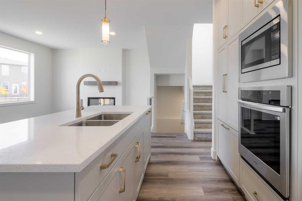 Welcome to the Westhill by Stranville Living Master Builder, an award-winning two-storey home model located in the dynamic west Lethbridge community of Copperwood. At just under 1,800 square feet of developed area, this 3 bedroom, 2.5 bath home is terrifically finished in selections made by the builder's skilled interior design team. The main floor includes a beautifully appointed kitchen in an upgraded MDF finish by Adora Cabinets, fully tiled backsplash, and quartz countertops for both the base cabinets and island with extended eating bar. Stranville Living's top tier appliance package includes a seamlessly integrated paneled Fisher & Paykel fridge, paneled dishwasher, induction cooktop, built-in hood fan, and a stainless steel wall oven and microwave combo unit. A sleek built-in electric fireplace with wood mantle accents the main floor living room. An 8' sliding glass door exits onto the future deck sitting adjacent to a massive rear window with views of the large rear yard. Upstairs, a large primary bedroom includes a tasteful double sink vanity and a sizeable tiled shower with glass door. Two more ample bedrooms, a 4-piece bathroom, and laundry closet also grace this upper level, but it is the 163 square foot media room that makes it complete. Don't forget about the high efficient mechanical equipment, Low E windows, and spray foam in the rim joists that help keep your heating and cooling costs in check. All the beautiful finishes of the home aside, it is the incredible size of the lot that sets this home apart from every other home on the street. Come by and see what I mean, you'll be happy you did. Pictures contain virtual staging. There's nothing like NEW!