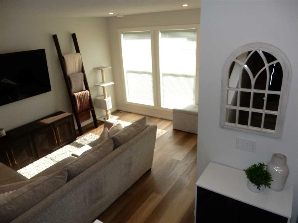 Reside in the heart of Riverstone in an exceptional 3 level home nestled in the river valley! Here you are minutes to nature with breathtaking Fish Creek Park, bike/walking paths, picnics along the Bow River and the best fishing in Calgary! This fully air conditioned home is in immaculate condition & it shows 10/10 on every crafted level! This modern open concept design features an abundance of natural light thru-out w/an eye pleasing neutral colour palate. Steps from the front door, you are welcomed by a Great Room that flows seamlessly into the dining area then finally crests into the Kitchen where the Chef can create some culinary delights! The modern appliances, full cabinetry, pantry, & sizeable quartz Island will accommodate a healthy guest list. Steps leading down from the kitchen, you will find a low maintenance yard for your BBQ/kids/pets/Inlaws? Completing the main floor is also a nice 2pc bath, under stair storage, & a storage nook. One level up.... A substantial master retreat awaits you! Showcasing large windows, his/her closets, 3pc ensuite ,& plenty of room for a King Size bed and other pieces. Down the hallway you will encounter the 2nd bedroom, good and bright, big closet, and a most a generous size as well. Another 4pc bath with soaker tub, linen closet and upper level laundry finish out the 2nd level.... But wait!! There's more!! On Level 3 you can create your own flex room !! Office/media/bar/playroom/exercise/yoga/massage/gym??? Also, the great reveal ...........A top tier outdoor balcony with seating for your company to enjoy a portable firepit and a glass of vino!! Relax and let your mind wander. Residents of Riverstone through the HOA also have access to Century Hall. Just minutes away you will find skating, Tennis courts, a gym for shooting hoops, and a fantastic water/splash park for the kiddos! What are you waiting for?? Live in the lifestyle that combines nature, and community all in one. Access to Stoney, Deerfoot, Schools, shopping, transit, South Health Campus, restaurants, and more. Have a look see!, You wont be disappointed. I almost forgot....Parking stall in front of home, off street parking available and guest parking as well. *** Pets ok on approval ***