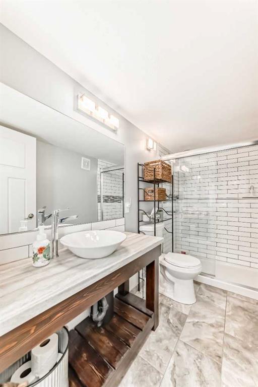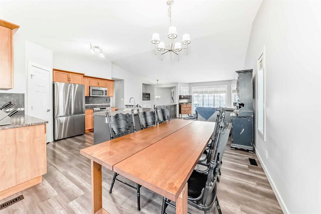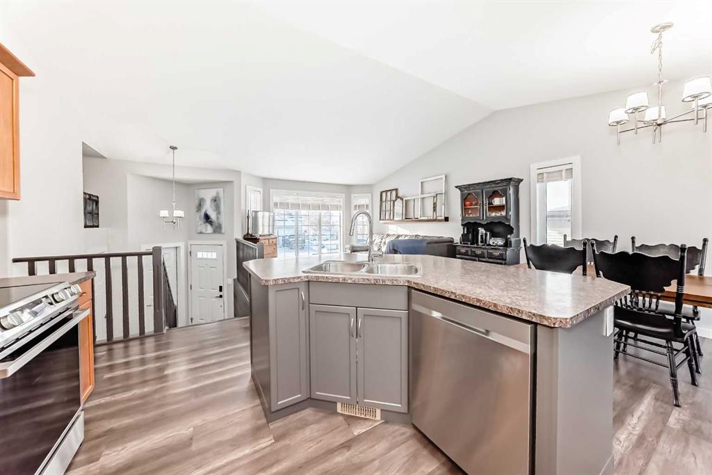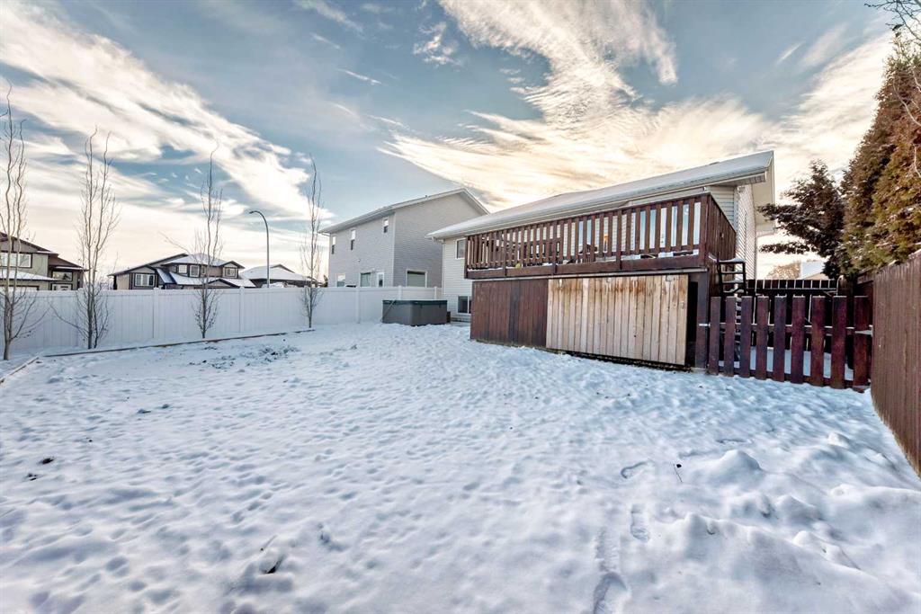 This five-bedroom three three-bathroom home has a layout that works well for a busy family. The main floor has a comfortable primary bedroom with a four-piece ensuite and a walk-in closet, with the laundry room close by for easy day-to-day living. Two more bedrooms sit a few steps up over the front attached garage, along with a full bathroom they can share. The main living area has an open floor plan with vaulted ceilings that keep the space bright and welcoming. Vinyl Plank covers the kitchen, dining area, living room, and halls, with tile in the foyer, laundry, and all bathrooms. Out back, the north-facing deck looks over a good-sized yard with alley access. The hot tub stays and is fully operational, which is a great bonus for relaxing at the end of the day. The neighbourhood is family-friendly and close to the school and the Penhold Multiplex. The basement is fully developed with plenty of natural light. It has rough-in floor heating and an oversized hot water tank already set up for the in-floor connection. This level gives you extra living space for kids, guests, or hobbies.