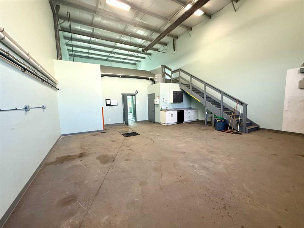 TURN-KEY Industrial shop/OFFICE FOR SALE OR LEASE. HIGH-END GLASS WALLS for the 3 Developed offices/ custom built-in reception space with customer 1/2 bath at the back, unfinished MEZZANINE, followed by a 24'9"'x 27'03" shop space. Completed with LED lighting, floor drain a 14' OHD with opener, ceiling height approximately 19' clear, 200 AMP Power, paved common areas w/ loads of paved customer parking. Great exposure off of 76 street for a mechanic shop, auto repair/ detailing, mechanical shop and so much more in this I1 zoned condo bay. NNN Costs are $5.79/PSF (Condo fees are $401.91/month, Taxes of $408.25/month condo fees include water/ sewer/ landscaping/ snow removal & reserve fund contributions.) Lease or own/ RENT-TO-OWN, the possibilities are endless,