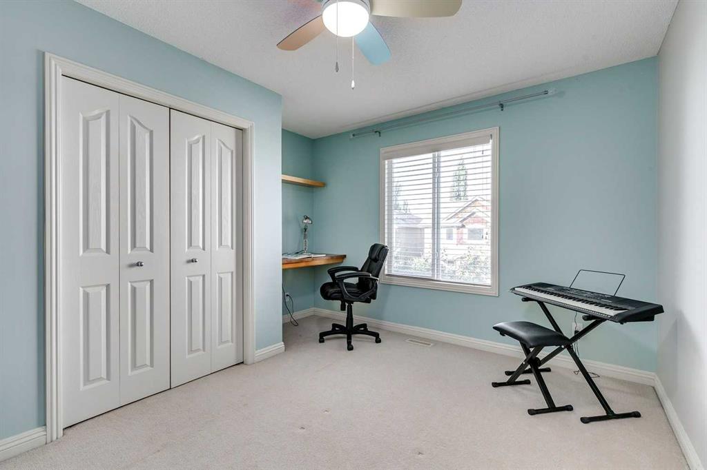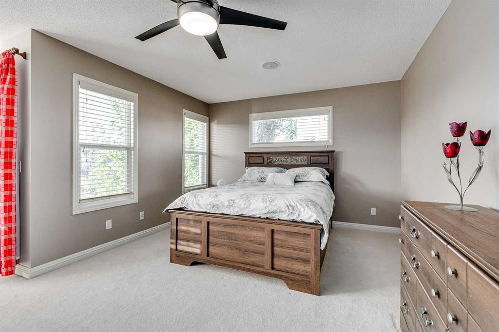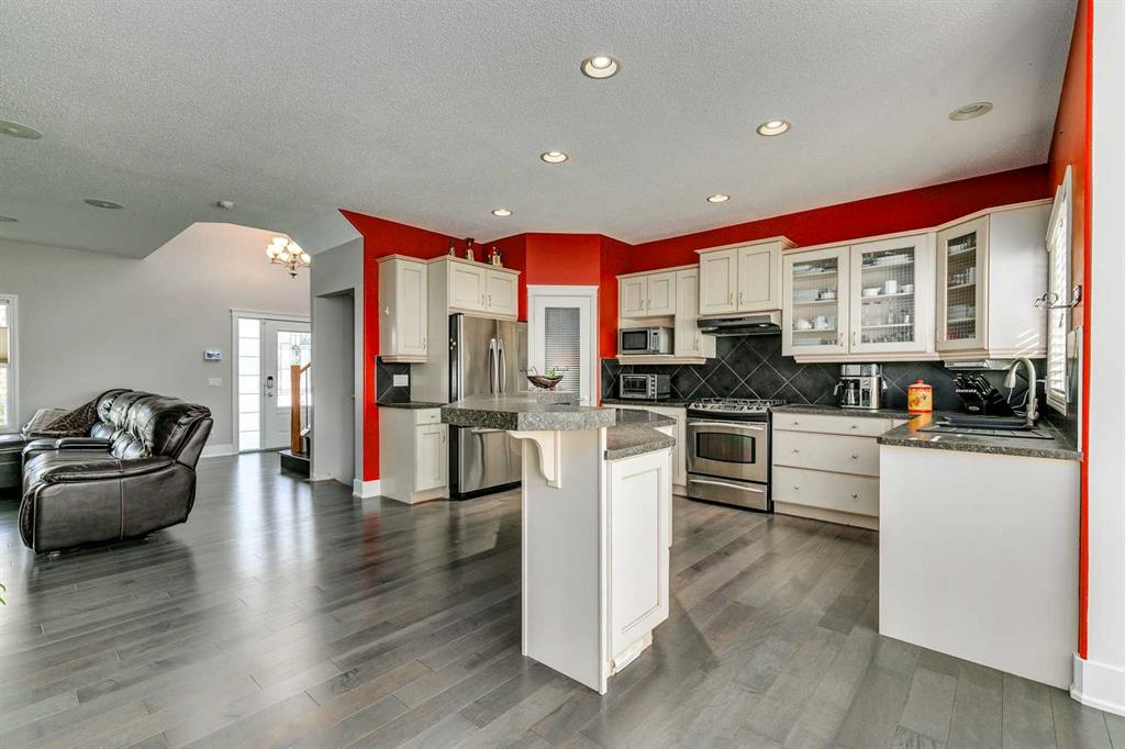 PREMIUM LOCATION, PREMIUM CONDITION. Probably one of the nicest homes in Prestwick!! Corner lot surrounded by fruit trees in a key hole with a south and west rear yard just doors from a playground/park. Front (30 Ft X 6 Ft) porch, rear (12 Ft X 12 Ft) composite deck, paved RV parking and an oversized heated detached garage with a paved lane way. Beautiful landscaping, screen covered gutters, and quality fencing complete the exterior of this exceptional home. The interior of this beautiful 2 St features new top quality laminate flooring on the main floor and stairs. The living room features a fireplace with new facing and built ins. Good sized kitchen with a center island and a large eating area surrounded by windows for natural light. Main floor two piece bath and separate laundry area with new fixtures and new tile floors all make for comfortable living. Three bedrooms up with the primary having a retreat area for that private time and a five piece ensuite. Two other good sized bedrooms and a full 4 piece bath complete the second floor. The interior has a built in speaker/sound system with extensions to the outside rear deck. Nothing to do here but move in.