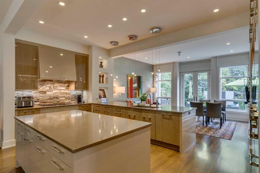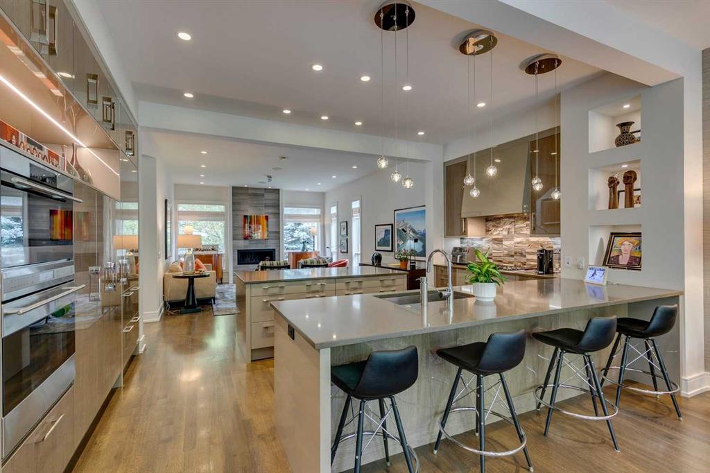 **Open House Sunday October 5 from 2:30 - 4pm** Welcome to this exquisitely crafted home, perfectly positioned on an oversized lot in the heart of Elbow Park, one of Calgary’s most established and desirable communities. Built by Empire Custom Homes, this residence offers over 3454.81 square feet of timeless design, thoughtful functionality + understated elegance. From the moment you step inside, the home reveals its careful attention to detail. A gracious front entry sets the tone, while a beautiful dining room just off to the left offers a refined space for gatherings. Beyond, the open-concept layout unfolds with a lovely formal living room anchored by a gas fireplace, creating a warm and inviting retreat for Calgary’s winters. At the heart of the home lies a chef’s kitchen designed for both beauty + performance, featuring Wolf, Sub-Zero + Asko appliances, abundant cabinetry, a generous island + a breakfast bar. This central gathering space flows effortlessly into the adjoining family room, ideal for relaxed evenings or casual entertaining. The tucked away wine-bar + a well-planned mudroom with access to the private yard and oversized double garage complete the main floor, blending everyday convenience with elegant design. A striking open staircase invites you upstairs, with the large floor-to-ceiling windows flooding the home with natural light. The upper level boasts a tranquil primary suite with an expansive walk-in closet + spa-inspired ensuite. Three additional bedrooms, each with their own ensuite, provide rare comfort + privacy for family or guests. A wide central hall enhances the sense of openness + leads to a private balcony to complete the upper level. The theme of refined living is continued on the lower level with a a spacious media room + highly functional wet bar, flexible space for a gym or playroom, a fifth bedroom + a full bathroom. Outdoors, mature landscaping frames a private patio complete with a fireplace, a perfectly designed space for year-round entertaining + quiet evenings alike. The additional green space offers room for family gatherings, children at play + moments of serenity. The combination of scale, craftsmanship + location make this Elbow Park residence a truly rare opportunity. From its proximity to top-rated schools, community parks + the Glencoe Club, to nearby river pathways, vibrant shopping + dining districts, this is a home that captures the very best of inner-city living.