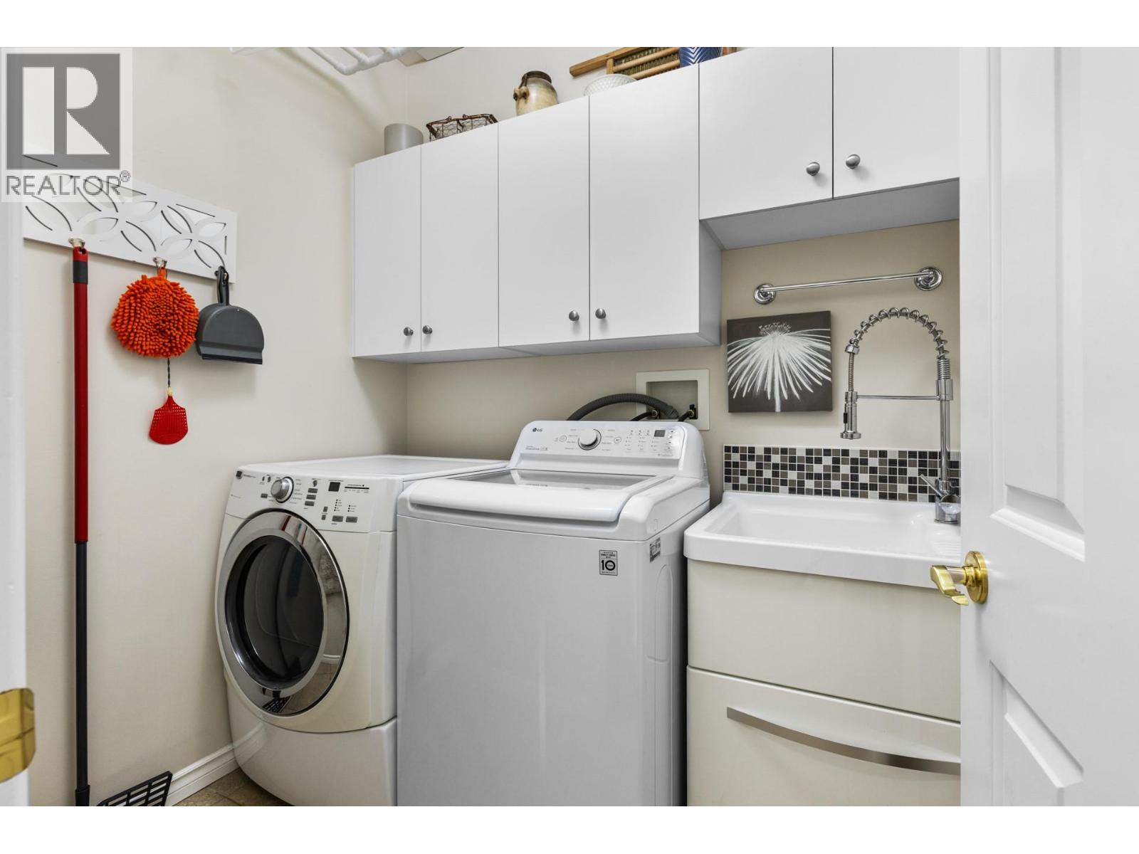 Beautiful Walkout Rancher in the Gallaghers Canyon Golf Community. From the moment you step inside, you’ll be captivated by the grand interior, featuring gleaming hardwood floors, soaring ceilings and large picture windows. The updated kitchen boasts stylish two-tone cabinetry, stainless steel appliances, a functional layout and a striking 3-sided gas fireplace. The living room is a sophisticated retreat, perfect for unwinding after a round of golf or hosting friends and family. The primary suite is complete with a spa-inspired ensuite, a massive walk-in tiled shower, and a generous walk-in closet. Also on the main level is a bright second bedroom and a convenient laundry room. Downstairs, the fully finished walkout lower level offers suite potential with a separate entrance, two additional bedrooms, a den/media room, a spacious family room, and a summer kitchen—ideal for guests or extended family. The outdoor living space is nothing short of spectacular. At the front, a large courtyard sets the tone for relaxed mornings & evening gatherings, while a tranquil water feature with a stream and pond adds to the peaceful ambiance. The backyard offers a lush greenspace, covered patio, and ample room to enjoy Okanagan’s beautiful seasons. Additional upgrades include a new exposed aggregate driveway, new asphalt roof, and a recently replaced hot water tank. Enjoy top-tier amenities including an indoor pool, whirlpool, fitness center, sports court, games room, club rooms, and library.