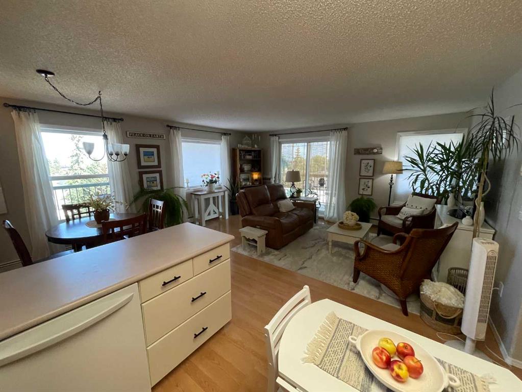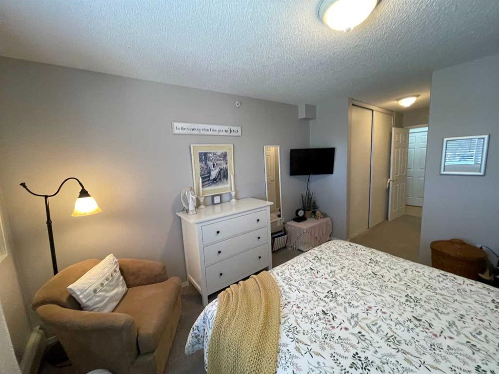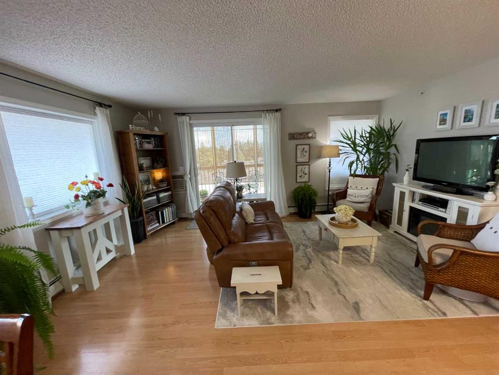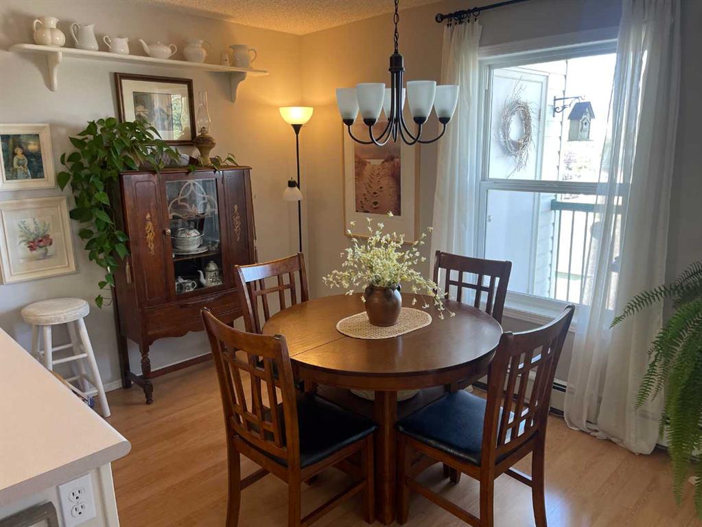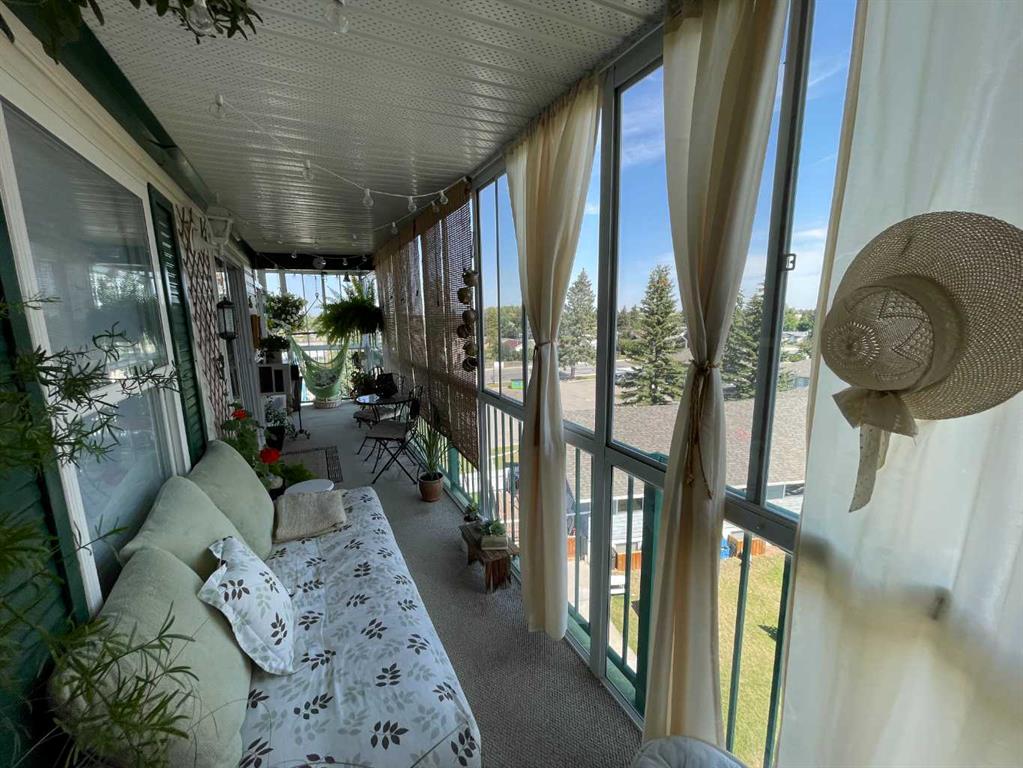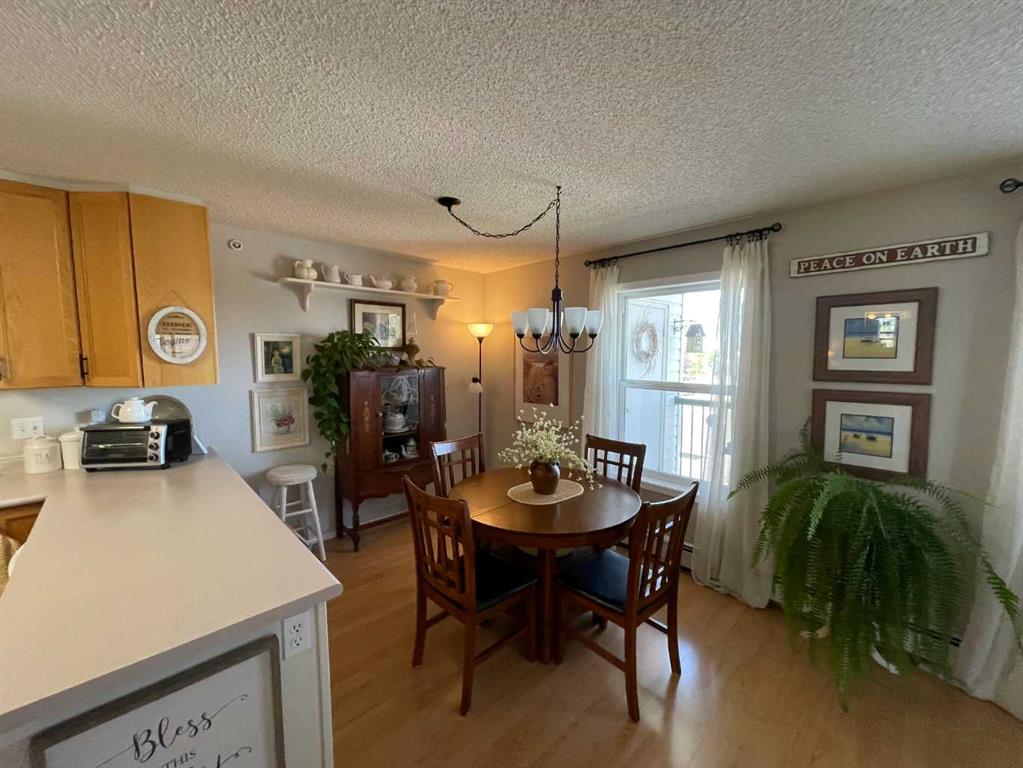 Here it is! Your retirement or semi-retirement condo in the heart of Didsbury is only 45 min. north of Calgary so you really don't have to leave the city that far behind. Arguably one of the nicest apartments in the building, this 1149 sq ft space boasts a fantastic open floor plan with beautiful laminate flooring throughout the main living areas. The primary bedroom features a large closet and an ensuite with walk-in shower. You'll appreciate the wall mounted air conditioning in the main living areas when things warm up in the summer. This unit is ideally located on the top floor on the north-east corner of the buiding where you will enjoy extensive views to the east and north, not just of the town, but of the open fields beyond. The east side of the wrap around deck is completely glassed in with opening, screened windows to allow for air flow. The seller has made this a lovely retreat just outside of the patio door where you can enjoy the morning sun while having your coffee. Truly a terrific 3 season room! The north side of the balcony is open for you to have a BBQ and enjoy the cool shade of the afternoon on those hot summer days. Storage is at a premium in these buildings so you'll really appreciate the 2 spacious storage closets conveniently located at each end of the balcony. There are 2 common area social rooms and main level heated and secured parking for your comfort and safety. This home is ready for a quick possession, just move in and enjoy! Trouble free, comfortable living at it's best so come have a look. This could be your HOME SWEET HOME!