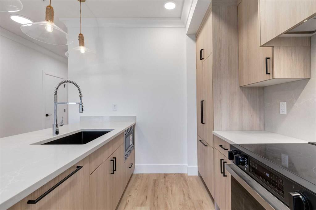 Experience boutique luxury with the Ambra model, a meticulously crafted 643 sq. ft. residence featuring 1 bedroom plus a versatile den. Designed with the serene Ethereal Zen palette, this home combines soft, calming tones with natural textures, creating a tranquil, elevated living environment. An open-concept layout is framed by a striking transient window, flooding the space with natural light and showcasing breathtaking downtown views. The chef-inspired kitchen features sleek, full-height cabinetry, quartz countertops, and premium finishes, blending elegance and functionality in every detail. The primary bedroom serves as a serene retreat, while the flexible den is ideal as a home office, private reading space, or guest room. A spa-inspired 4-piece bathroom completes the home, offering a refined touch to daily living. Perfect for those seeking a sophisticated home with panoramic city vistas, the Ambra model delivers a boutique lifestyle where luxury and design meet in perfect harmony. This pet-friendly and AIRBNB-friendly building offers titled heated underground parking and plenty of visitor spaces. Ideally located minutes from downtown, Mount Royal University, and the vibrant amenities of 17th Ave and Marda Loop, the Argento floorplan is a rare gem. Limited units are available—secure your slice of modern living today! **Photos are taken from existing building of the same models. Not of the exact unit **
