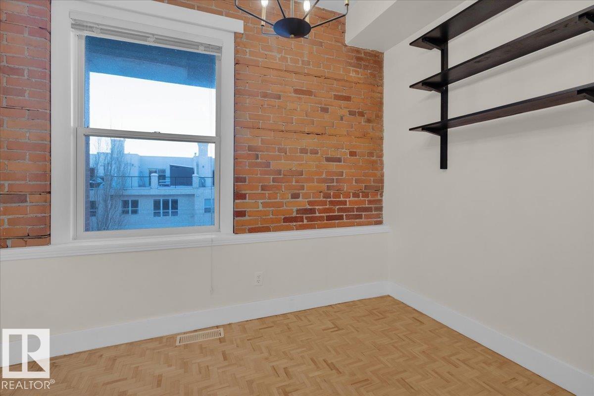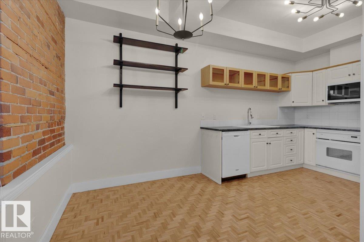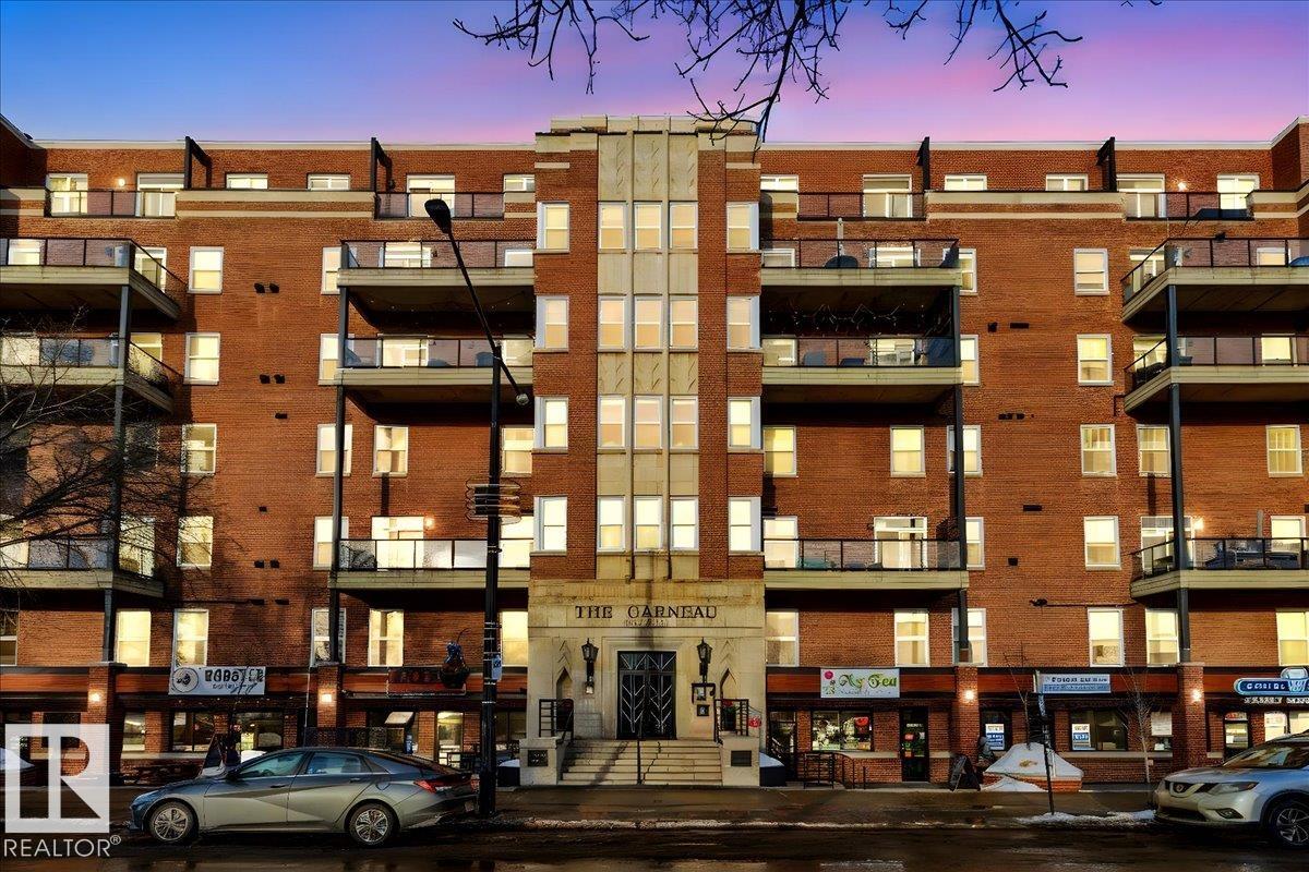 OWN A PIECE OF HISTORY IN THE HEART OF GARNEAU! This extraordinary 2-storey loft in the ICONIC GARNEAU BUILDING is a perfect fusion of vintage charm and modern sophistication. With 2 bedrooms, 2 bathrooms, 2 titled parking stalls, and over 1,300 sqft of exceptional living space, this home is truly one of a kind. Prepare to be captivated by the exposed brick walls, soaring 9ft ceilings, and a cozy corner gas fireplace. Step out onto your spacious balcony and take in city views. The bright and airy living room boasts oversized windows that flood the space with natural light, the well-appointed kitchen offers ample cupboard and counter space for your culinary creations. Descend the trendsetting spiral staircase to find two generous bedrooms, a spa-like 5pc bathroom, and a convenient laundry room. Just steps away from the vibrant pulse of Whyte Avenue, the University of Alberta, trendy shops, acclaimed restaurants, bustling farmers' markets, and exciting festivals- this is The Ultimate Urban Lifestyle!